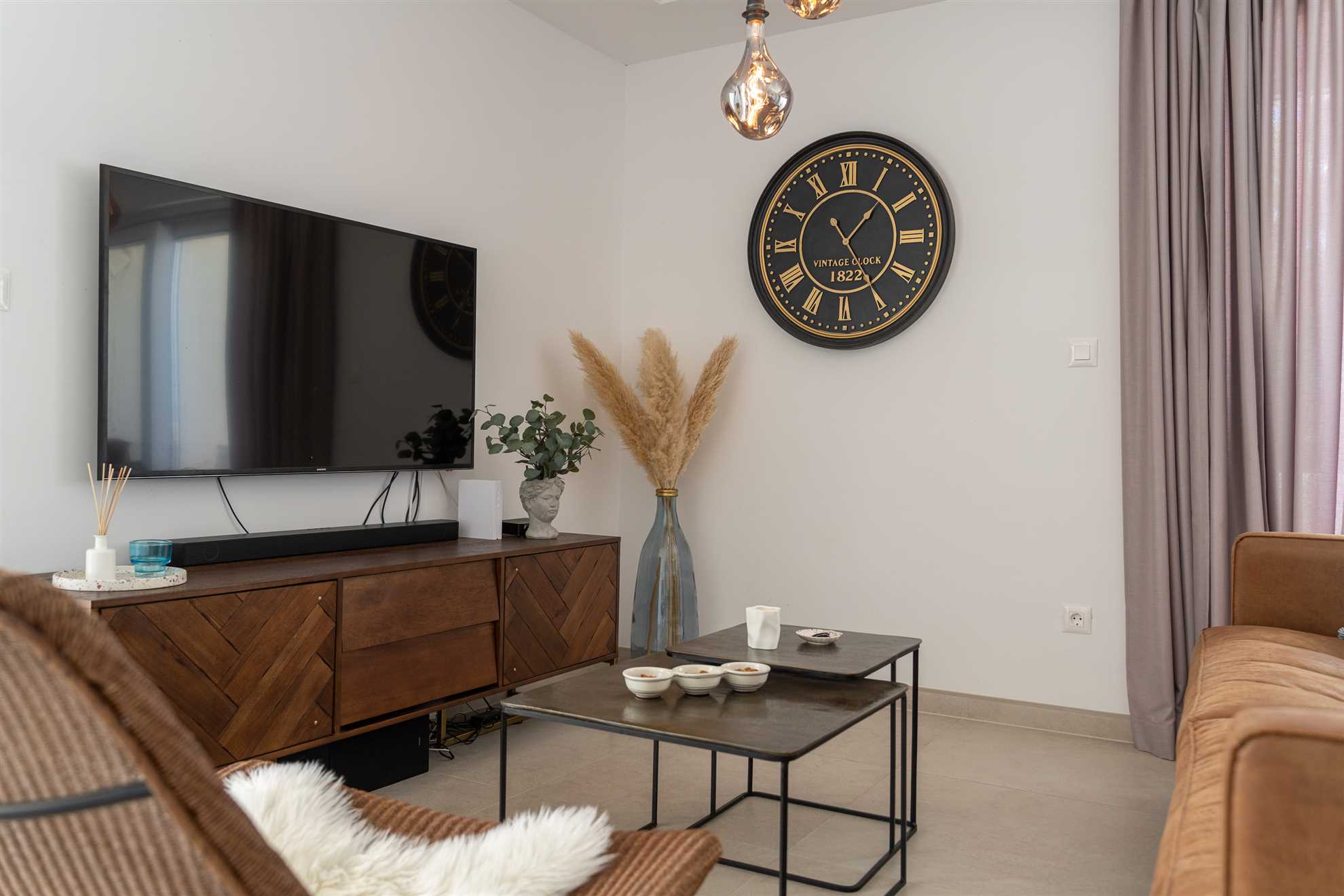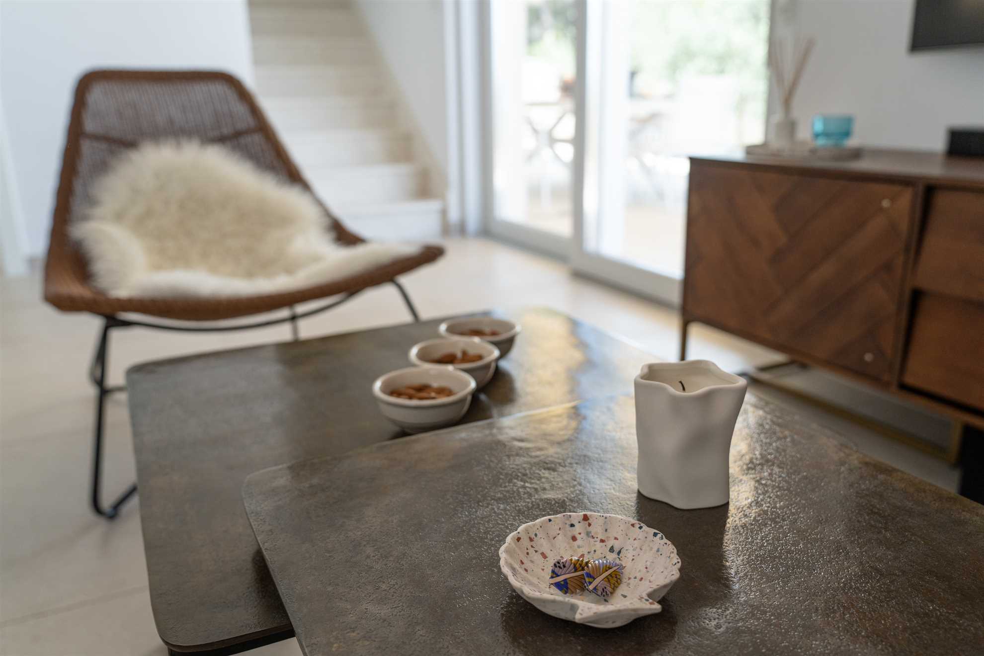 In three bedroom six adult guests are comfortably accommodated, with additional space for two more guests on two extra beds. More in your party? Its semi-detached sister villa, Neomi, is available and can host 5-7 more guests, making this an ideal retreat for families or groups of friends.