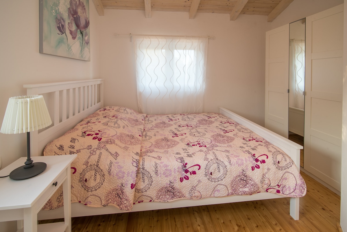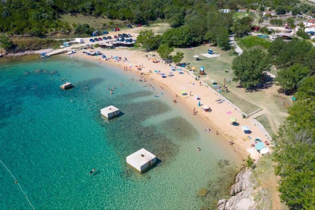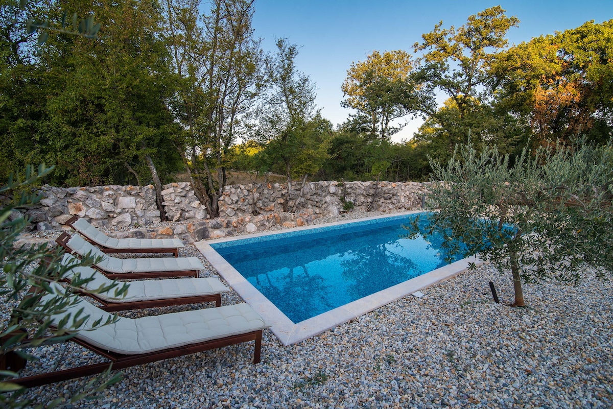In the small village on the island of Krk, you will find this romantic stone villa. The villa is located in a quiet area and is surrounded by tall trees and olive trees. The villa has 2 bedrooms and 2 bathrooms. One bedroom has one double bed and second room has two double bed, so the villa can accommodate 6 people.