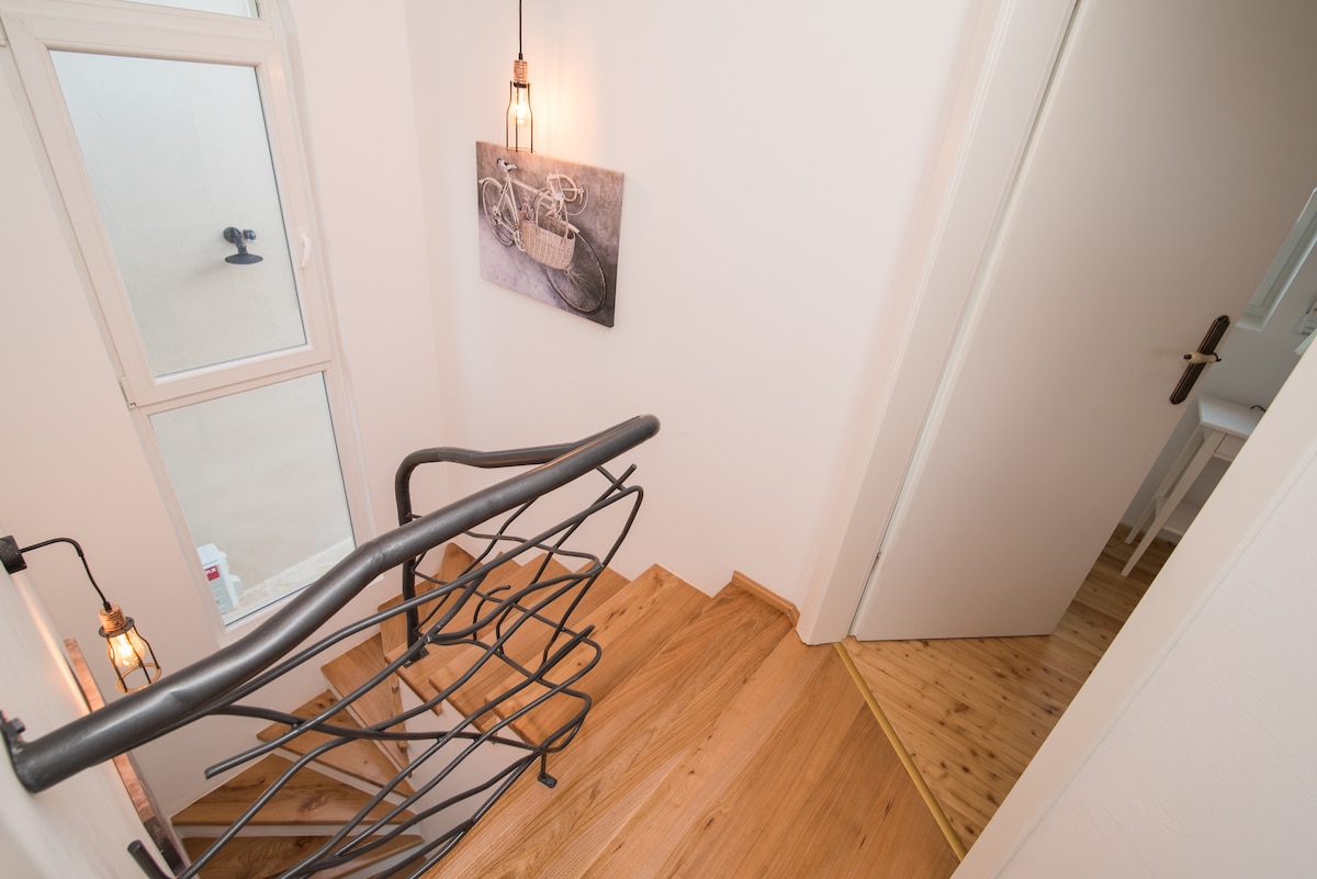 On the ground floor there is a living room and a fully equipped kitchen. The bedrooms are located on the upper floor.