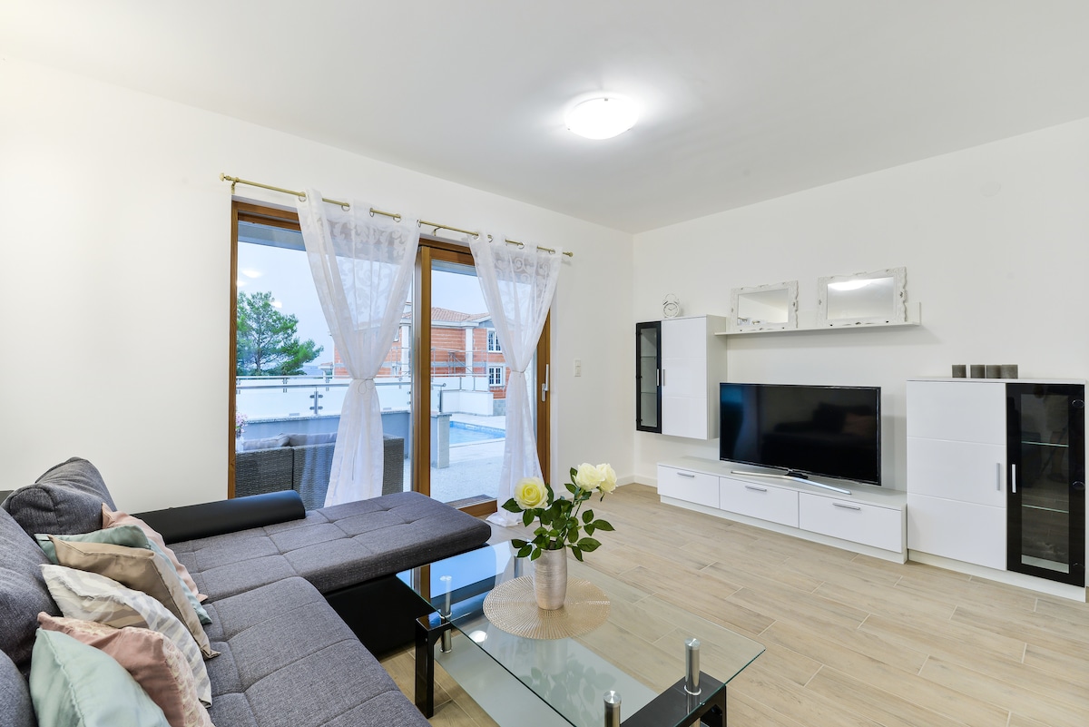 This beautiful, comfortable villa is located in Zaton, only 50 m from the beautiful beaches. If you want a holiday with lots of peace, sun, greenness and privacy then this villa for rent is the right choice for you.