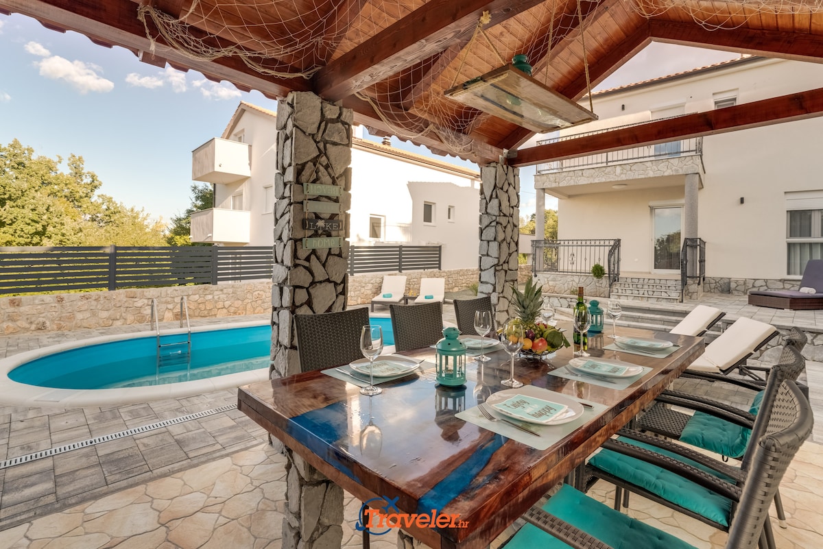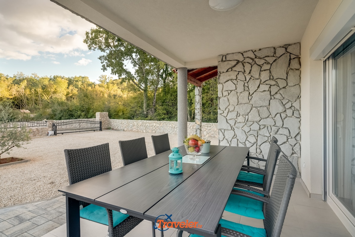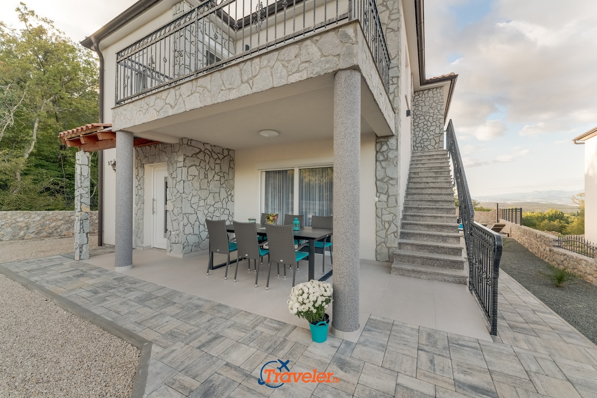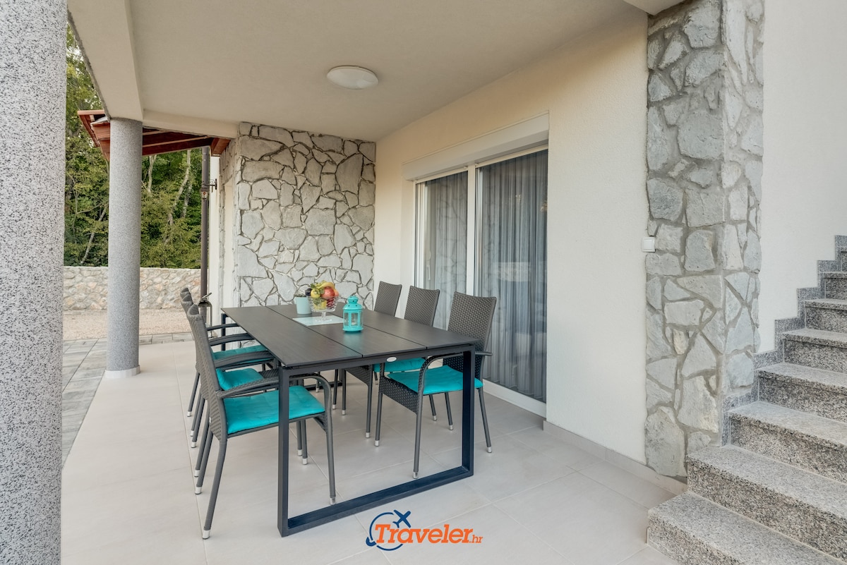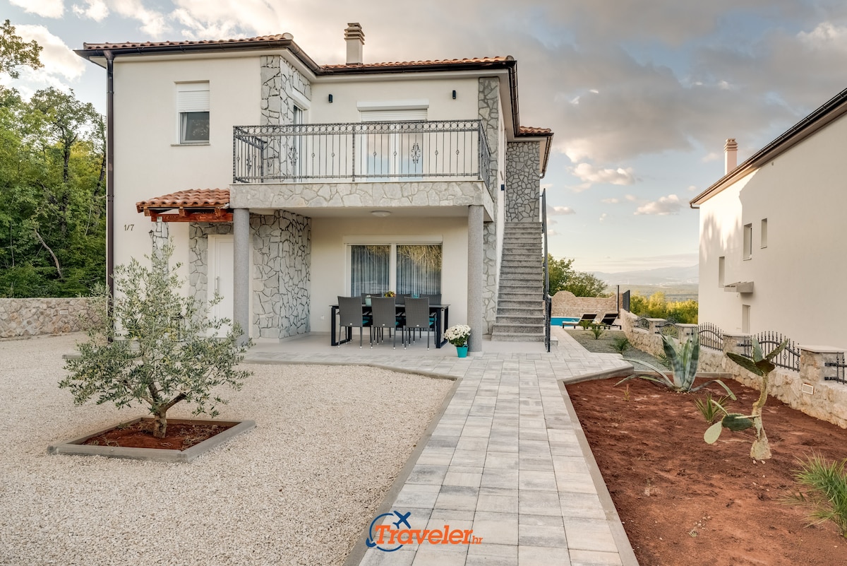 In a small village on the island of Krk, in the greenery, overlooking the sea, is located this new holiday villa.