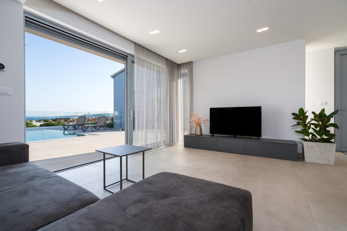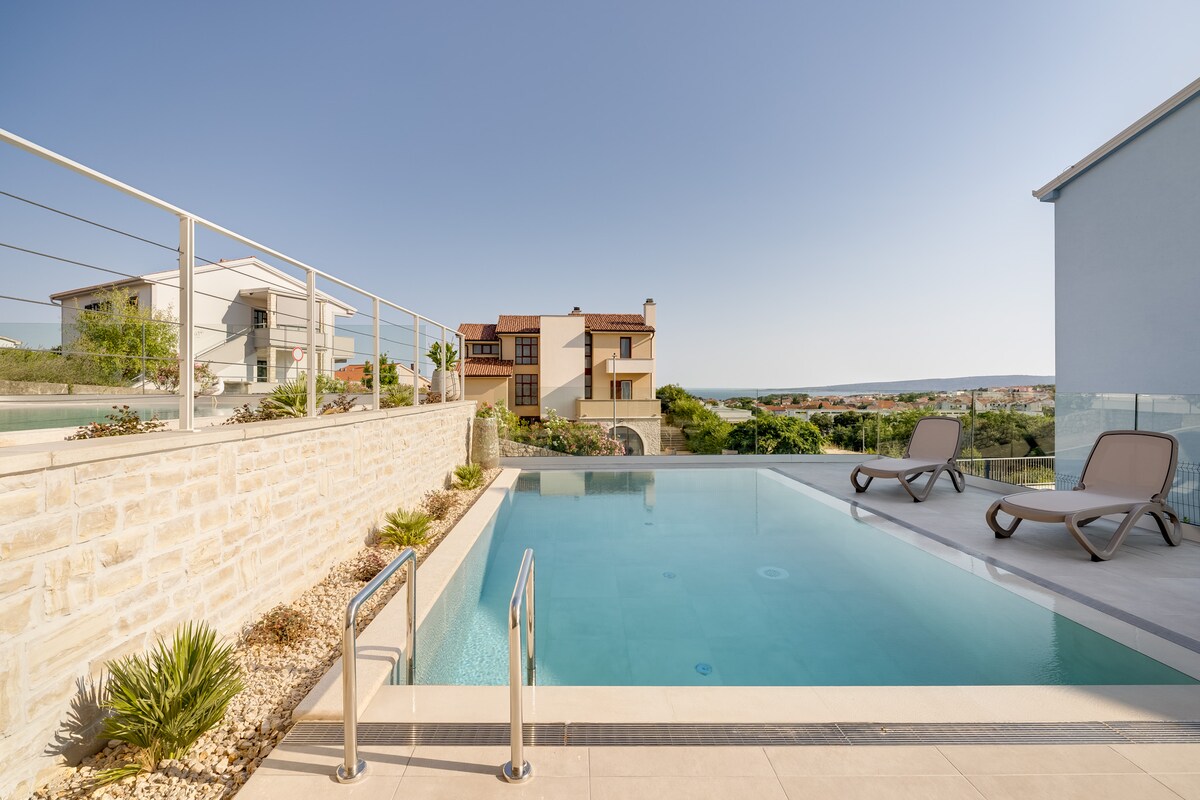 A new, luxuriously decorated modern villa with an area of 115 m2 is located in the town of Krk. The villa accommodates a total of 6 people.