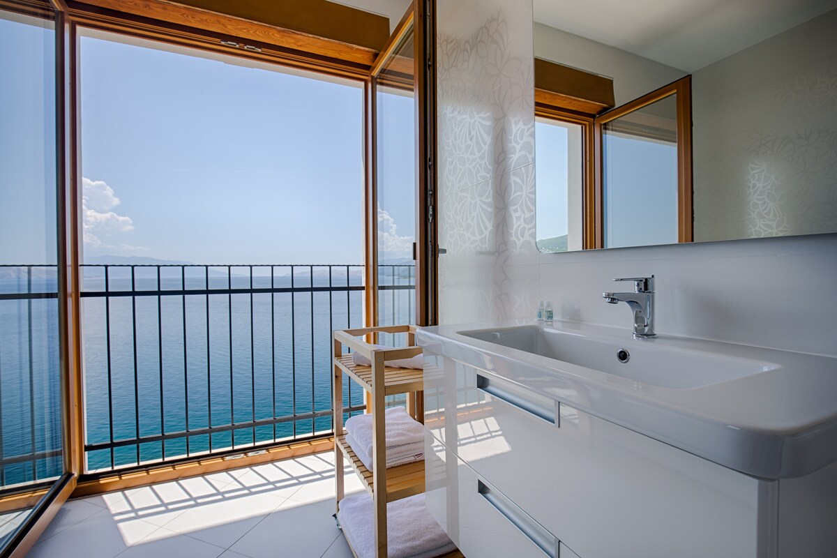 From all the rooms of this apartment there is an incredible view of the sea, and by going out to the main terrace with seating, you can also enjoy the forest of waves. In the garden, which is full of palm trees and other Mediterranean plants, there is a spacious swimming pool (which is also used by the tenants of two other apartments in the villa). After enjoying and swimming in the pool, only a few steps separate you from the beach and the crystal clear sea.