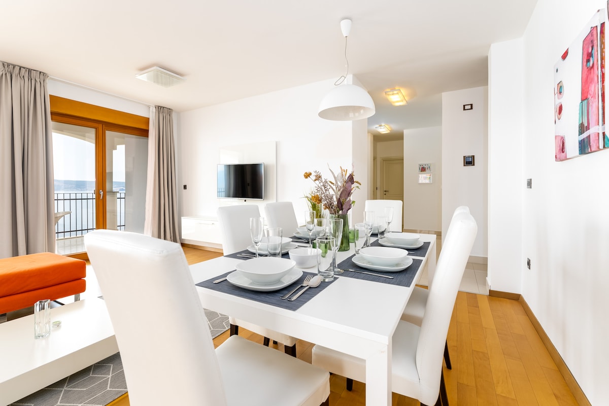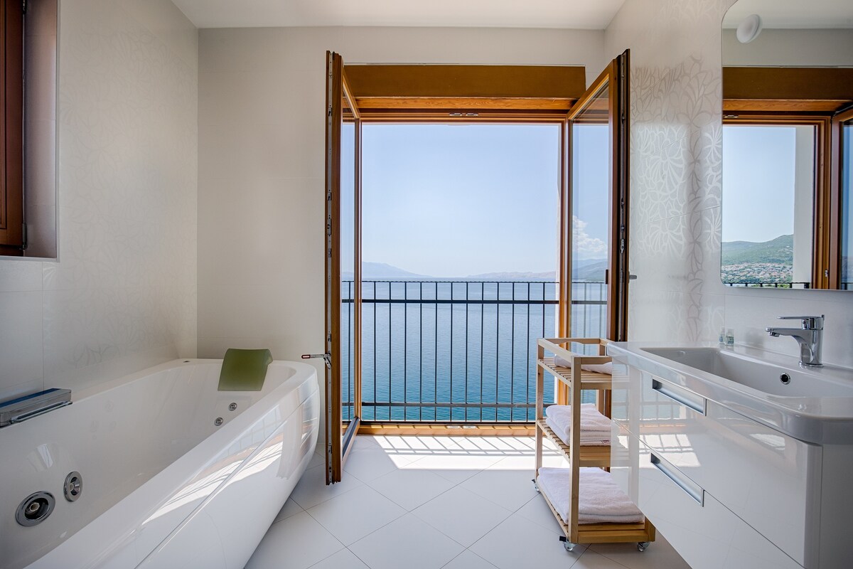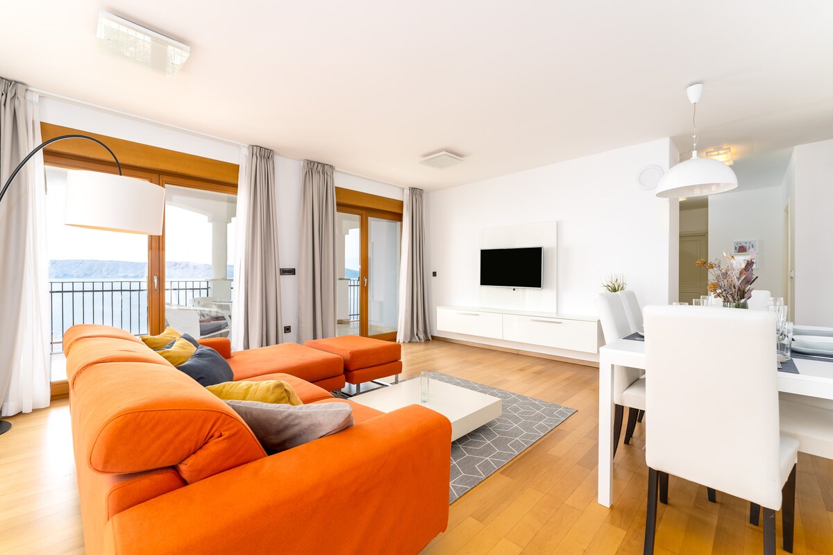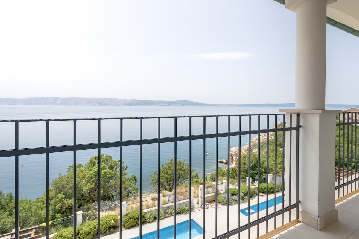 On a hill above a beautiful pebble beach, 10 meters from the sea, near the famous tourist resort of Novi Vinodolski, there is this brand new luxurious and modern apartment with a swimming pool.