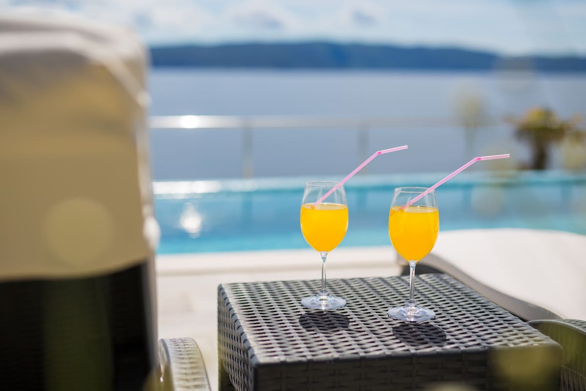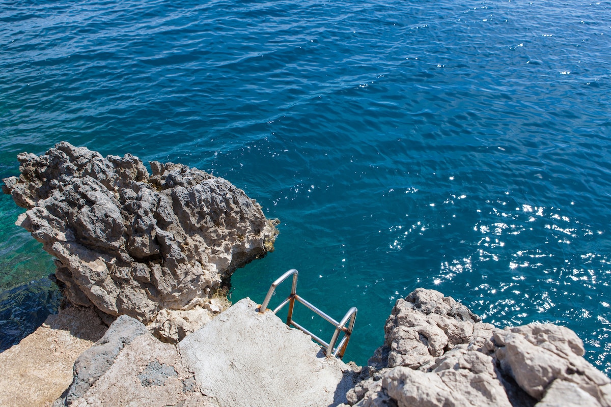 Sometimes you can enjoy the view of the dolphins swimming in front of the villa. Next to the house are stairs leading directly to the sea.