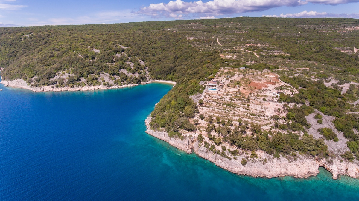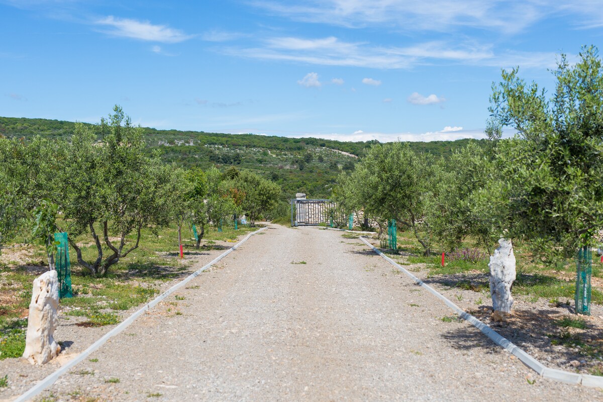 The villa for rent is located on island Krk, on a plot of 16.000 m2 and guarantees absolute privacy and tranquility. There are no neighbors. The path to the villa is well maintained gravel road (no asphalt), 3 kilometres long. To the villa is a newly established macadam path surrounded by olive trees, which is why he earned the title "olive trail".