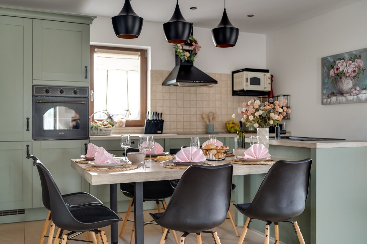 In the garden full of greenery, you can sit comfortably under the covered terrace while your little ones play on the children's playground.