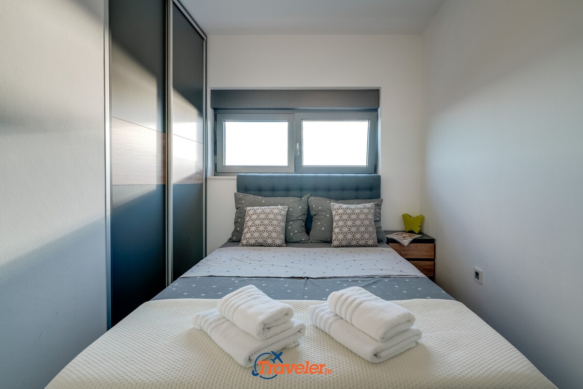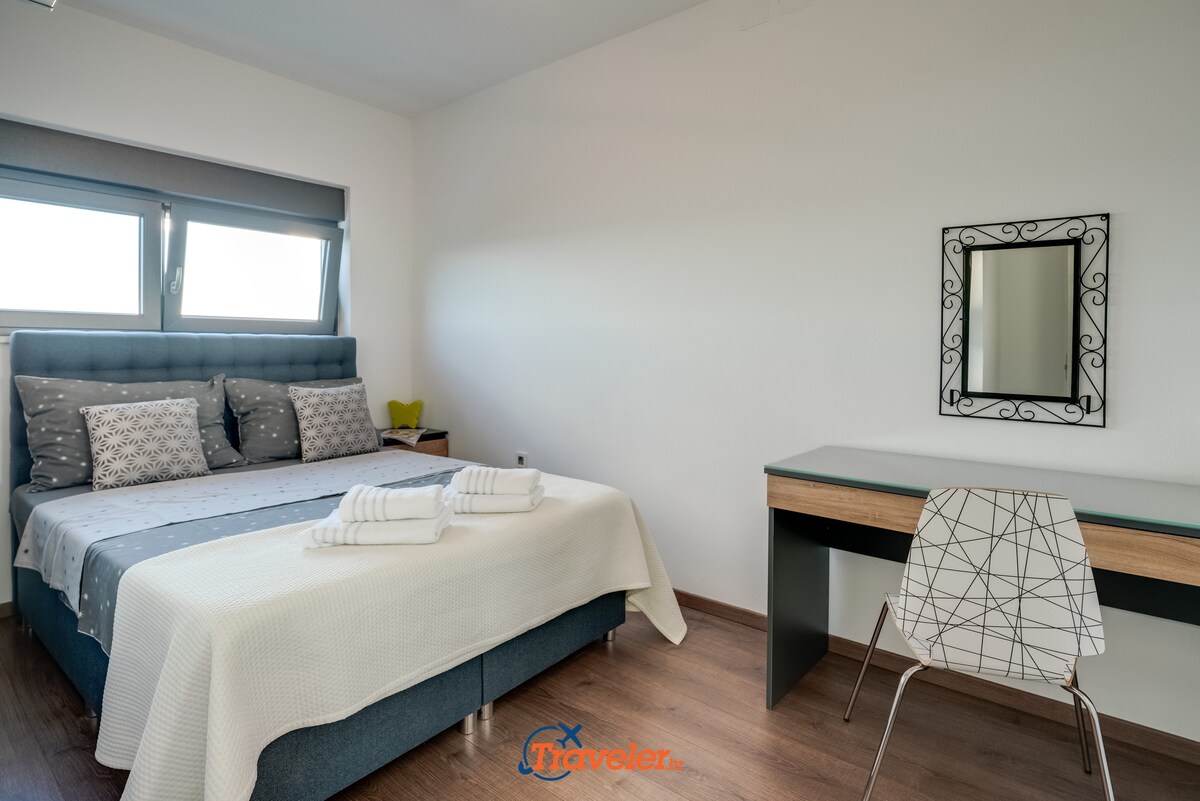 The villa is located on a 1,500 m2 plot, surrounded by many Mediterranean plants. As the property is completely fenced, your children can be completely undisturbed in the big childrens playground. This modern new villa guarantees you an unforgettable holiday.