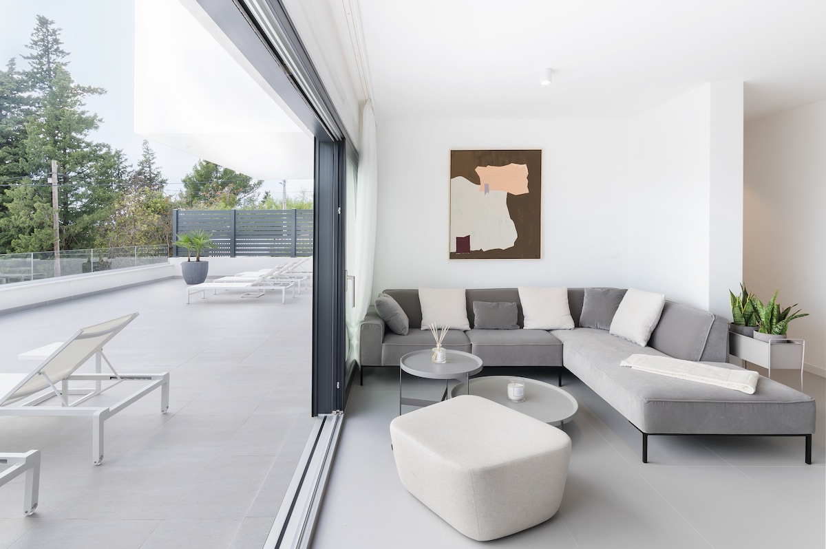The villa can accommodate up to eight guests and has four air-conditioned bedrooms, all with private bathrooms. Three bedrooms with access to a beautiful terrace and three bathrooms are located on the first floor of the villa.