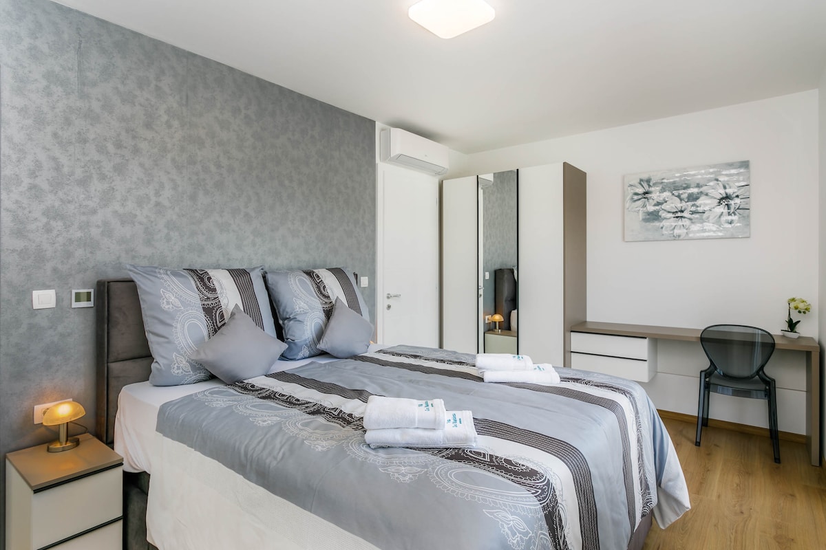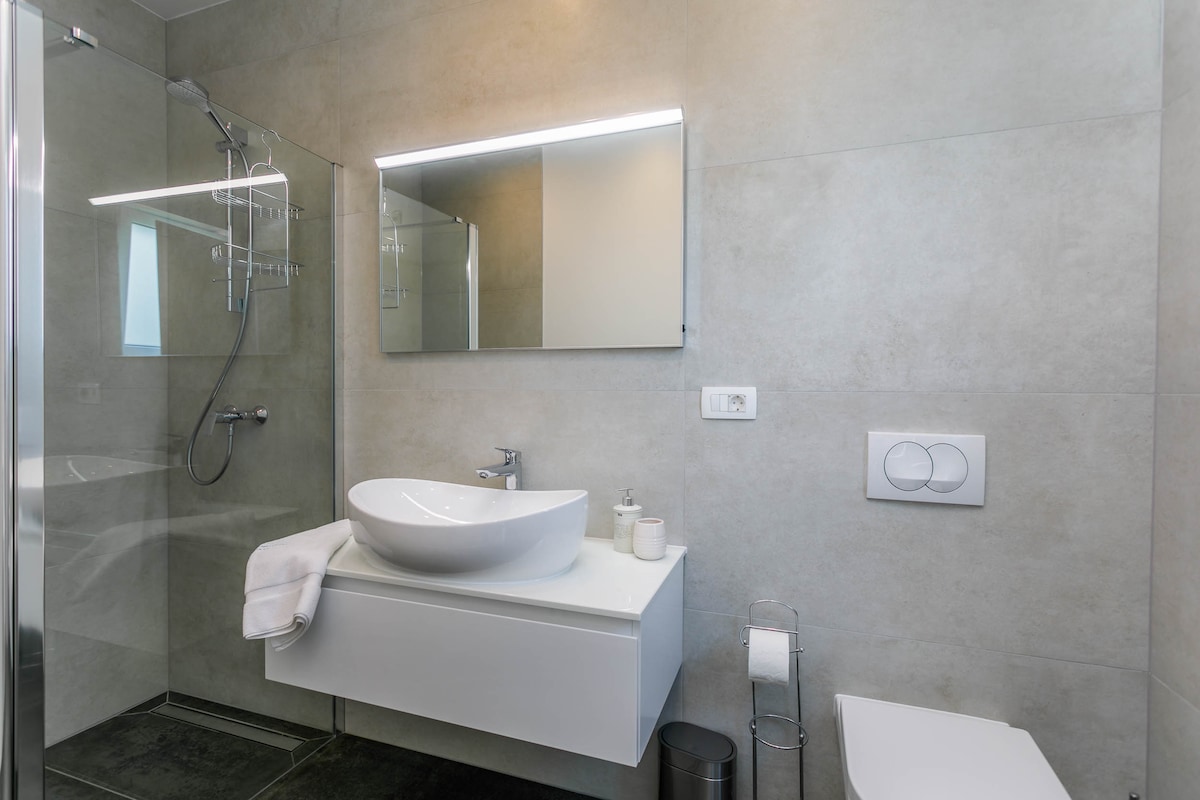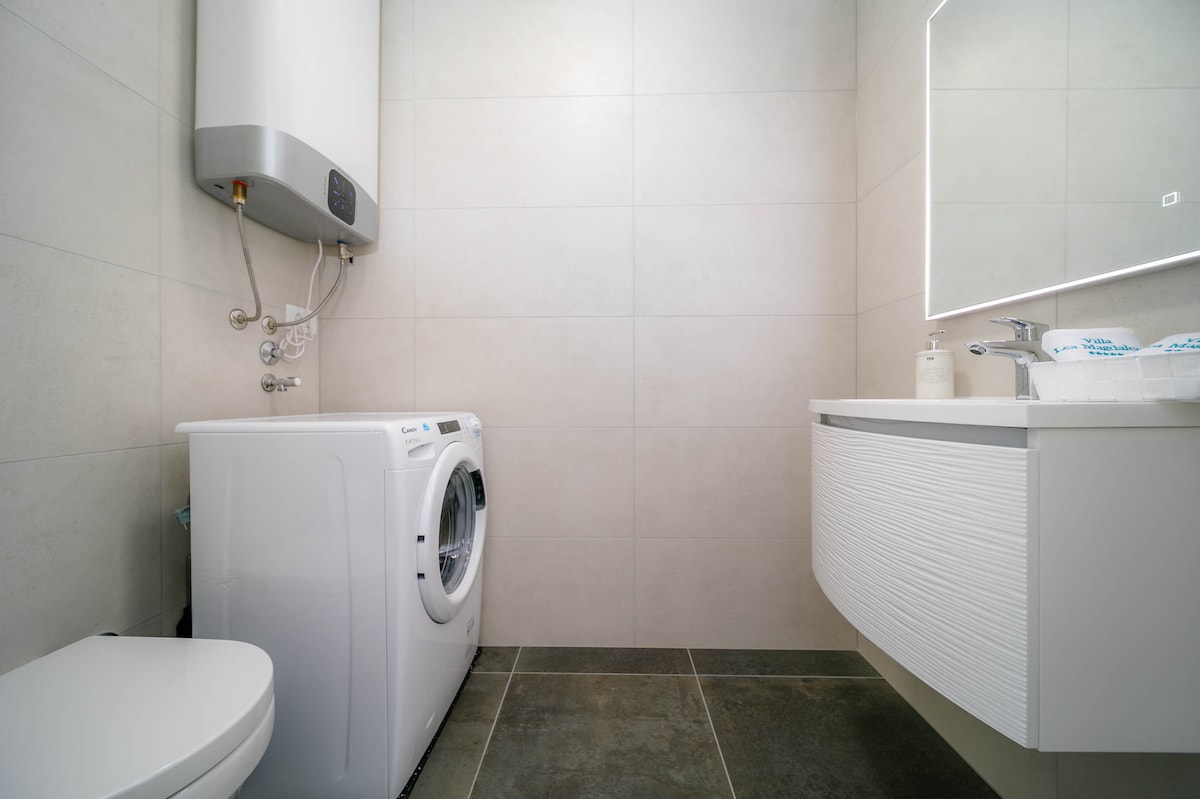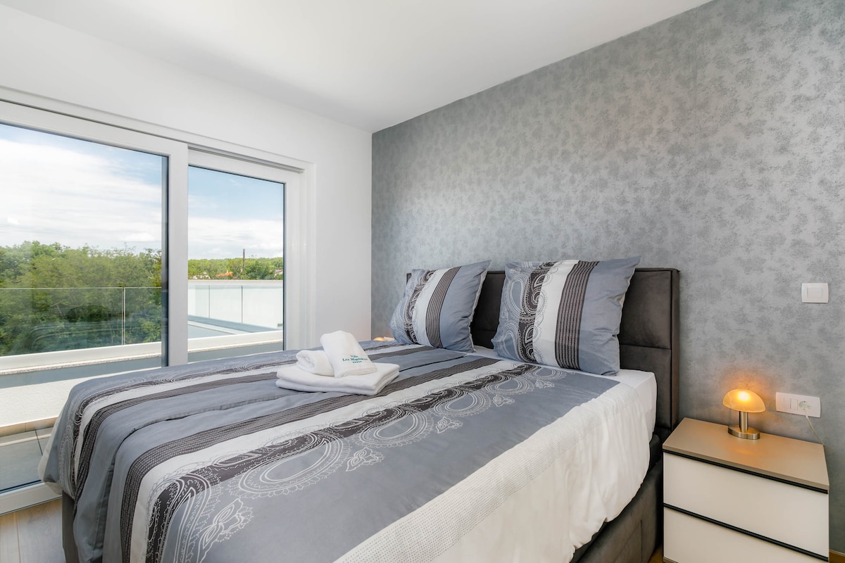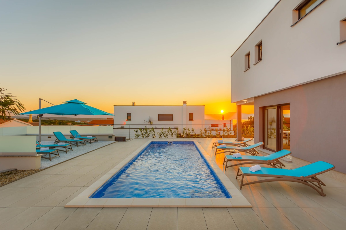In the small and quiet village of Kremenići, not far from the famous tourist center of Malinska, on the island of Krk, is located this brand new beautiful villa with a swimming pool.