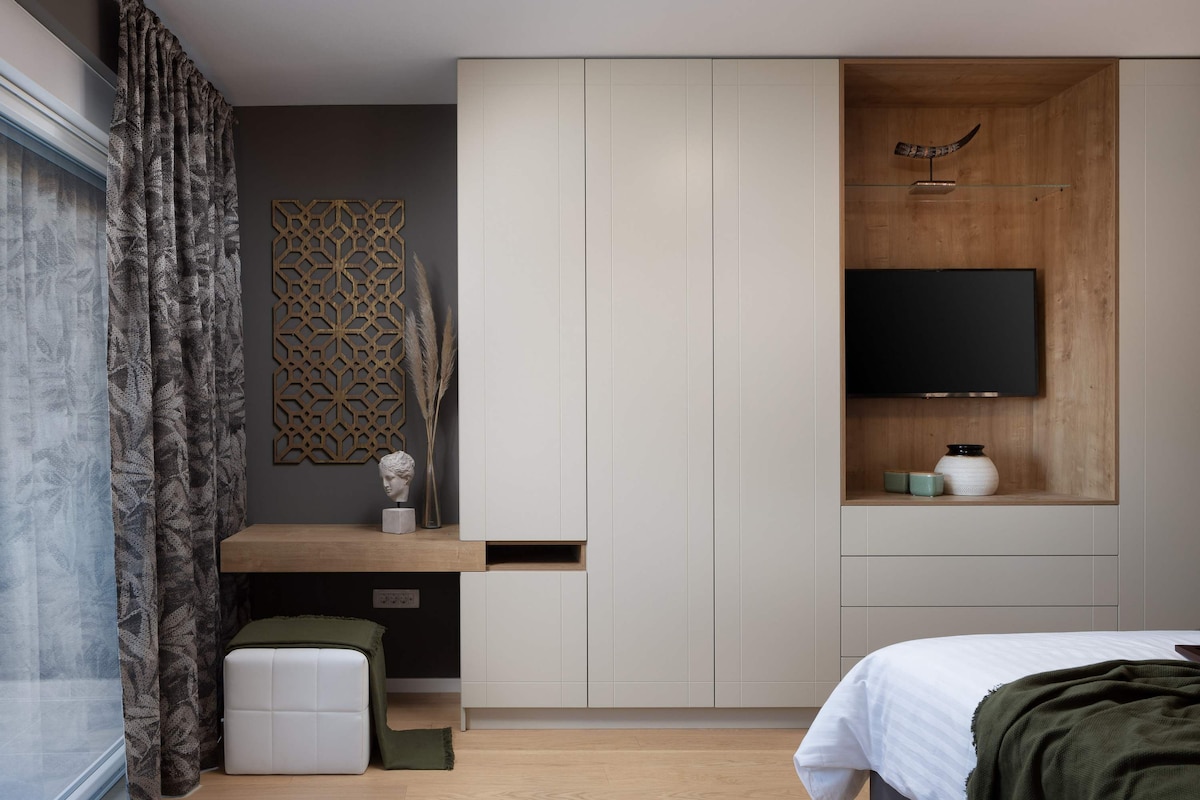 On the ground floor of the villa there is a modern kitchen, a spacious living room, a bedroom with a bathroom and a separate toilet. Upstairs there are three lovely bedrooms, two of which have a separate shared bathroom and one bedroom has its own bathroom.