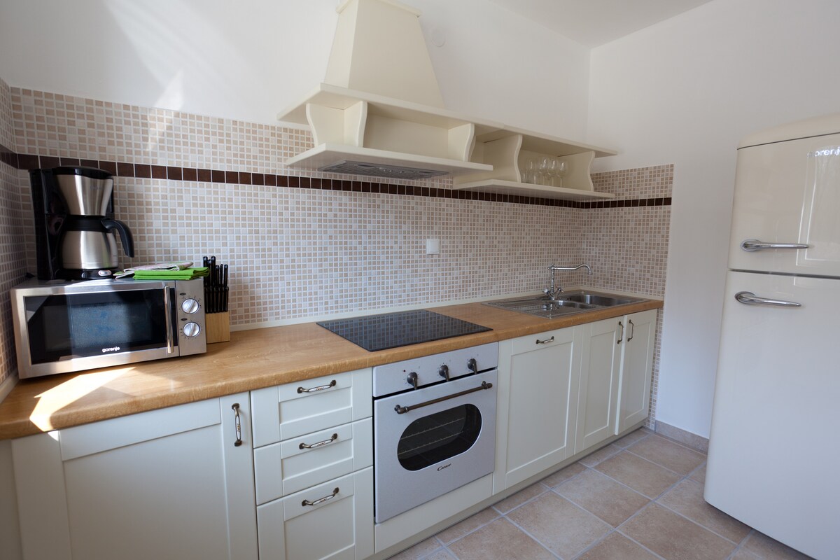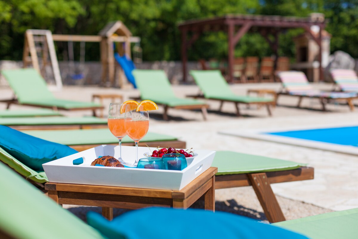 It is surrounded by beautiful nature, in the courtyard is located a big pool in which you can enjoy with your family and friends. The property is completely fenced so your children can play undisturbed.