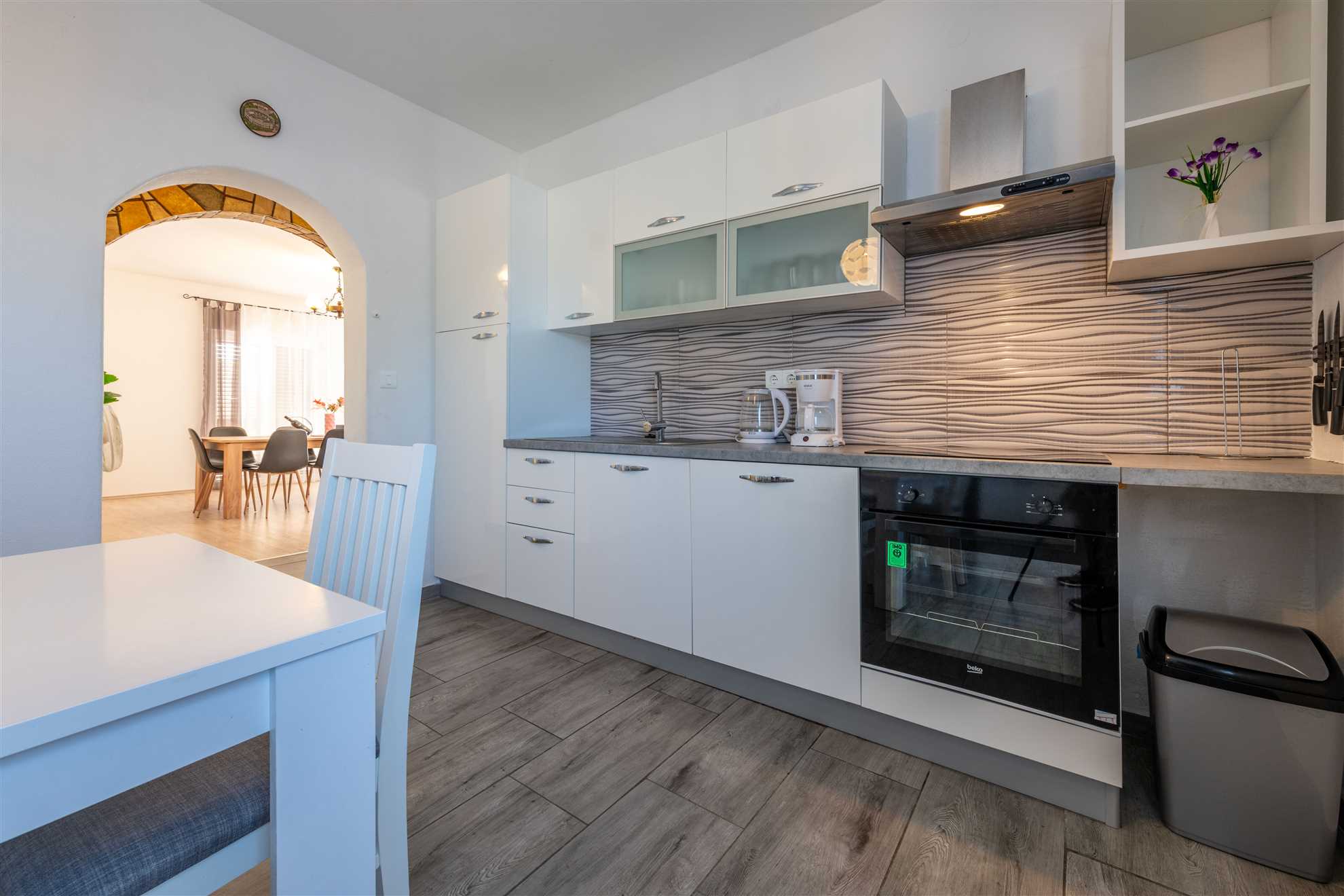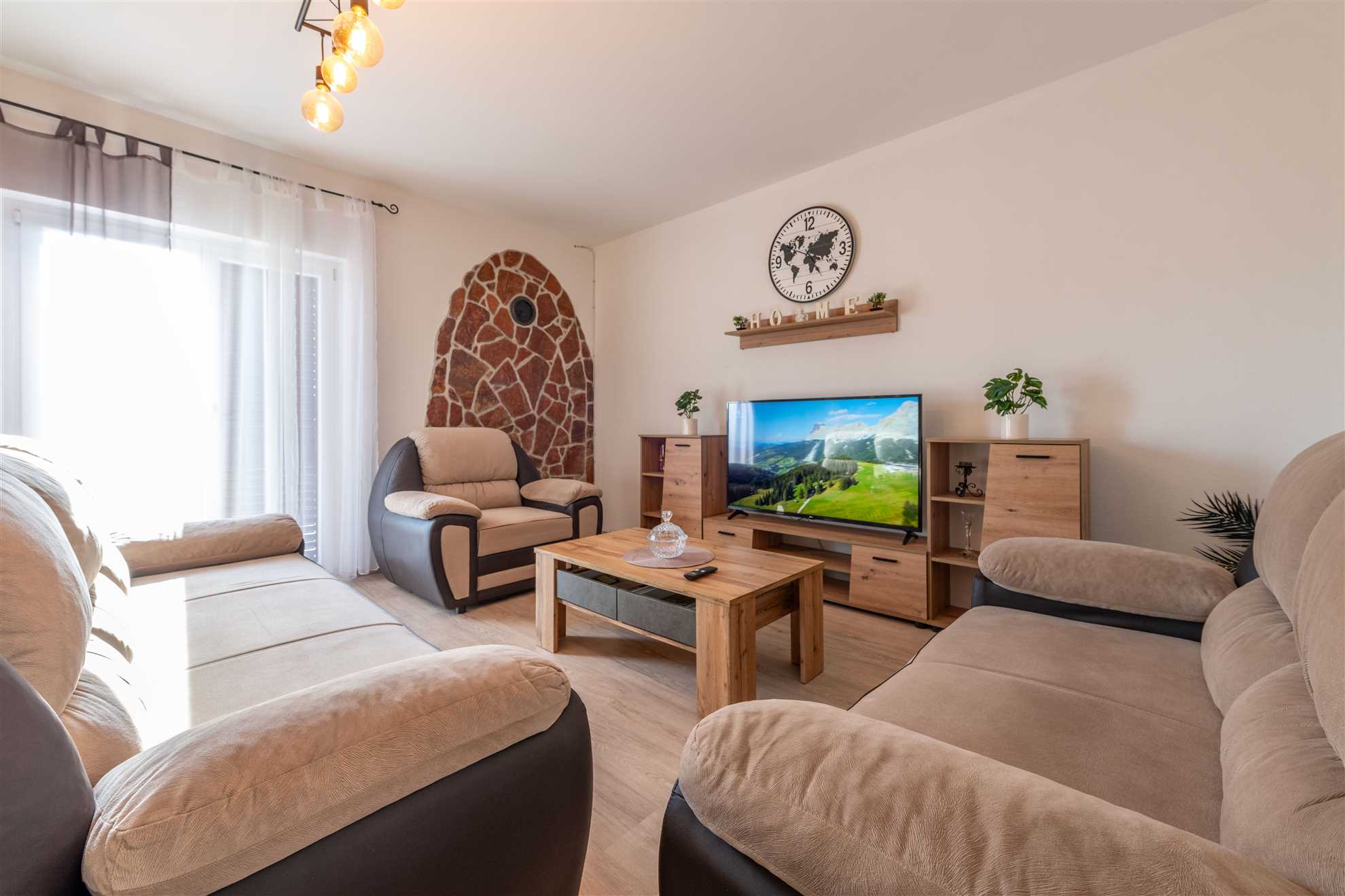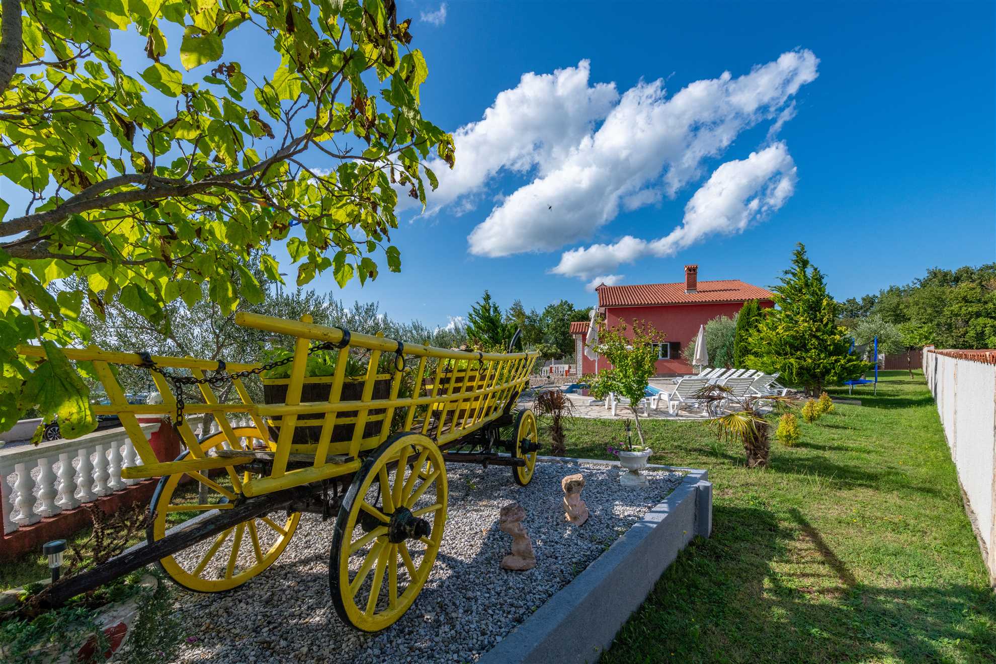 Villa Marić in Kranjci near Labin is a stunning two-floor retreat offering 280 sqm of modern comfort surrounded by a lush 1100 sqm Mediterranean garden. Designed to host up to 12 guests, the villa features six bright and airy bedrooms, two elegant bathrooms, a fully equipped kitchen, and a stylish living room. Outside, guests can unwind by the beautiful private pool, relax on the sun loungers, or enjoy delicious meals at the large dining area and grill. The expansive garden includes a swingset and trampoline, making it perfect for families with children. With free WiFi, a child cot, and secure parking for up to six vehicles, Villa Marić offers everything needed for a carefree and luxurious holiday. The entire property and garden are exclusively for guest use, ensuring total privacy and tranquility.
