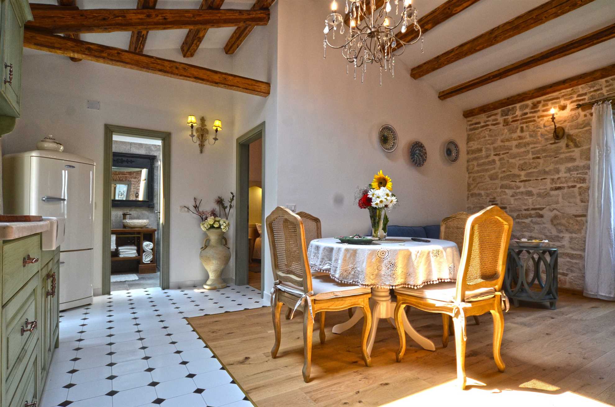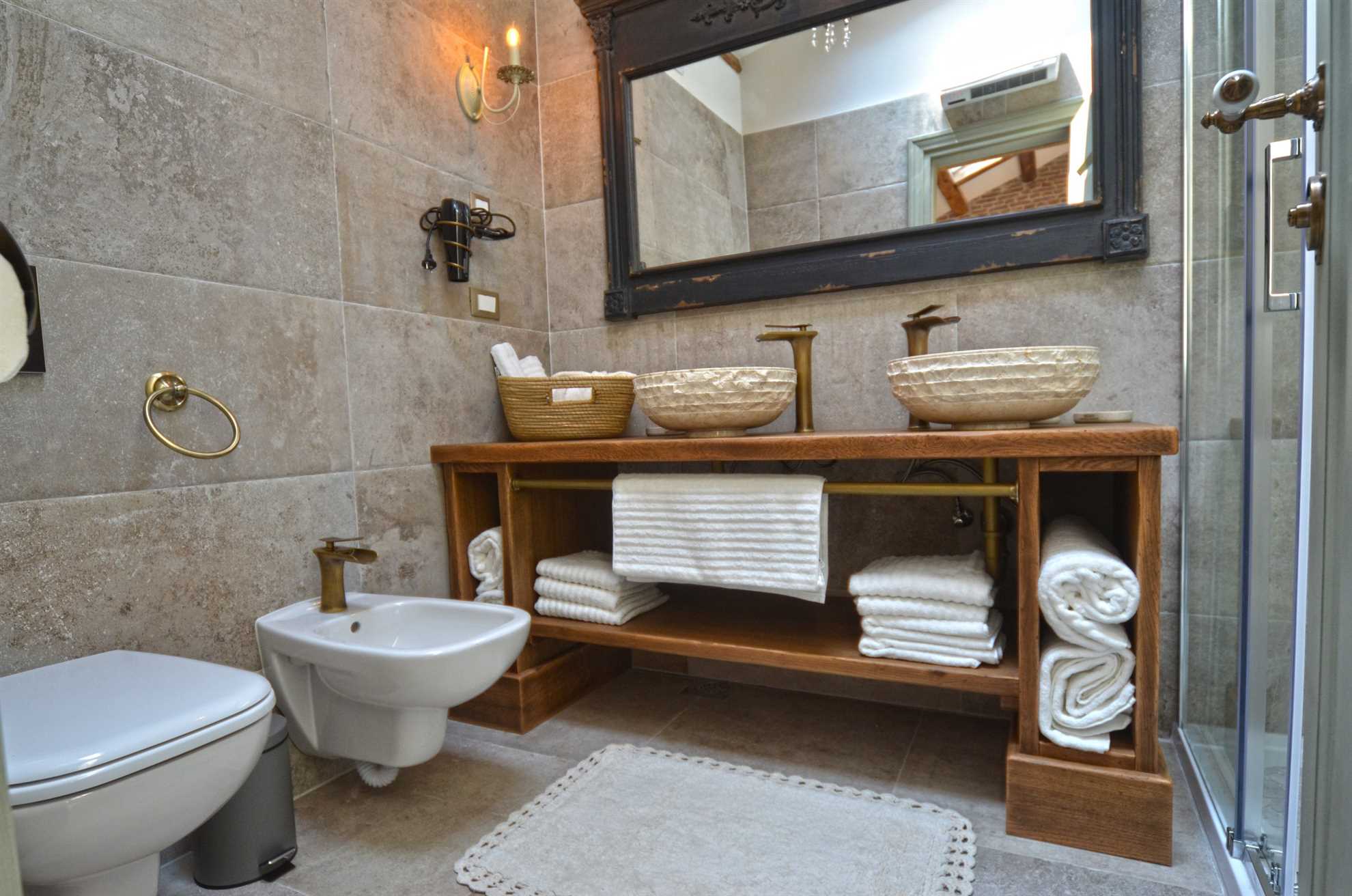This beautiful apartment is located in the old town of Rovinj. It has a fully equipped kitchen with dining table, living room with satellite TV, Internet WI FI, and air conditioning. 2 bedroom with queen size bad and 2 bathroom in which one of them has a washing machine. Sea view Bed linen, towels, toilet paper on arrival, hair dryer are provided
