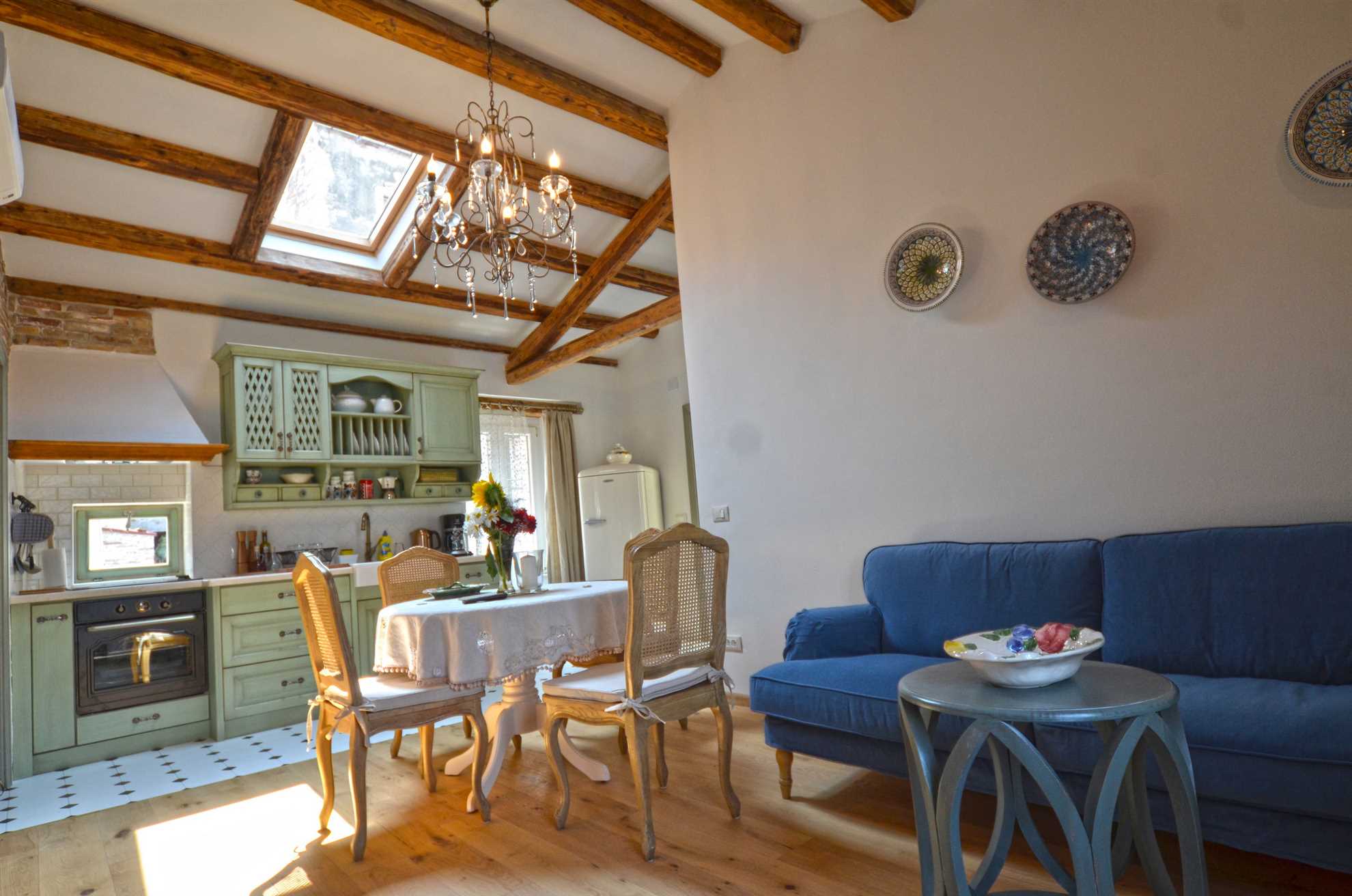 This beautiful apartment is located in the old town of Rovinj. It has a fully equipped kitchen with dining table, living room with satellite TV, Internet WI FI, and air conditioning. 2 bedroom with queen size bad and 2 bathroom in which one of them has a washing machine. The place is on the 1st floor and is facing the sea directly. Restaurant, bars, supermarkets are nearby.