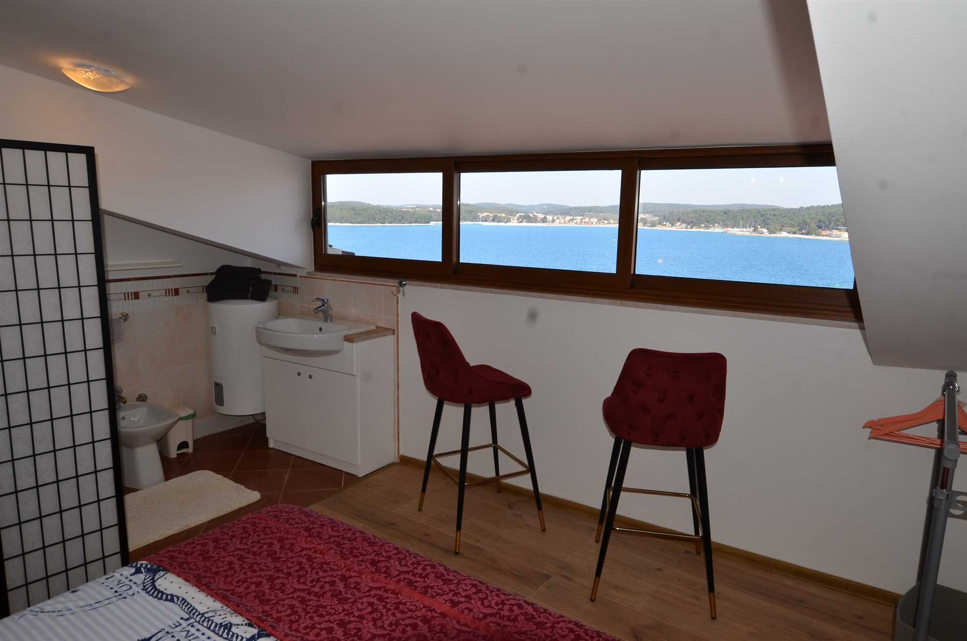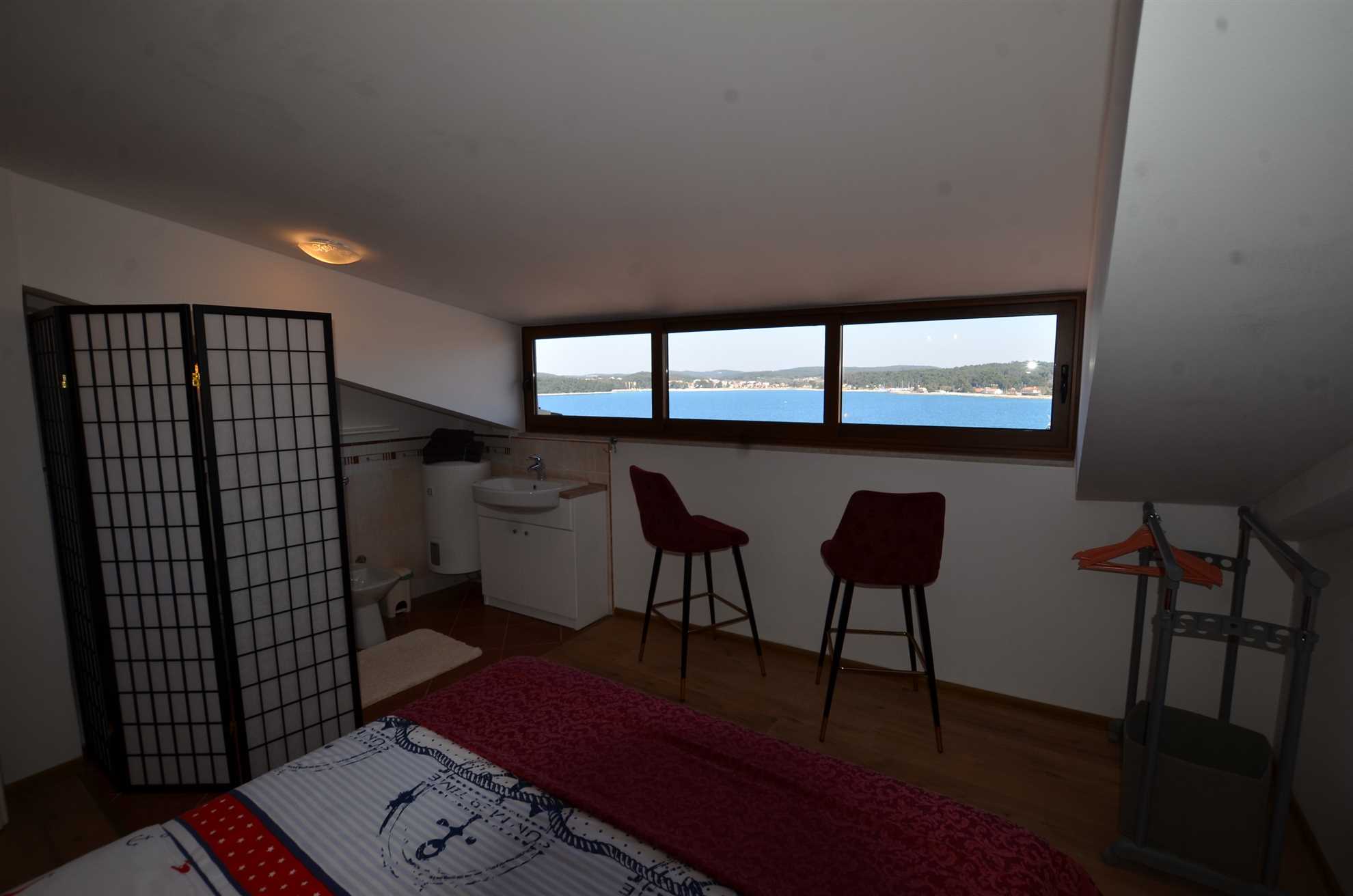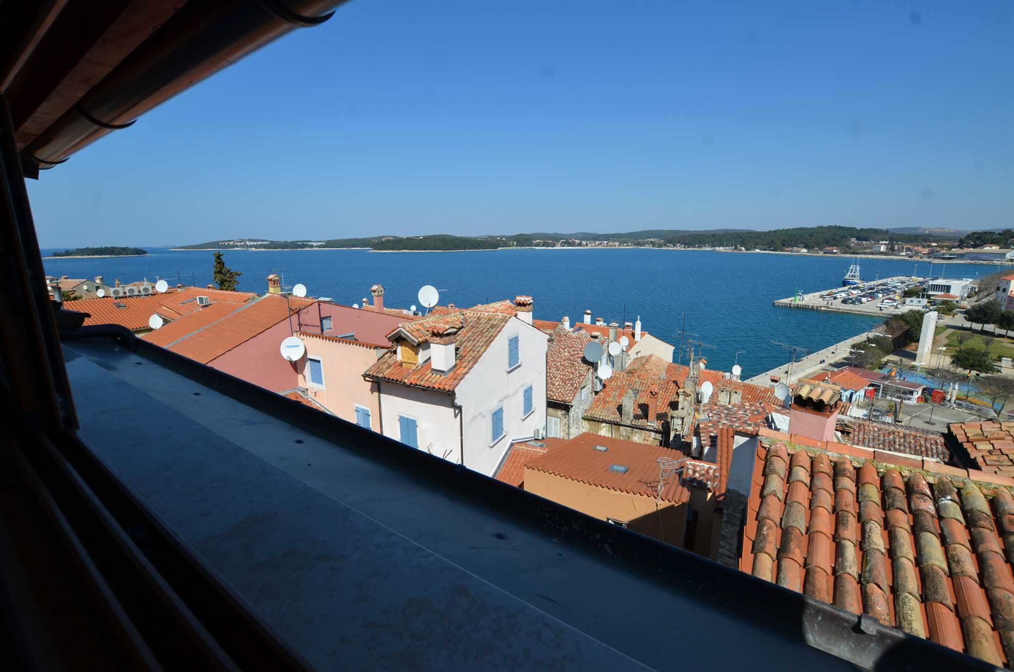 This two bedroom apartment has nice panorama sea view from master bedroom and partial sea view and view on old town from living room. This 2 level apartment is situated on 3rd and 4th floor. From bedroom 2 there is exit on small balcony (suitable for 2 person).