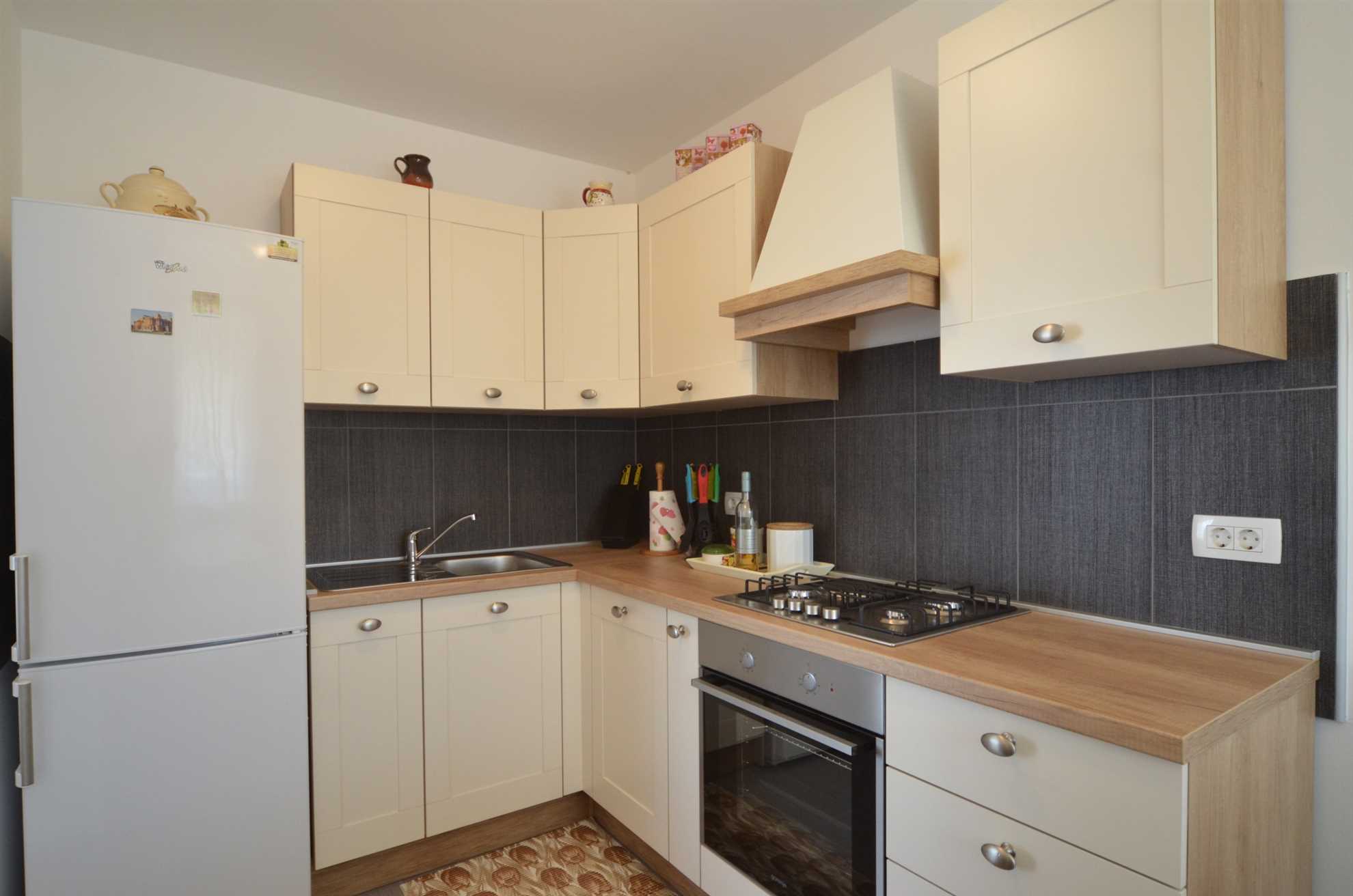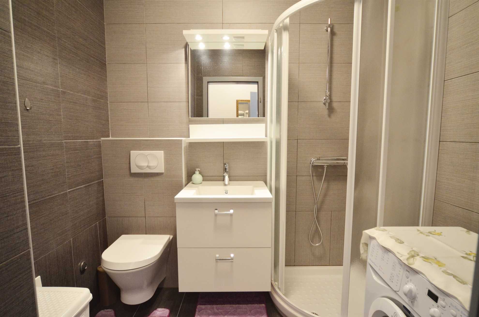 The sleek, fully equipped kitchen allows you to whip up meals as you enjoy the breathtaking views of Rovinj. Adjacent to the living room is the beautiful, modern bathroom with up-to-date fixtures, ensuring a refreshing experience.
