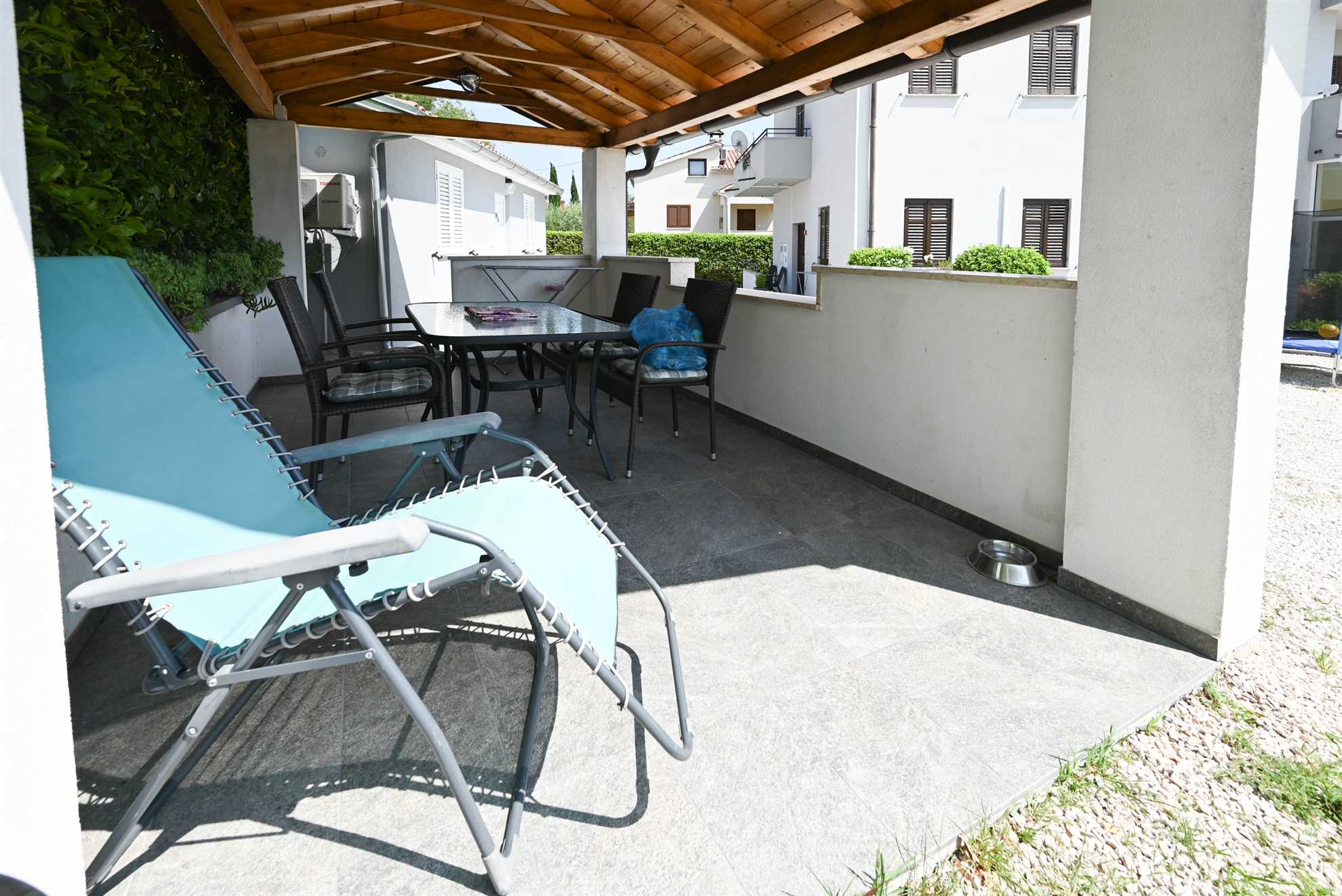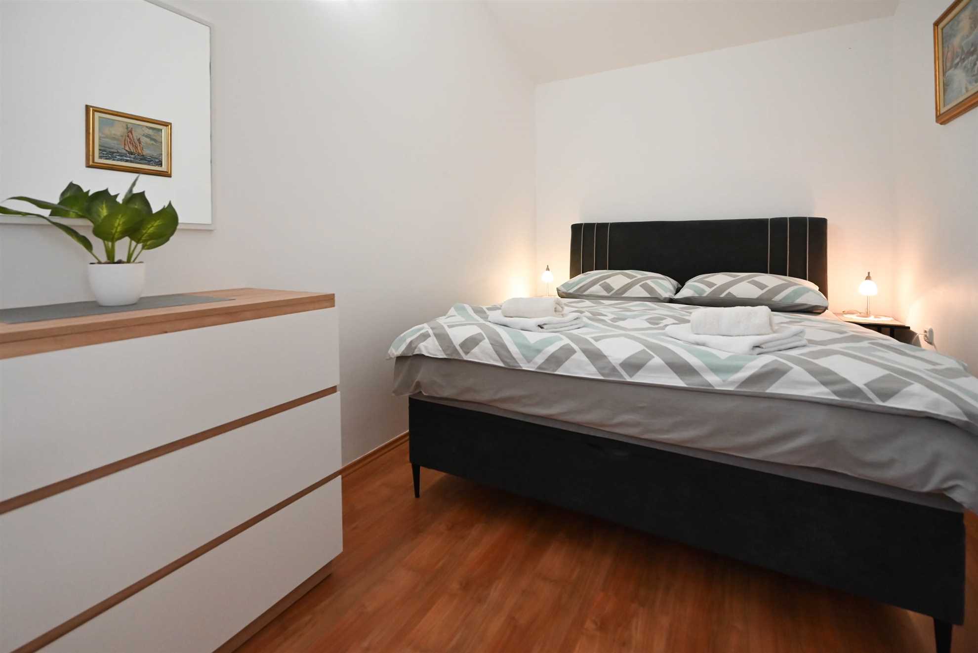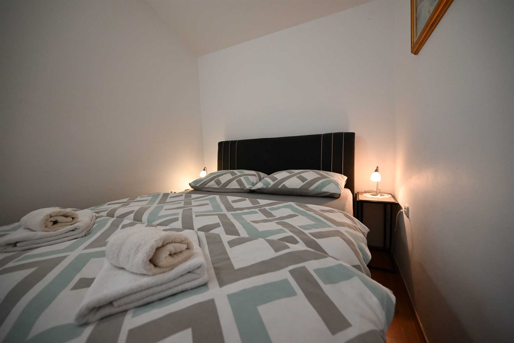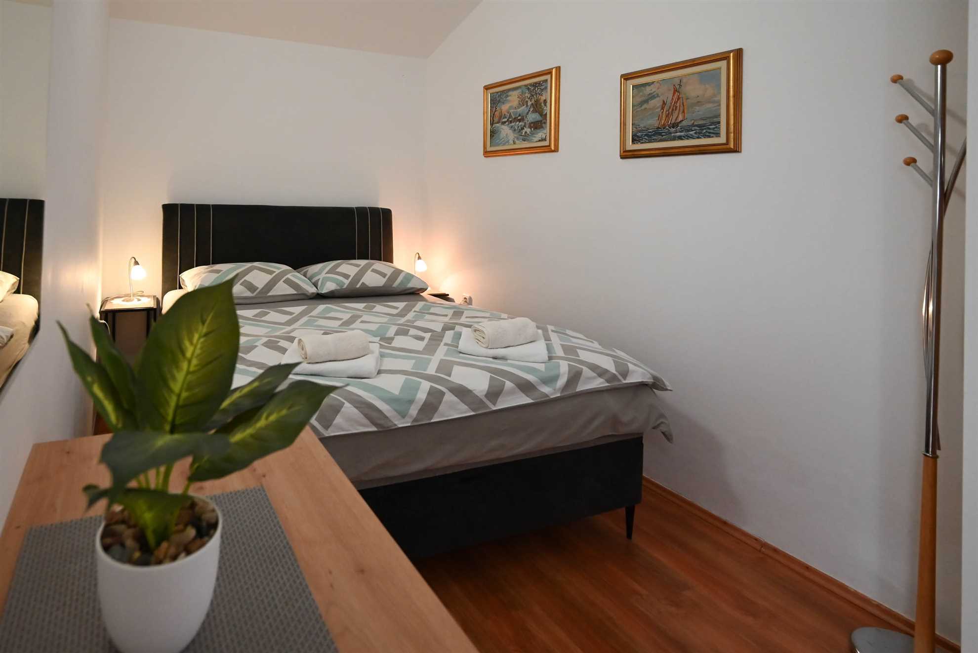 Apartment have 1 separate bedroom with double bed, living room, dining and kitchen are one room and private bathroom. This house offer you 4 different private apartments to rent. It is located close to center of Žminj, next to the road and Plodine supermarket. All apartments have wi fi, air condition, kitchen and there is also large parking in front of the house. Pets are welcome