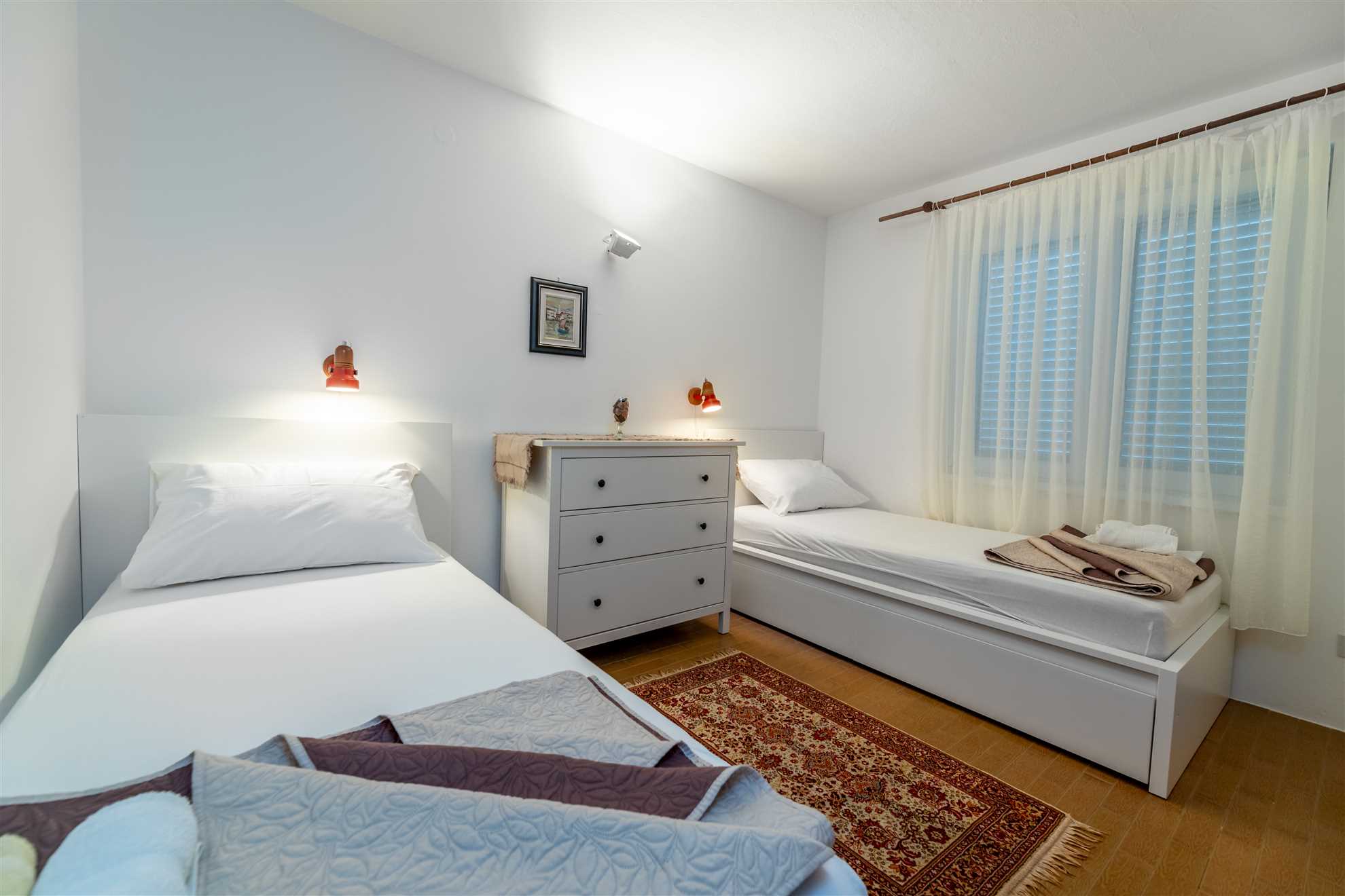 The apartment is optimally designed to comfortably accommodate a family or group of 4 people, but can accommodate a maximum of 5 people. Whether you are a family on vacation or friends traveling, our apartment offers enough space and amenities for an unforgettable stay.