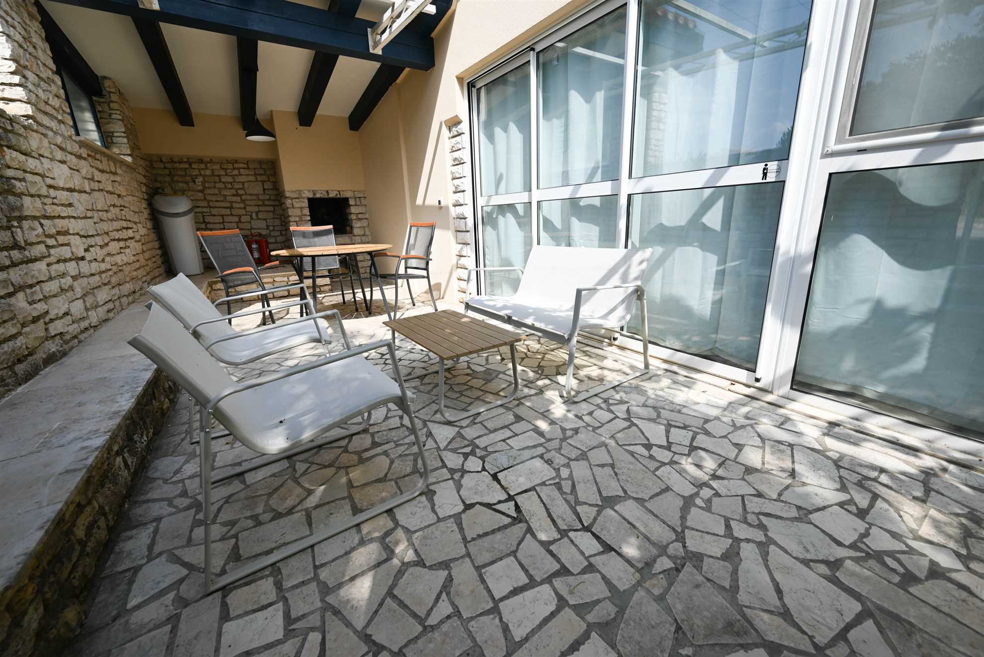 Enjoy the convenience of air conditioning, free Wi-Fi, and a private terrace with outdoor seating – a great spot to enjoy meals or relax. Guests also have access to a private barbecue and shared garden. Highlights: Suitable for 2–3 people 1 large double bed + sofa Ground floor location Equipped kitchen Air conditioning & Wi-Fi Terrace with access to shared barbecue