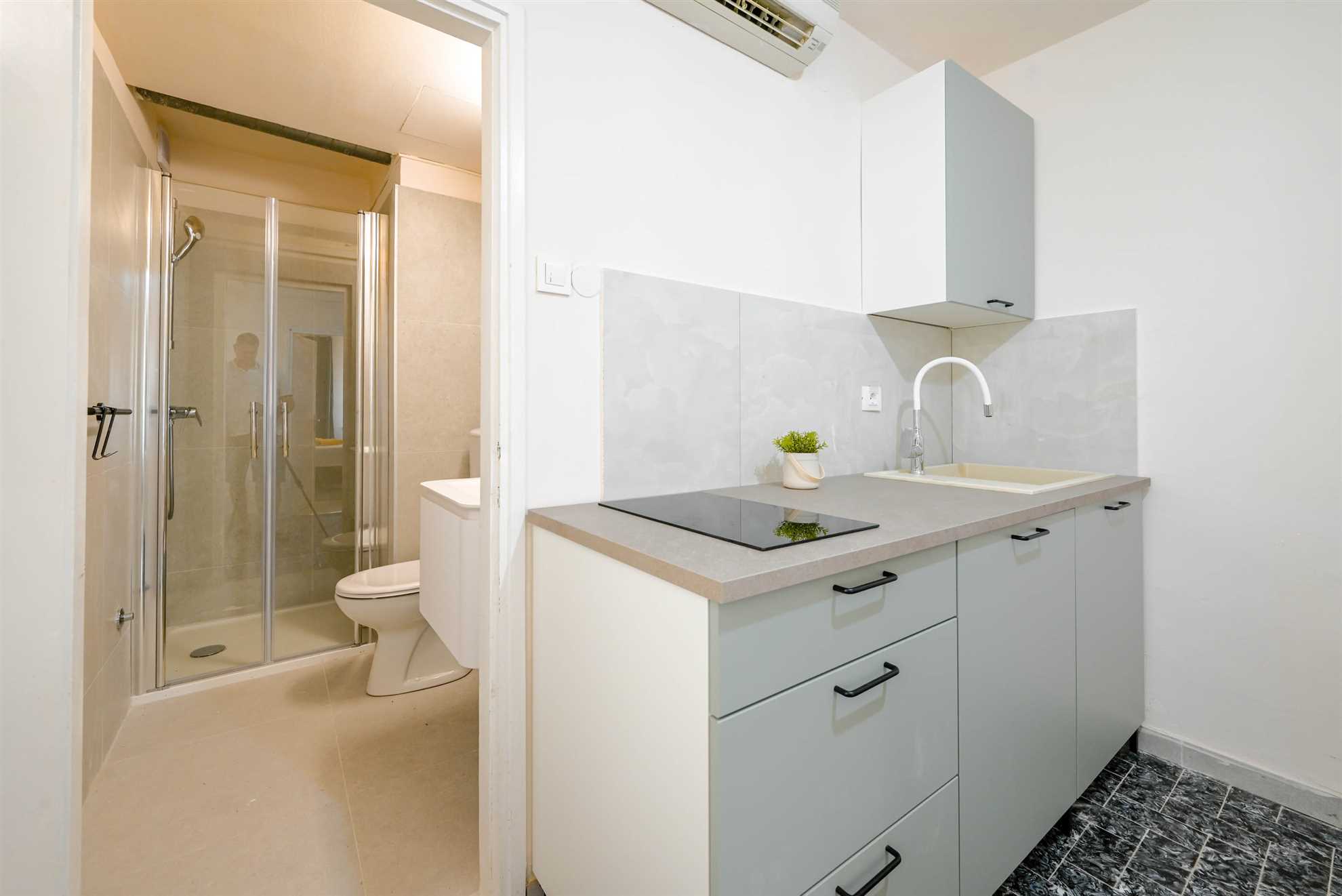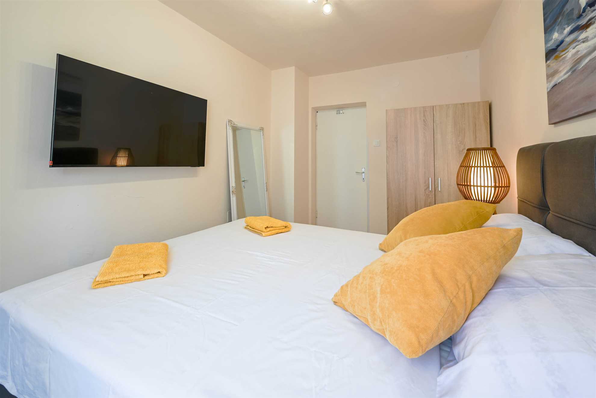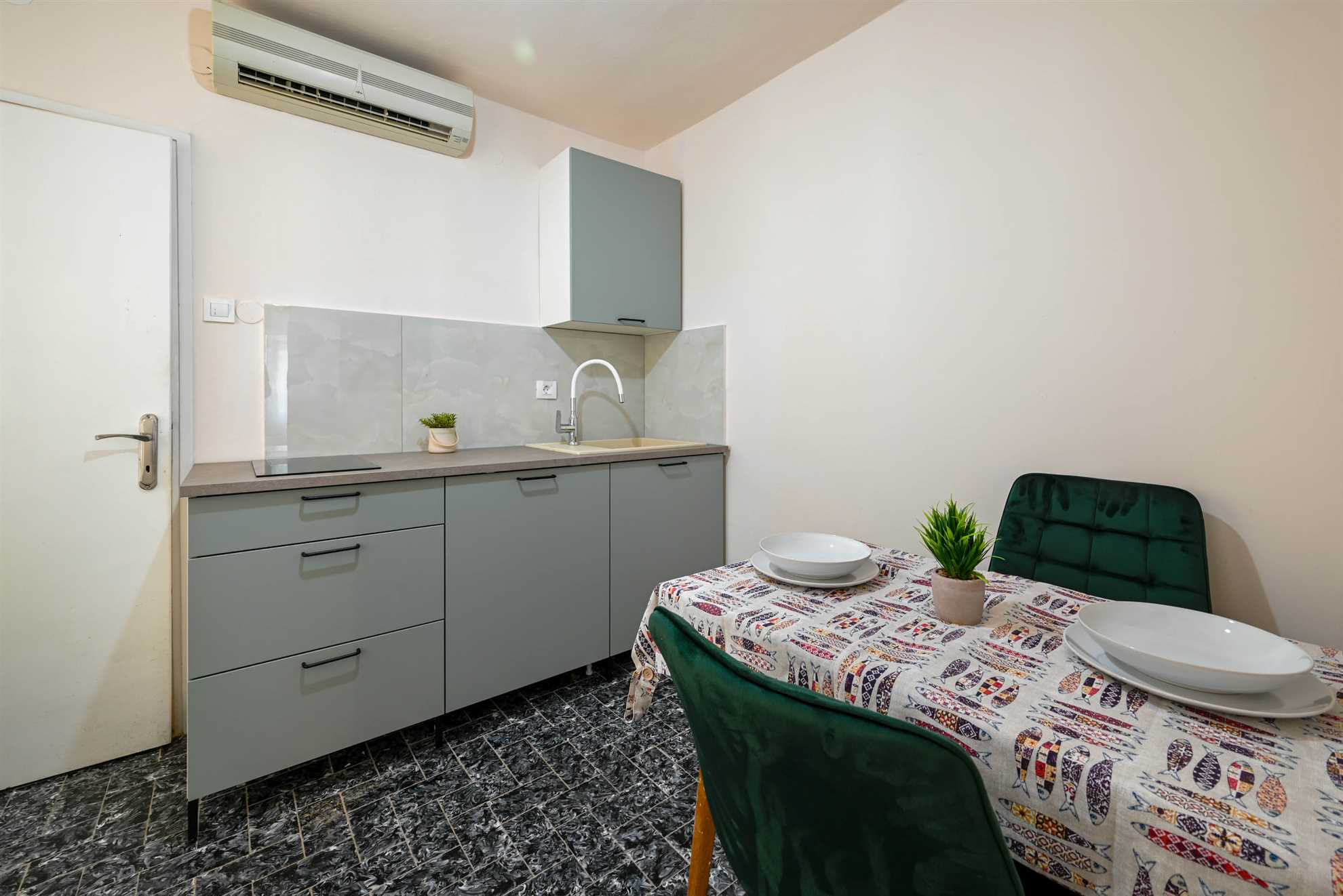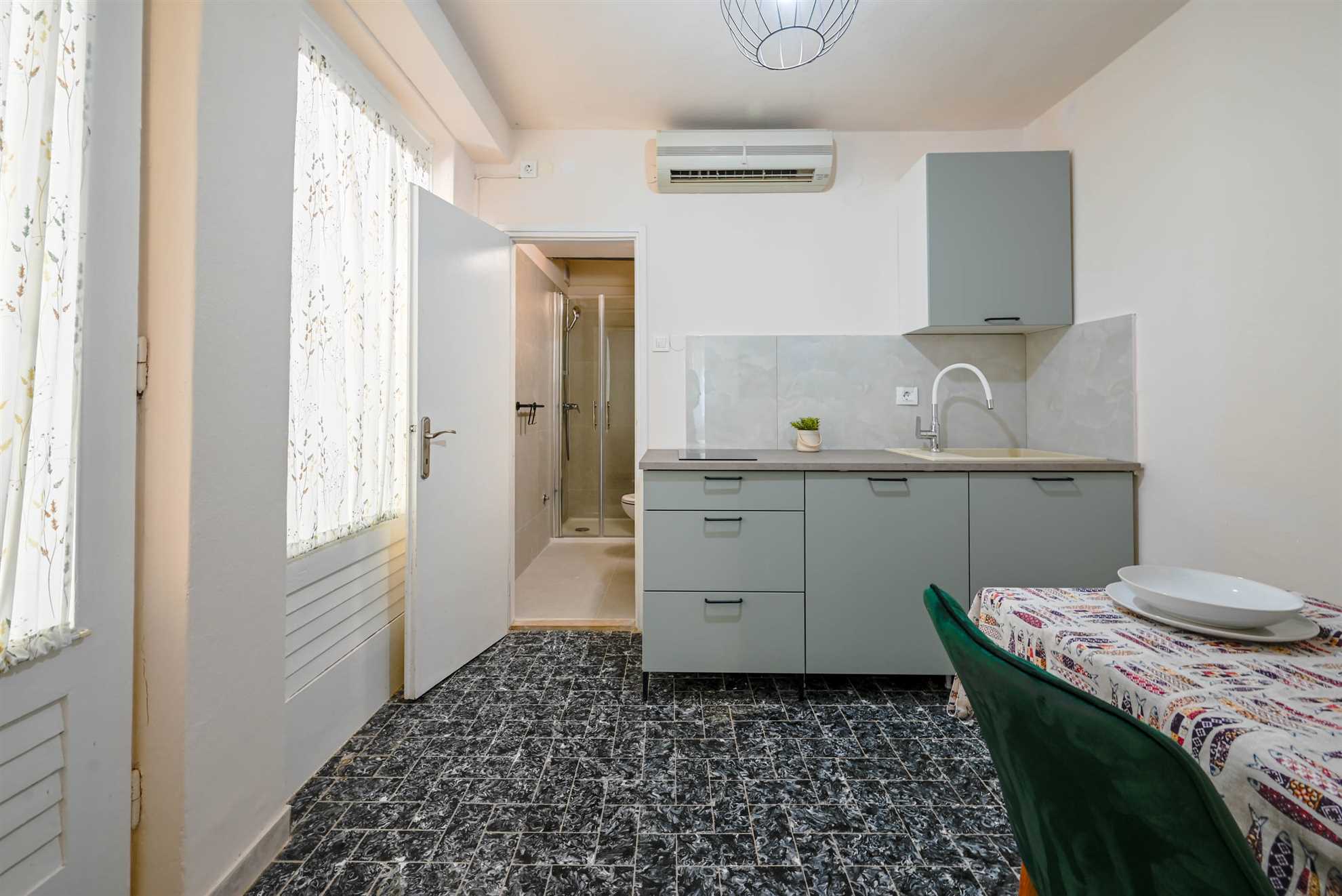 Apartment have double bed (160 x 200) with air condition and smart TV. Free wifi is available. Kitchen with all necessary for cooking and small table with 2 chairs. Newly renovated bathroom with shower. Private terrace is with table and 2 chairs