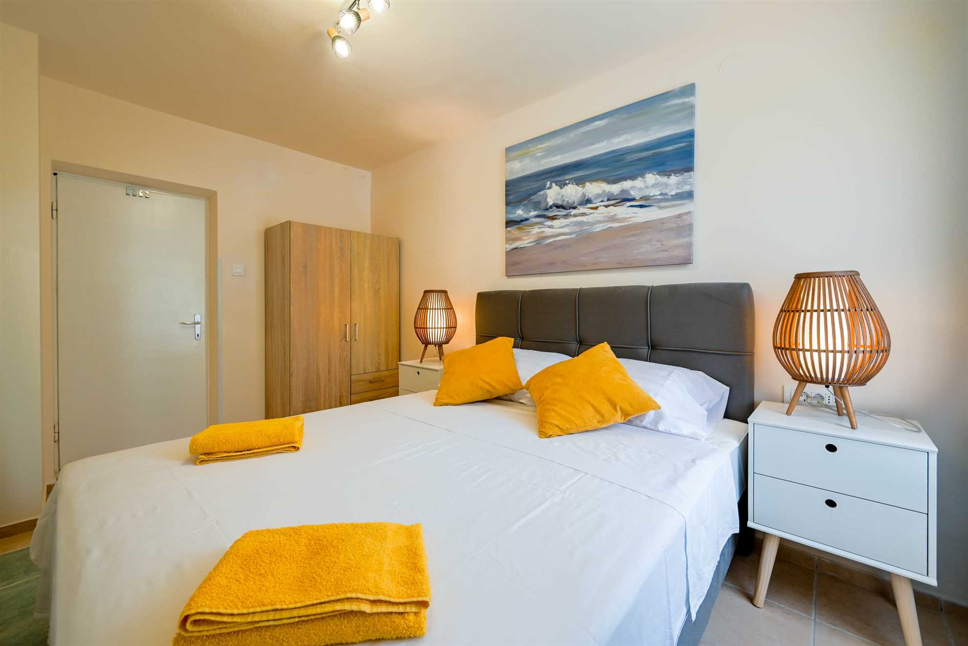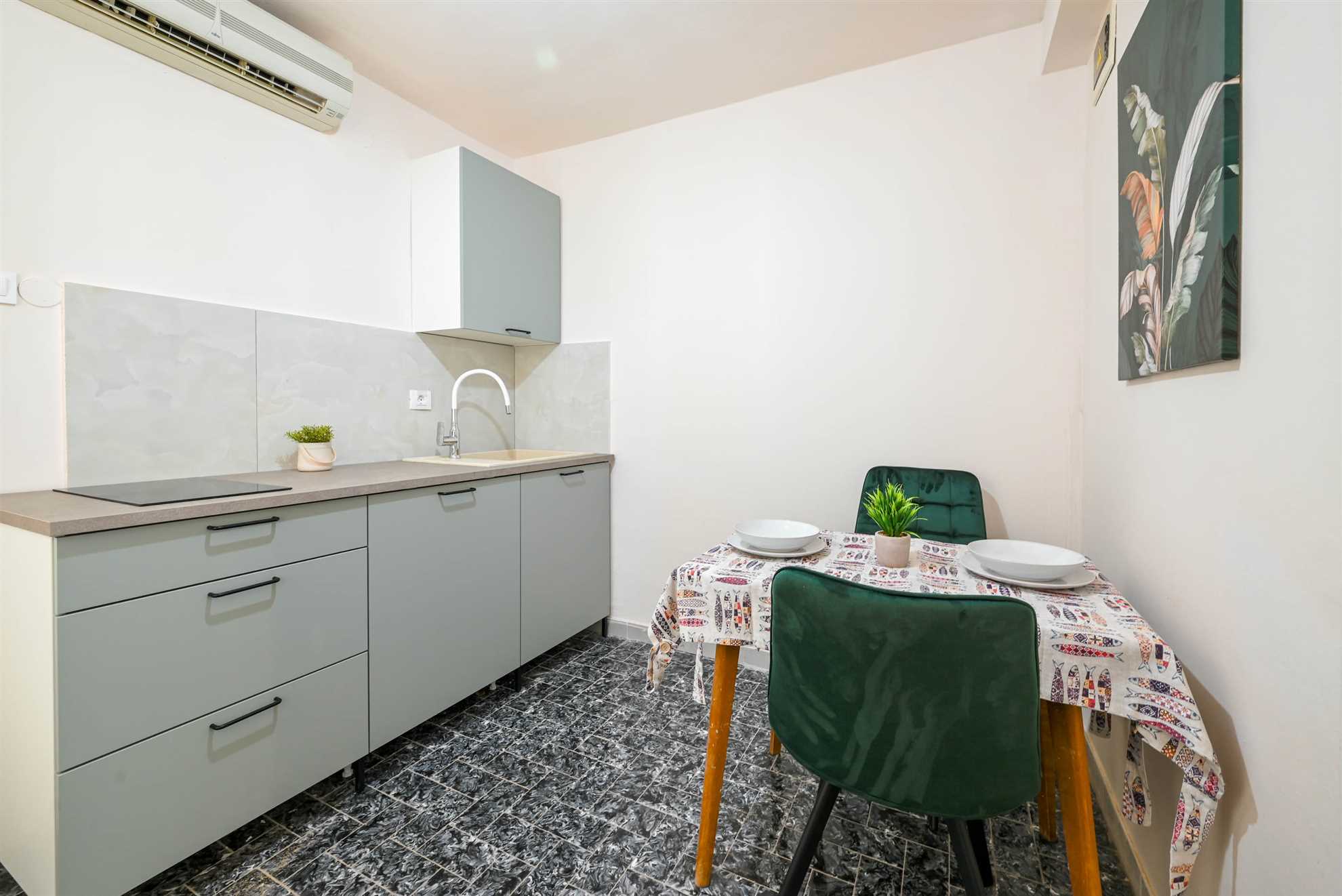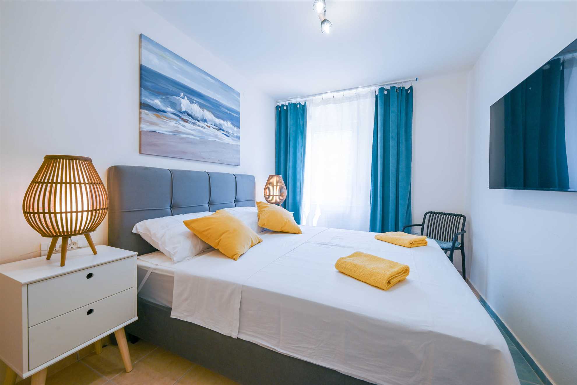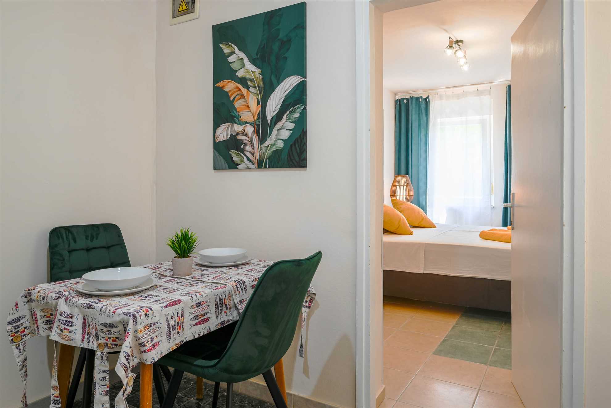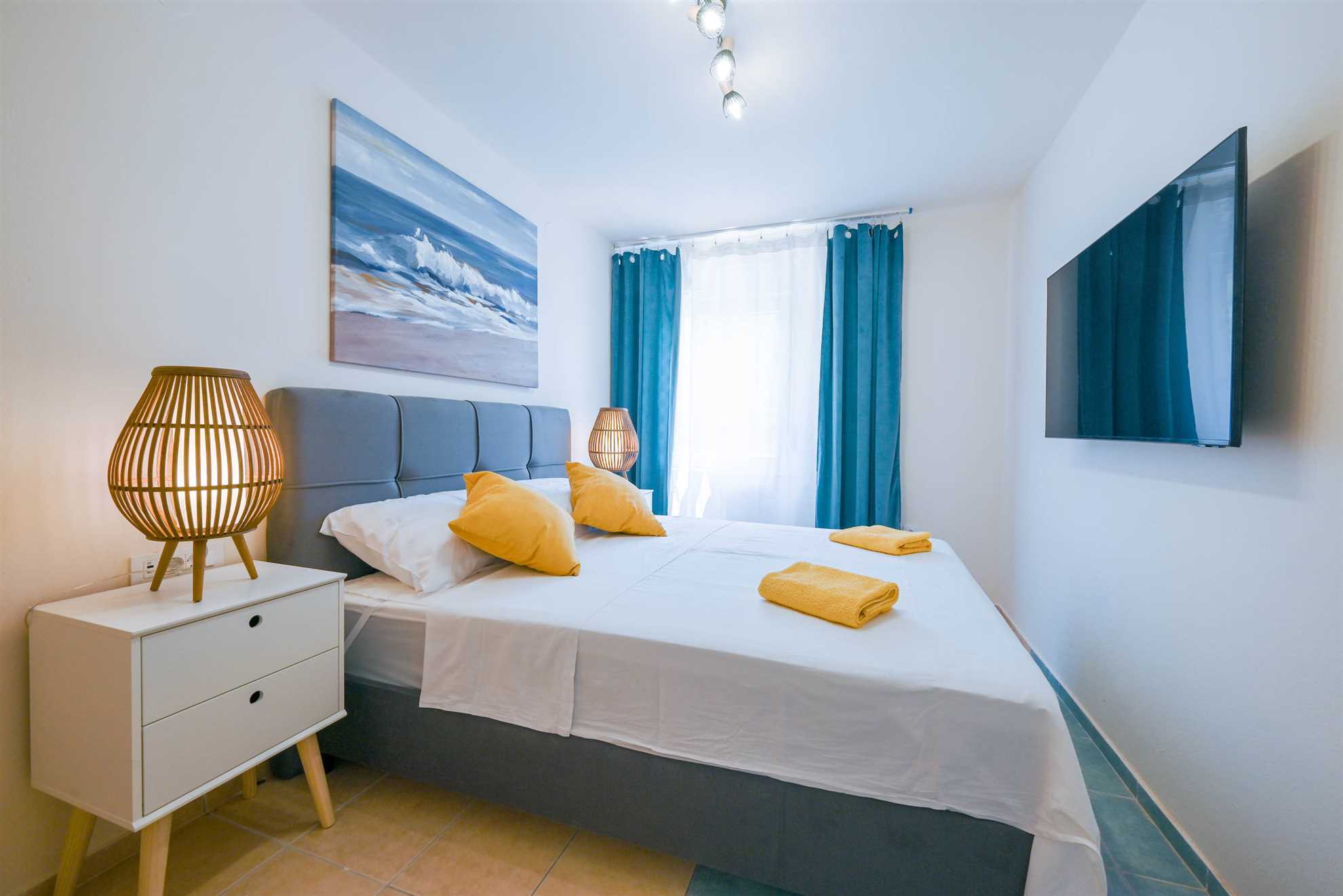 Apartment have double bed (160 x 200) with air condition and smart TV. Free wifi is available. Kitchen with all necessary for cooking and small table with 2 chairs. Newly renovated bathroom with shower. Private terrace is with table and 2 chairs