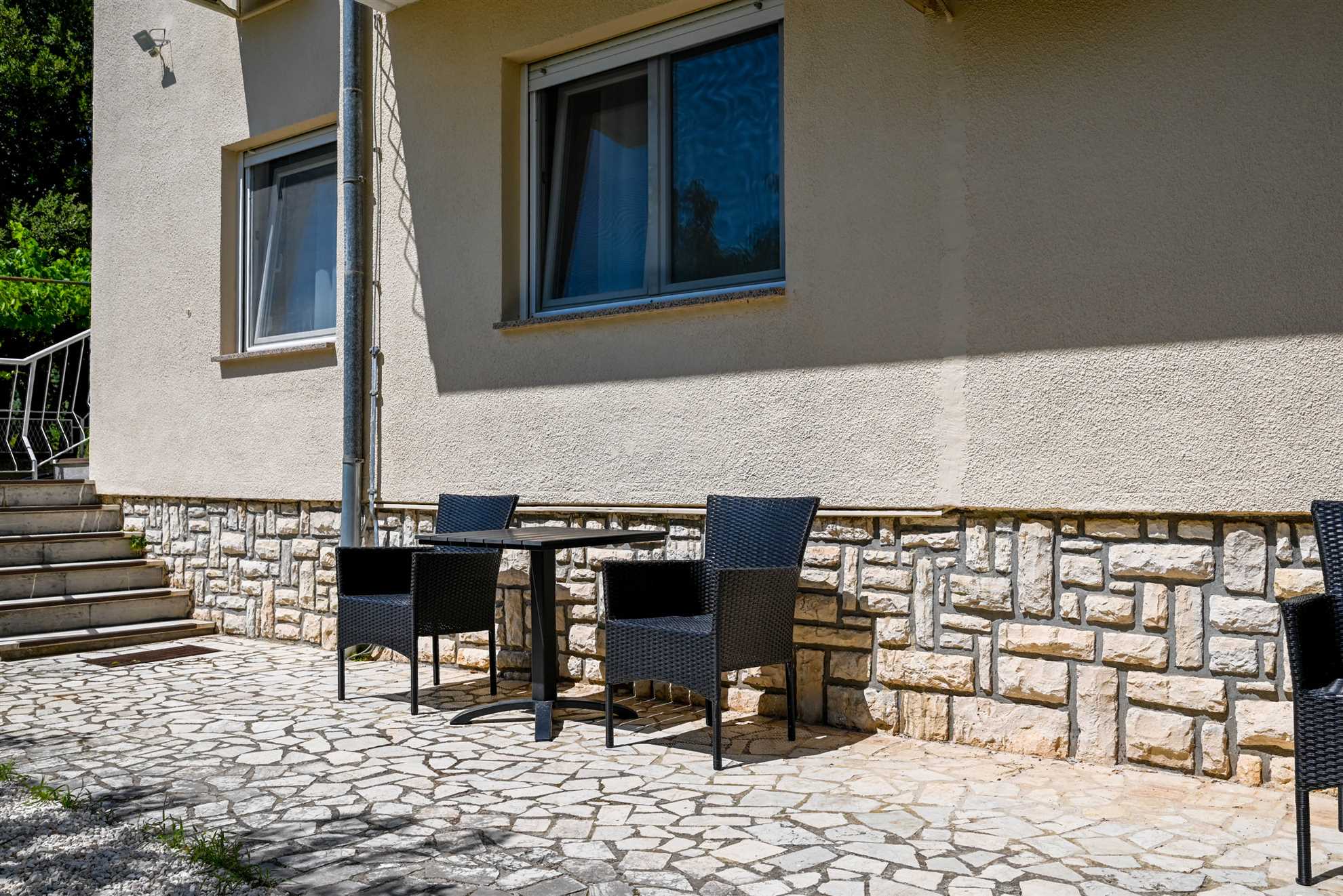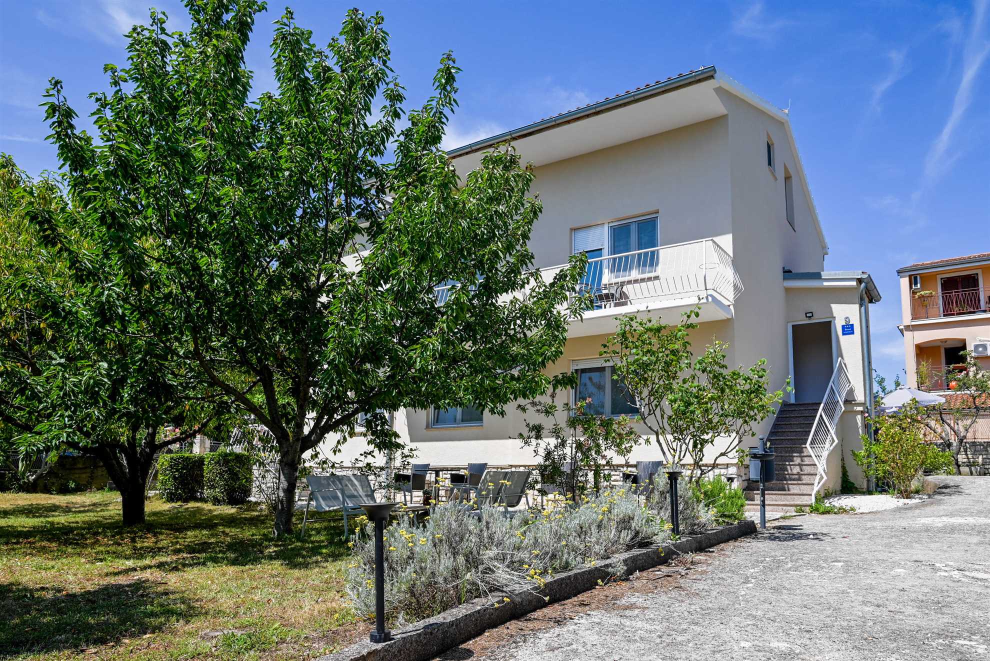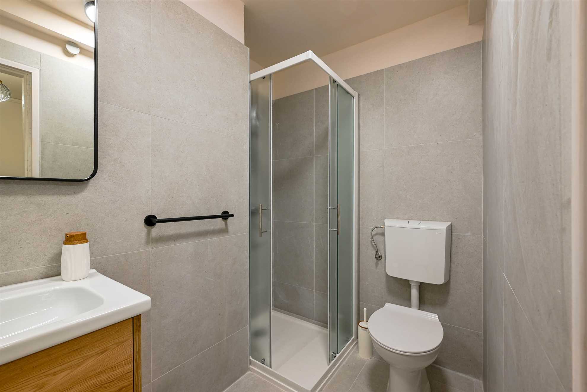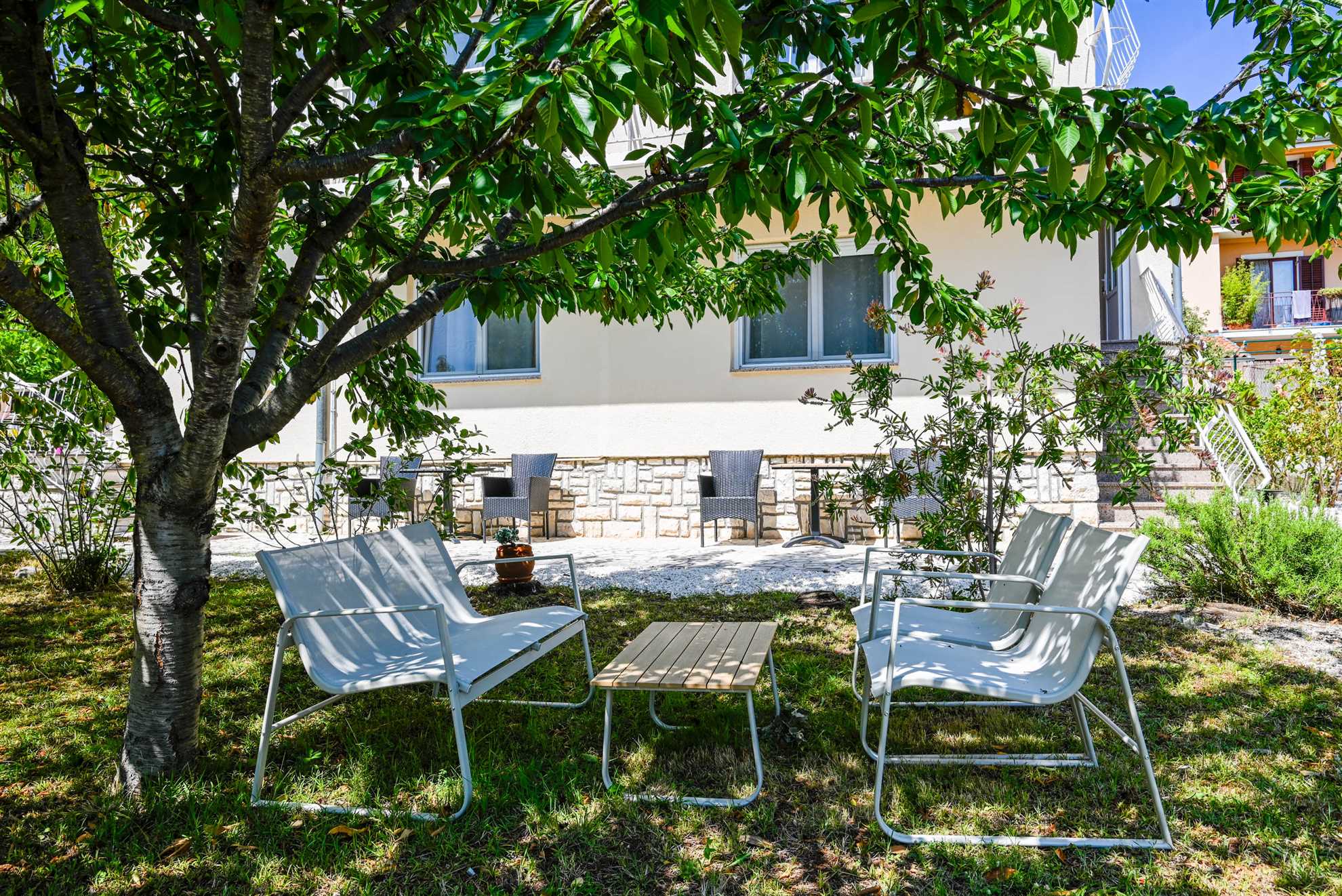 Apartment have one separate bedrooms with double bed and air condition, with laptop friendly desk and smart TV. Free wifi is available. In kitchen there is table with chairs and sofa that can be used for third person. Kitchen have fridge, dishwasher and all necessary to prepare meals.