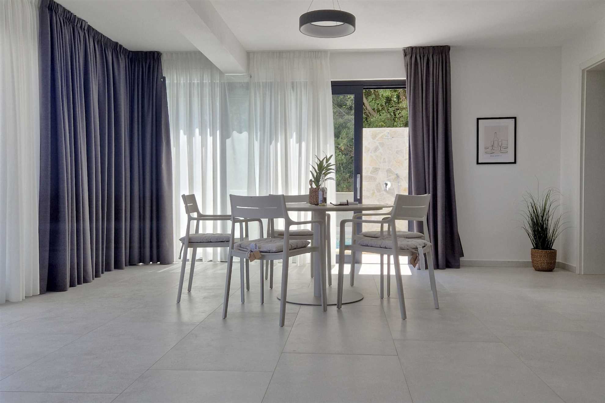 Casa Meer was designed to make the most of its incredible views. You can enjoy two covered balconies and a terrace, each furnished with a dining table for four guests and offering sweeping views of the Adriatic. The ground-floor terrace connects directly to the pool deck, where you’ll find ten sun loungers and four parasols. Whether you prefer sunny afternoons or relaxing in the shade, there’s a comfortable spot waiting for you.