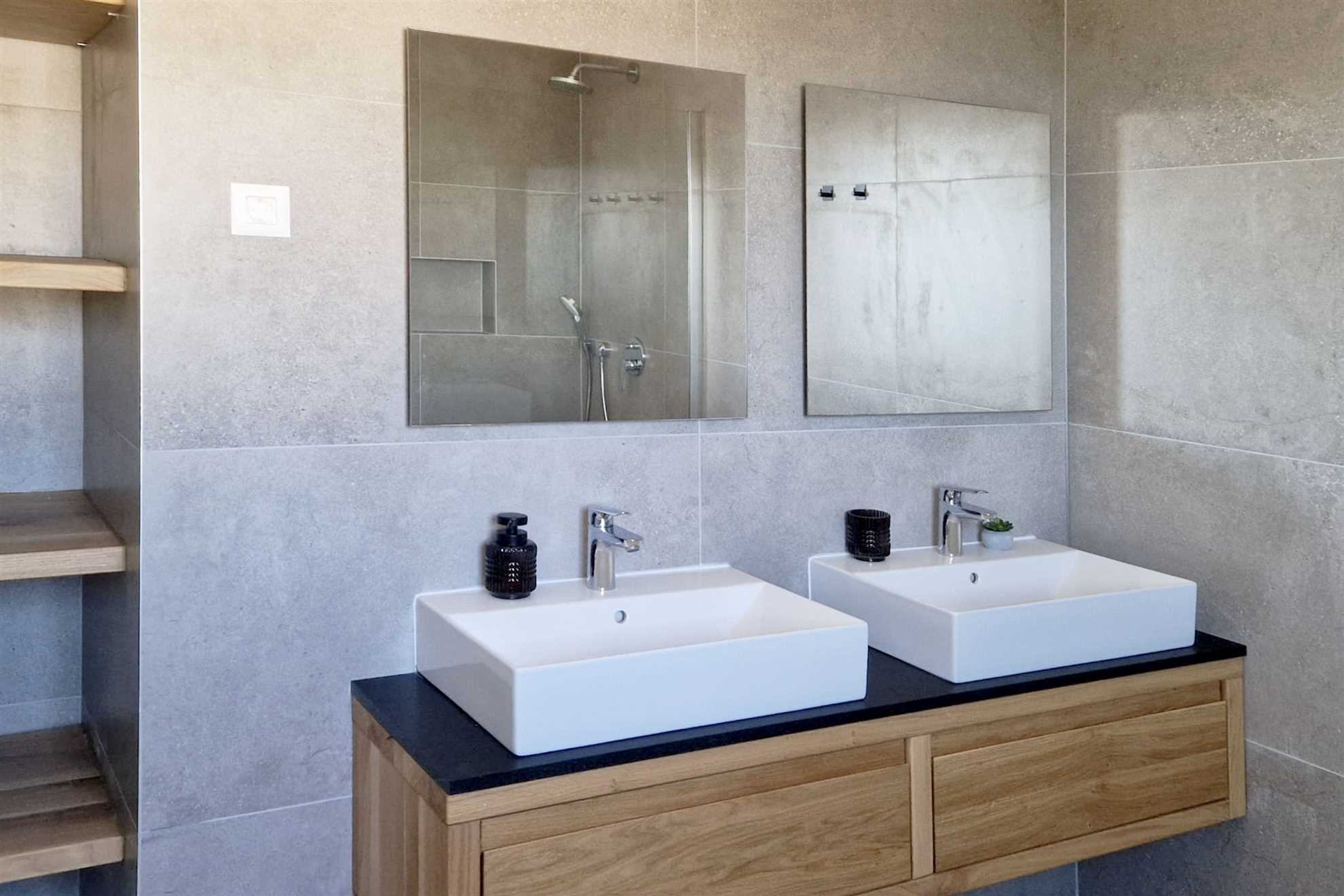 Casa Meer offers a total of six modern bathrooms, with two located in each unit. All bathrooms feature a walk-in rain shower for a refreshing, spa-like experience, and five of them are en-suite for extra privacy and convenience. An additional outdoor shower with hot and cold water is available on the deck — ideal for rinsing off after a swim or a sunny afternoon by the pool. On the second floor, you’ll also find a guest toilet equipped with a washing machine, adding another practical touch for longer stays.