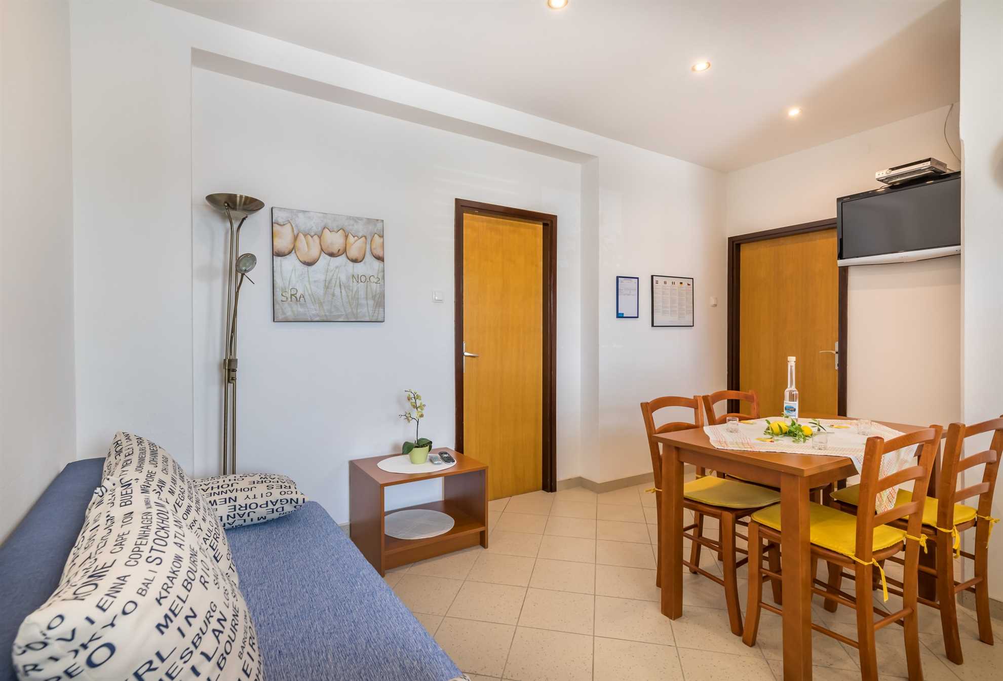 As you step inside, you'll be captivated by the tasteful interiors, sophisticated design, and welcoming ambiance. The apartment comes with a spacious living room, perfect for relaxing after a fun-filled day of exploring Baška. Unwind on the sofa while catching up on your favourite shows or enjoying a good book.