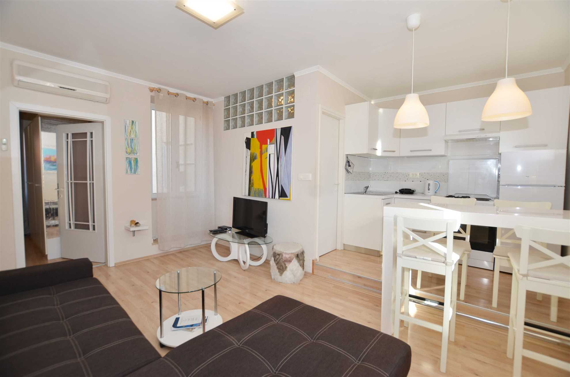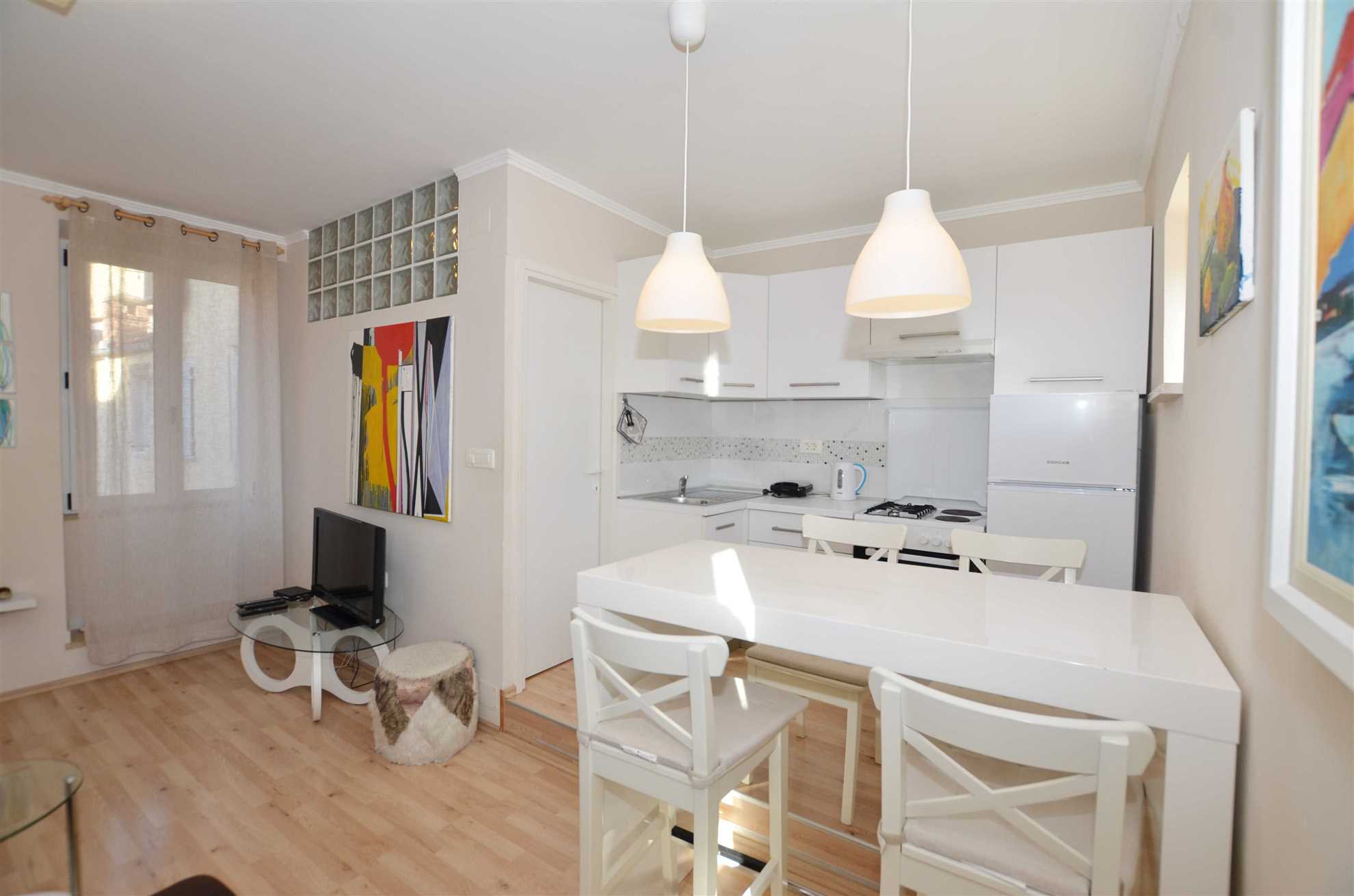 This nice apartment with one separate bedroom and sofa in living room, capacity for up to 3 persons. Located in center of Rovinj, verry close to the nice restaurants. The closest beach is in only few minutes walking distance. Apartment have sea view from the window in living room.