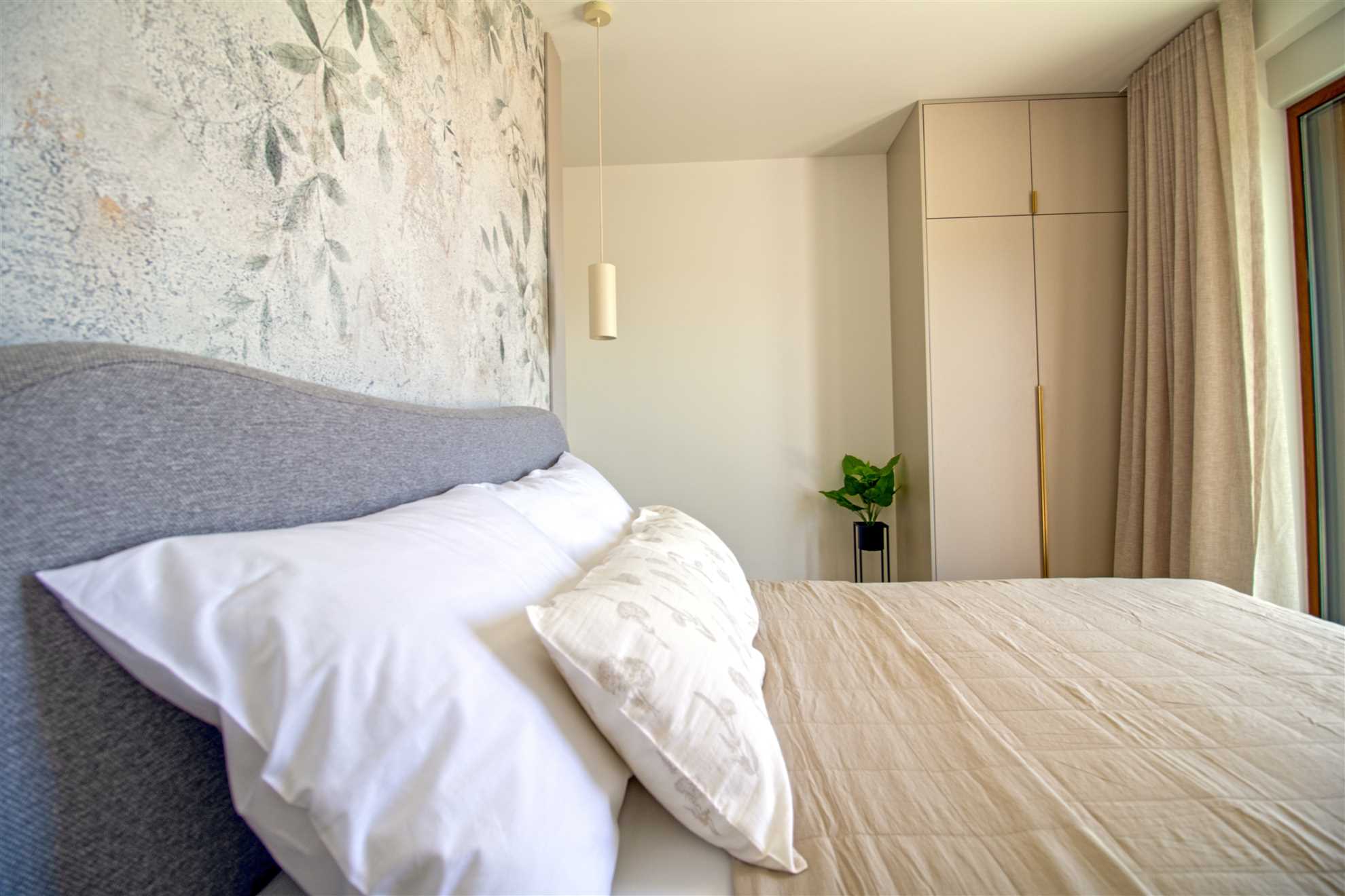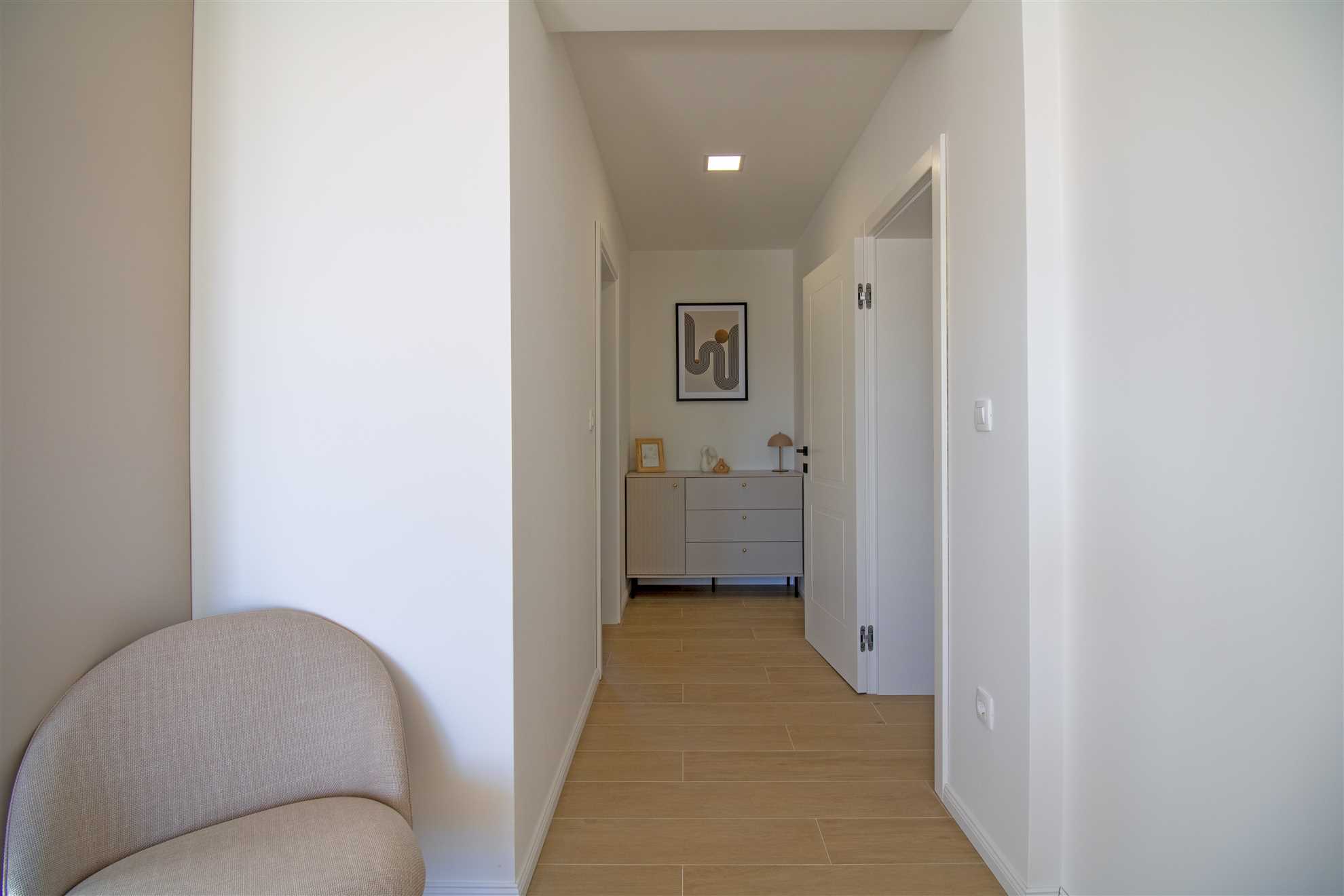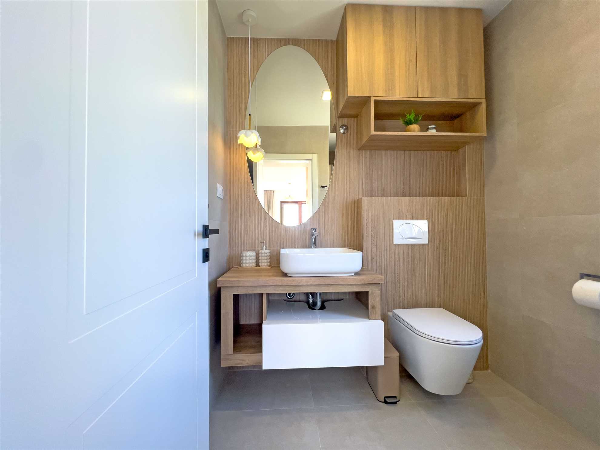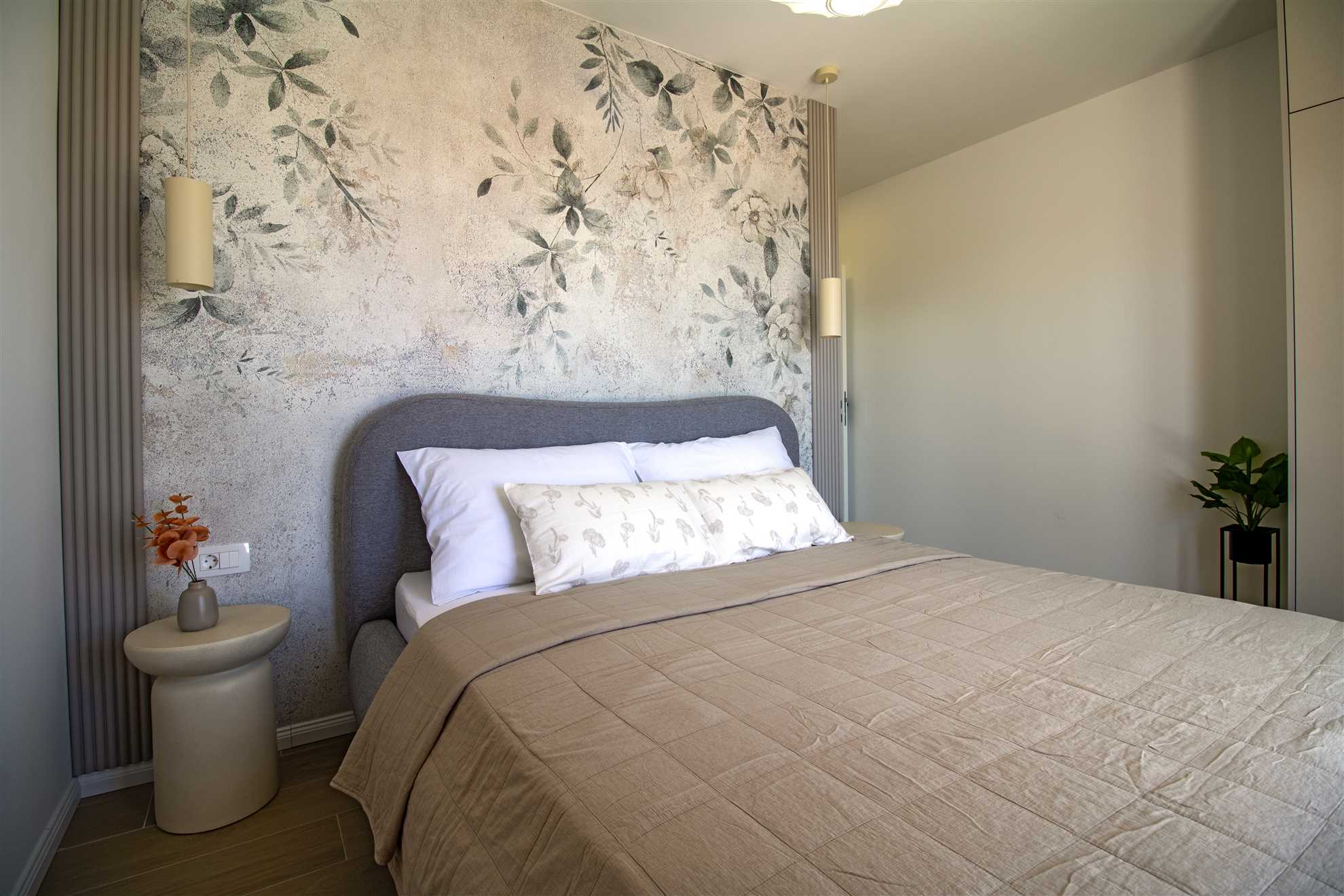 Upstairs, there are three comfortable bedrooms, each with a 160×200 cm bed and a private en-suite bathroom with walk-in shower. The upper floor also offers access to a shared balcony with sea views.