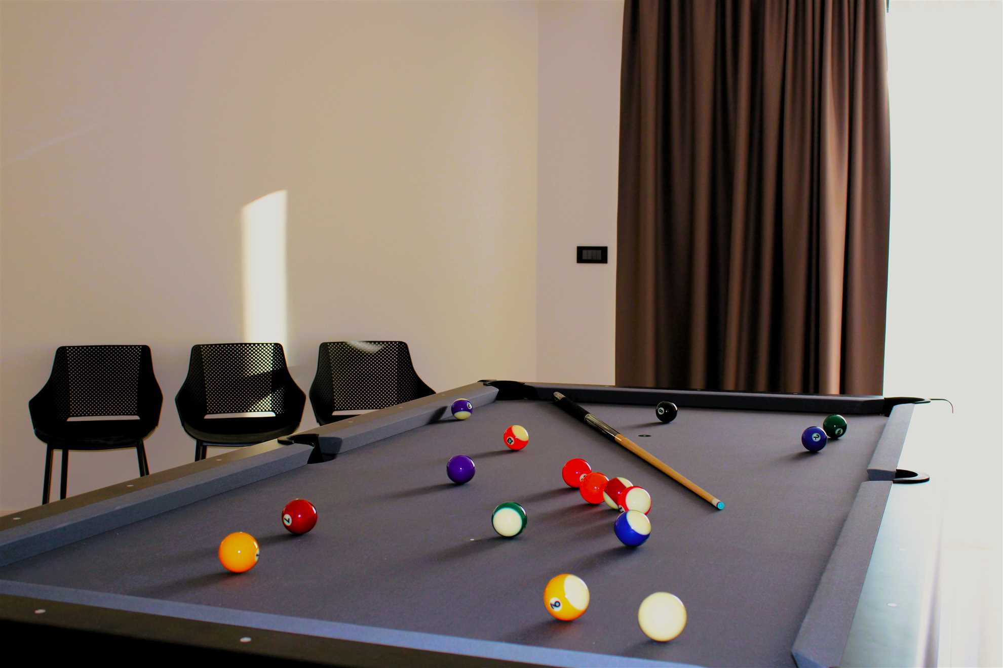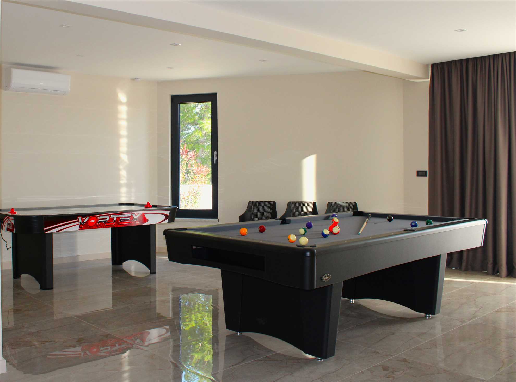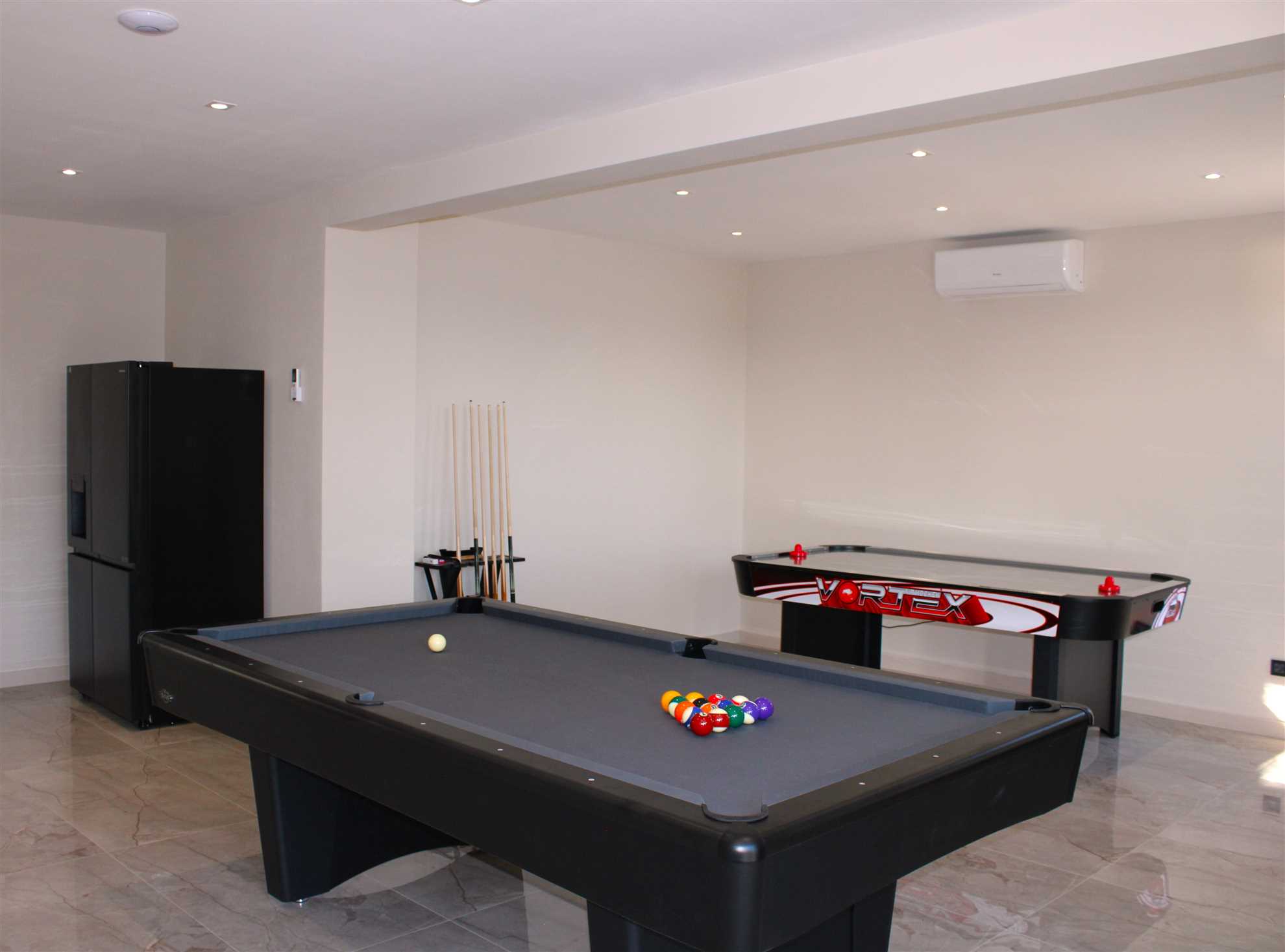 A special highlight of the villa is the separate entertainment room, where guests can enjoy a billiards table and an air hockey table — ideal for fun evenings and friendly competitions. This room also includes a double refrigerator with a freezer and a drinking water supply, which is especially practical for pool days and larger groups.