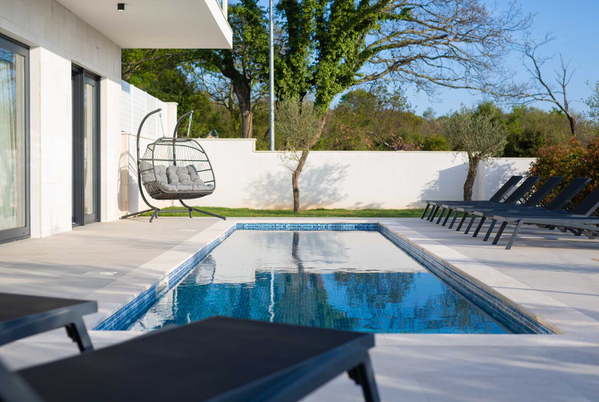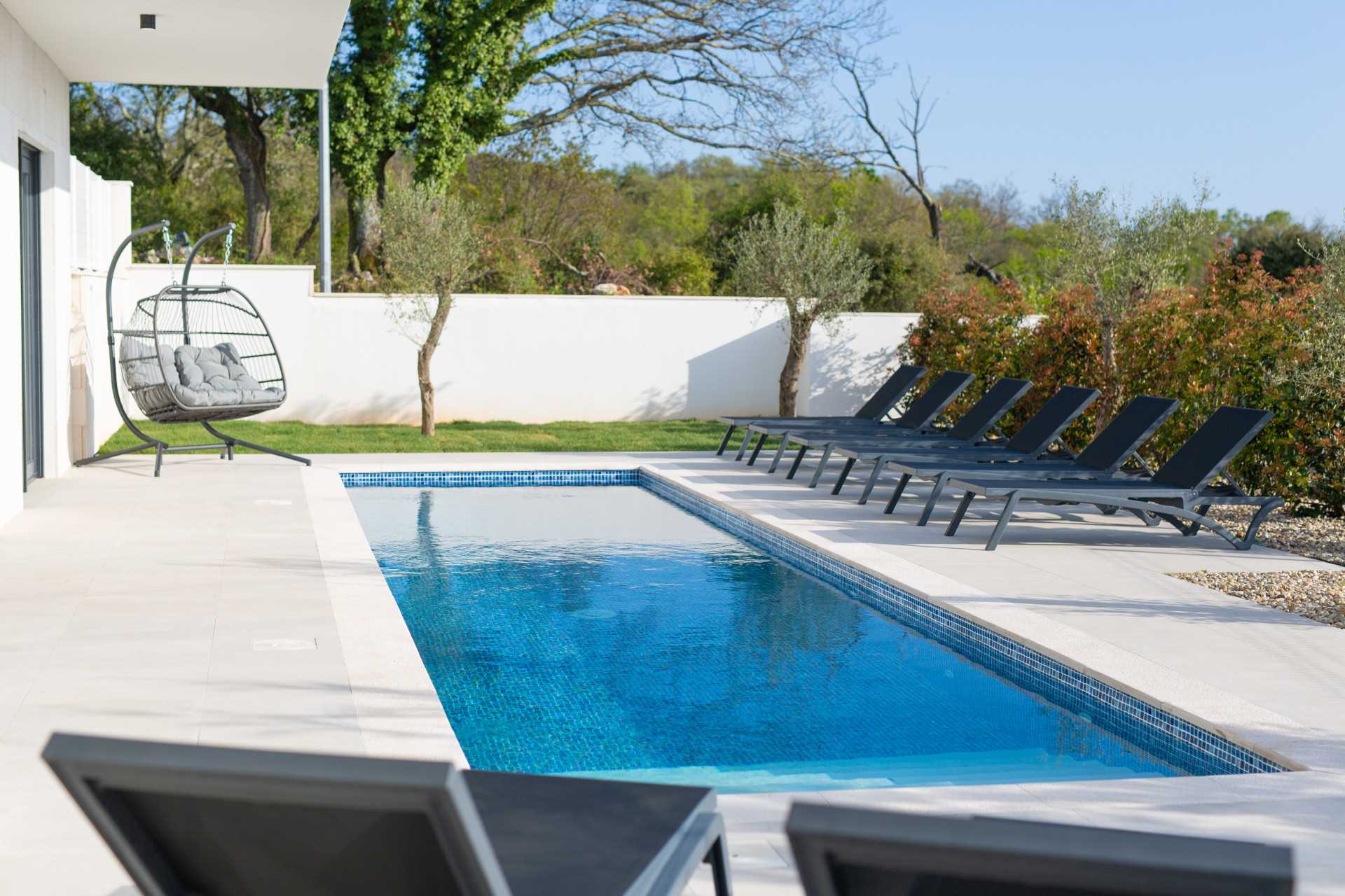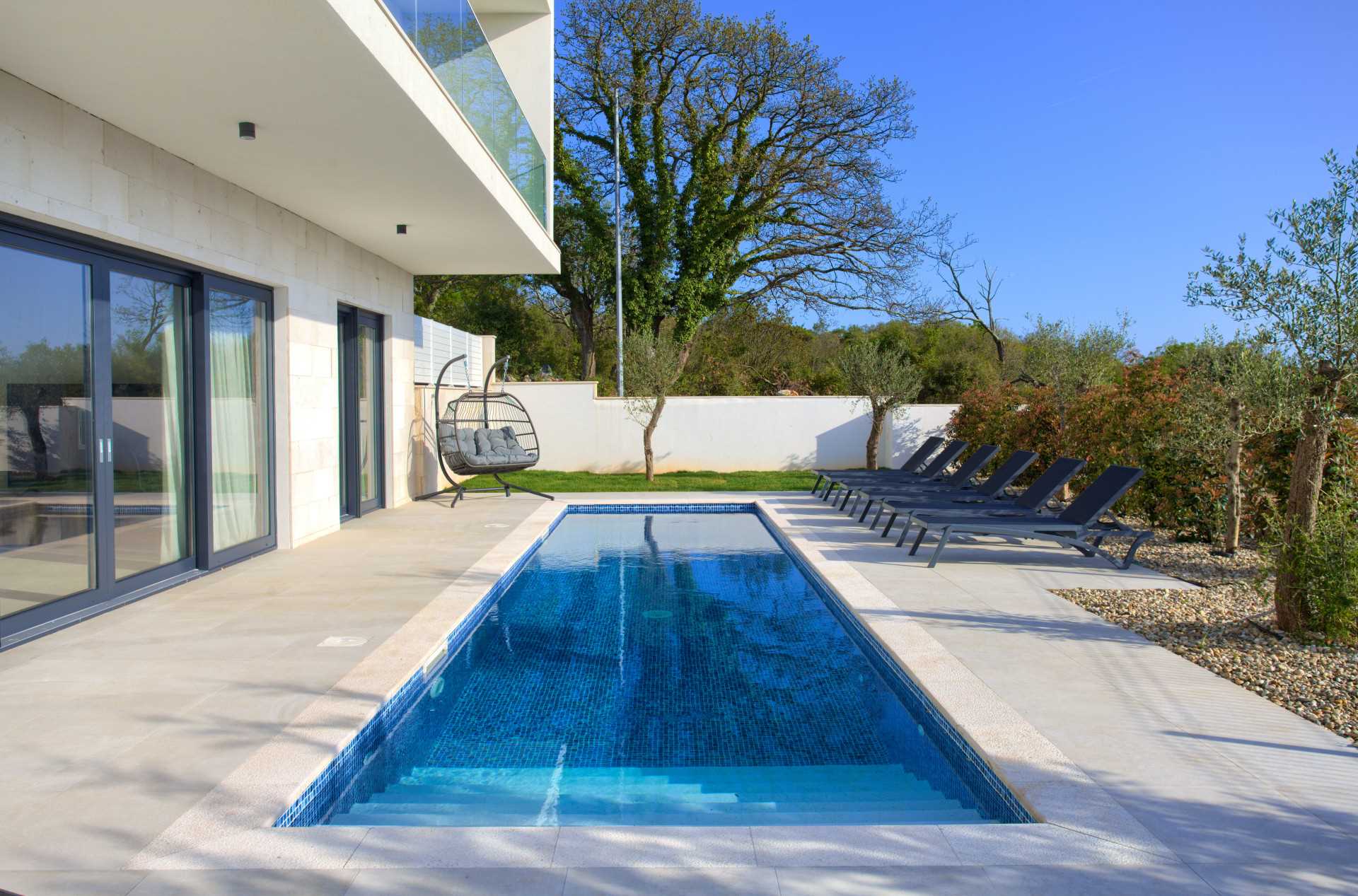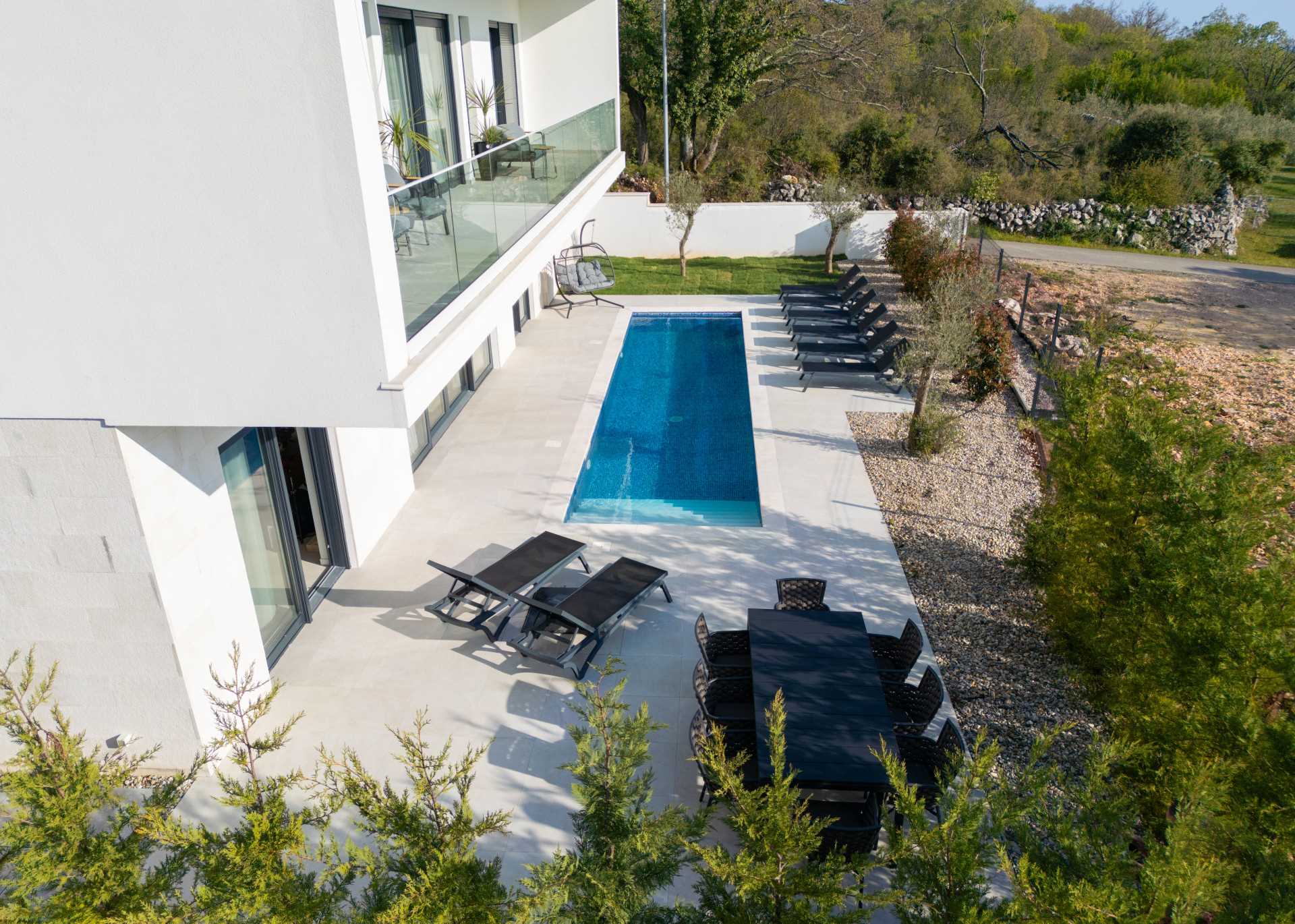 A modern Mediterranean paradise on the island of Krk. Just a short walk from the azure waters of the Adriatic and nestled in a peaceful setting, Villa Sensei offers the perfect harmony of contemporary luxury, Mediterranean serenity, and breathtaking sea views from the villa’s upper floor. Recently built, the villa features spacious, thoughtfully designed interiors on a private, green plot.