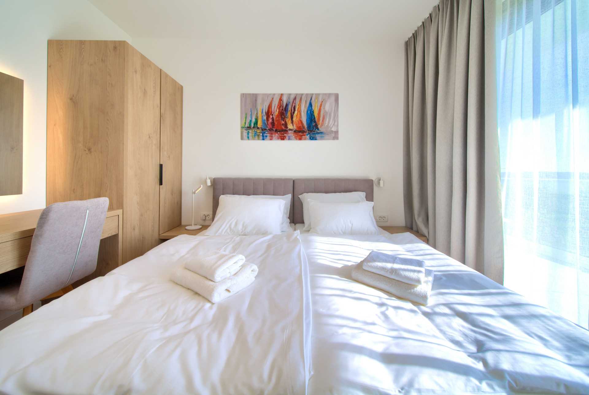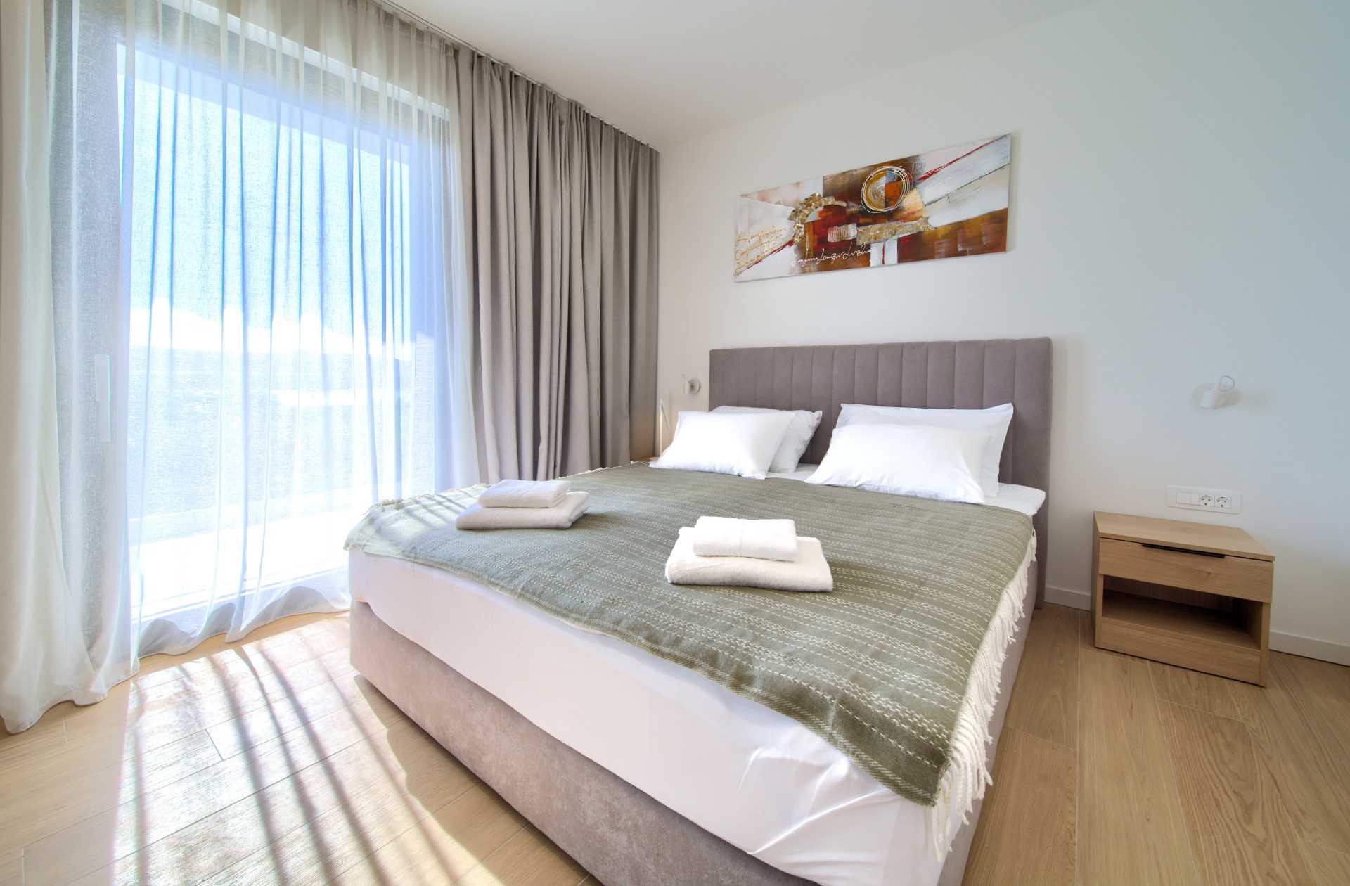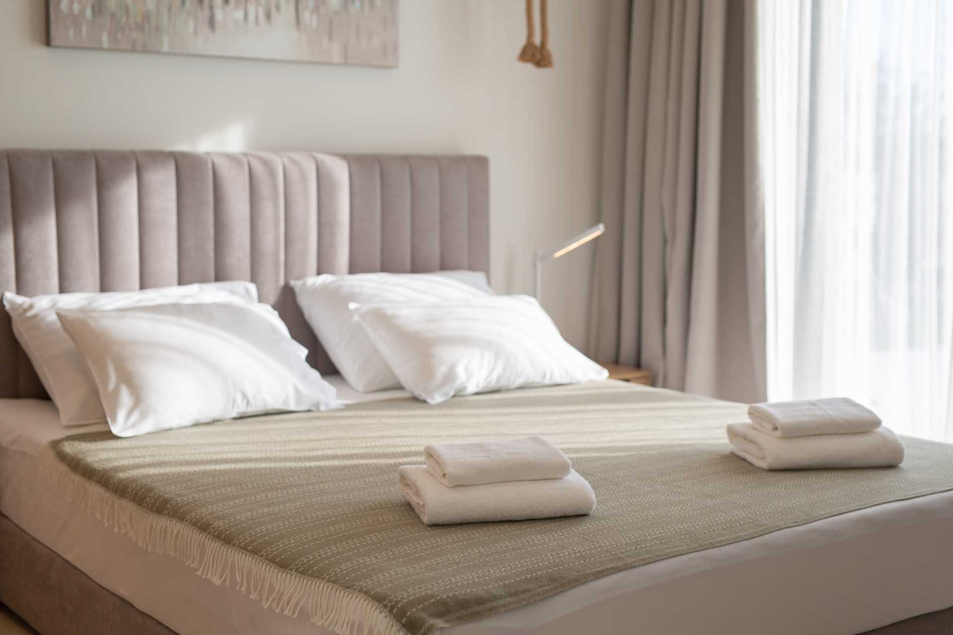The villa has four spacious and luxuriously furnished bedrooms, each with its own modern bathroom, ensuring complete privacy and comfort for all guests. Three bedrooms are equipped with comfortable double beds, while one offers the option of two single beds, providing flexible sleeping arrangements. The villa is always prepared with fresh bed linen and soft towels, adding a sense of home and comfort.