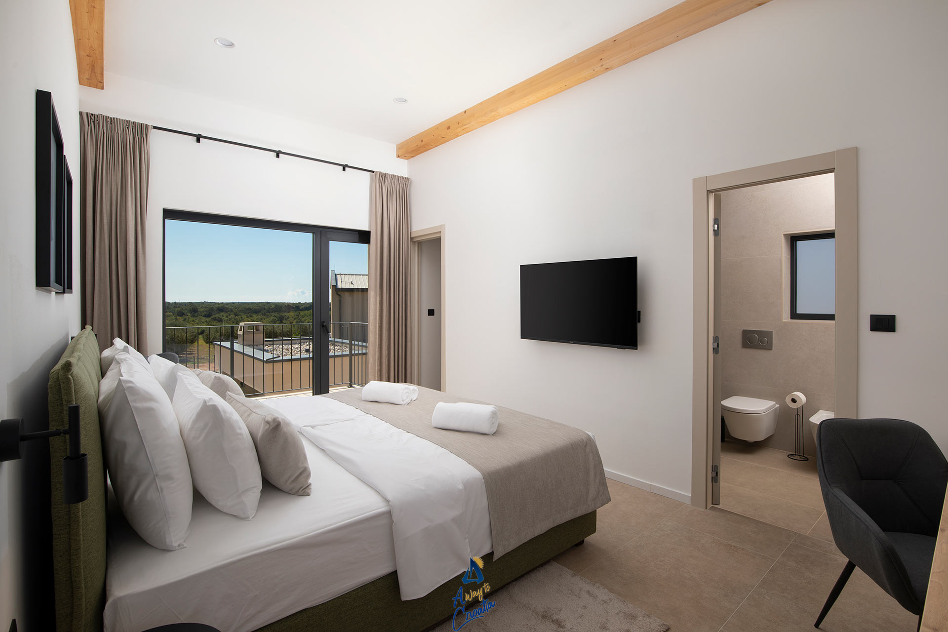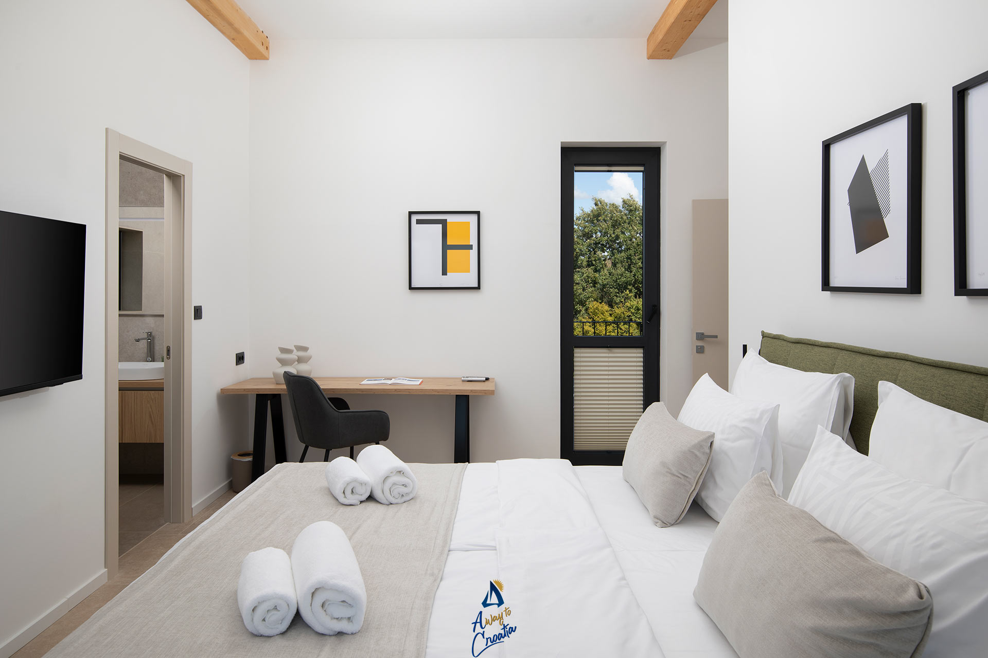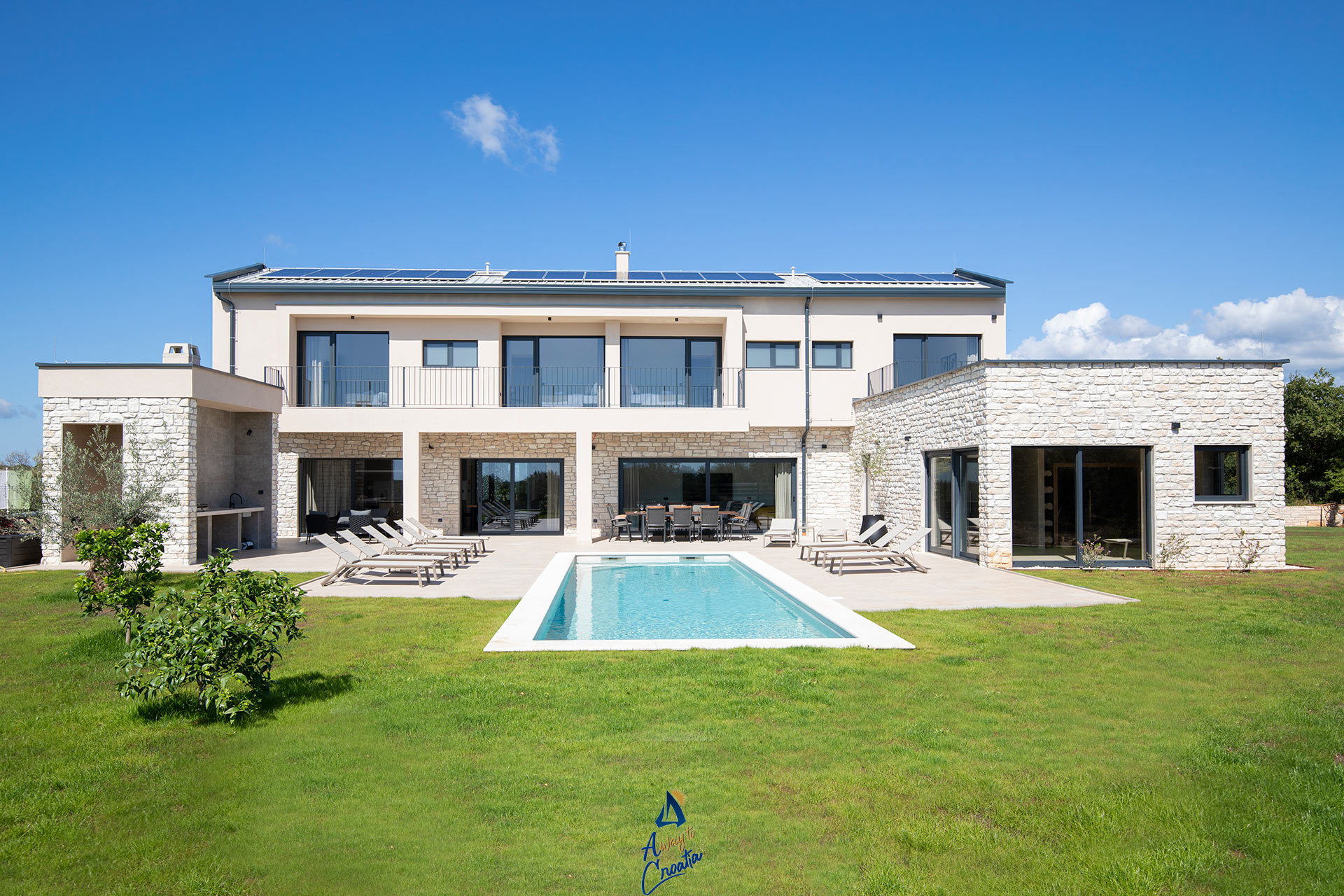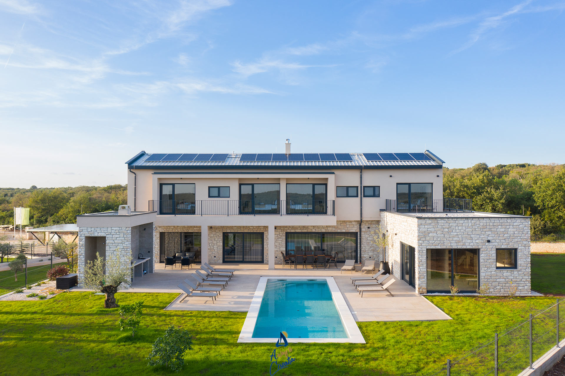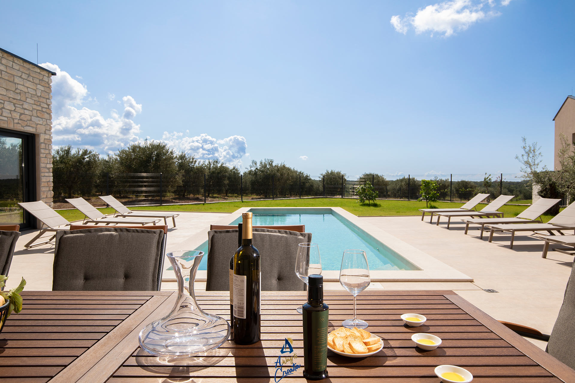 Indulge in the brand-new Villa Buža, part of the exclusive Olive Yard Villas complex in Bale, Istria. This contemporary villa comfortably accommodates up to 10 guests across five bedrooms, each with a private en-suite bathroom, ensuring maximum comfort and privacy.