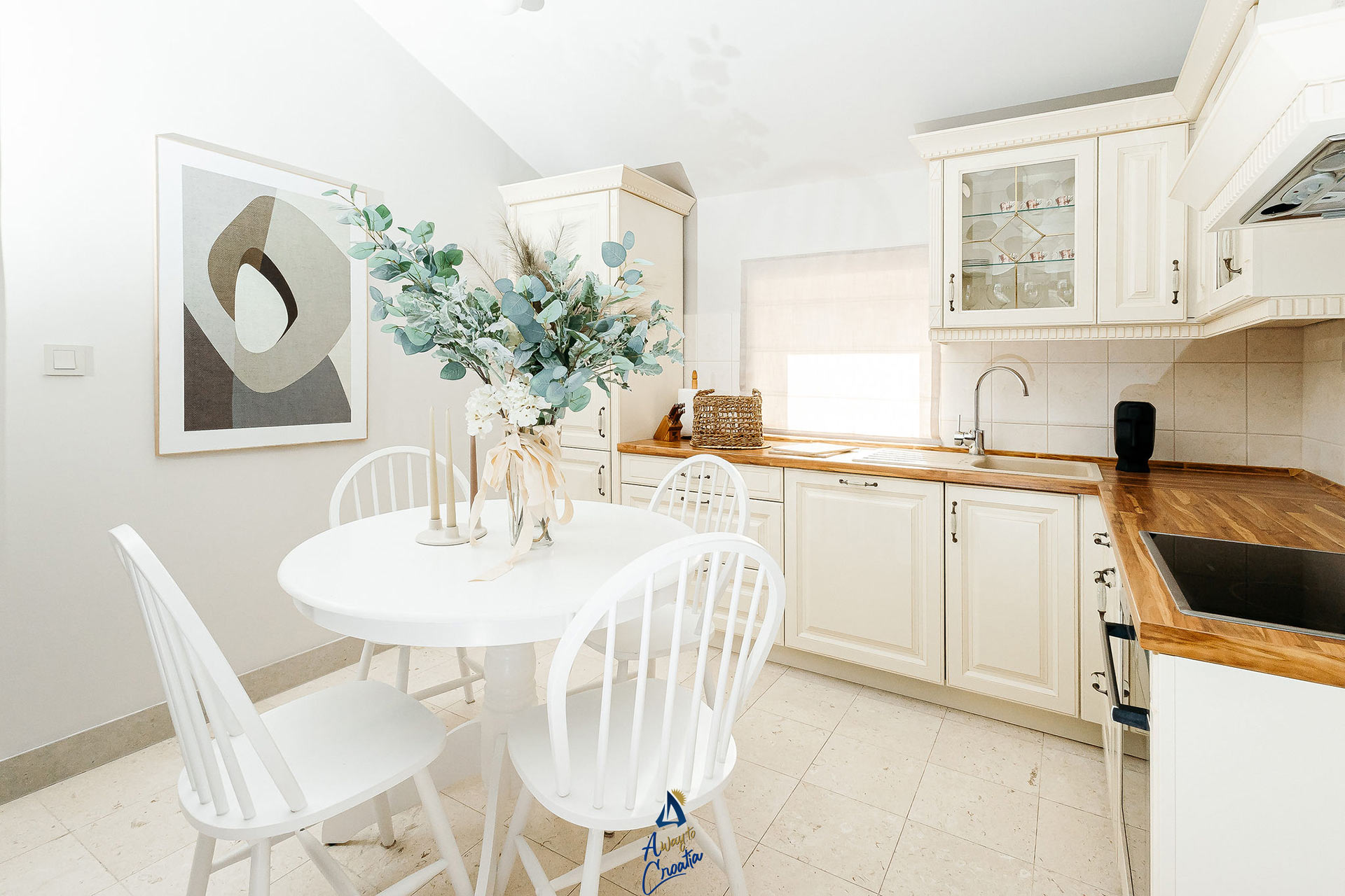Spanning 240 sqm across two levels, the villa comfortably accommodates up to 8 guests in four spacious bedrooms, with multiple living areas that provide both privacy and inviting spaces for gathering. A distinctive feature is the presence of two fully equipped kitchens, making it an ideal choice for multi-generational families or two families sharing the property.