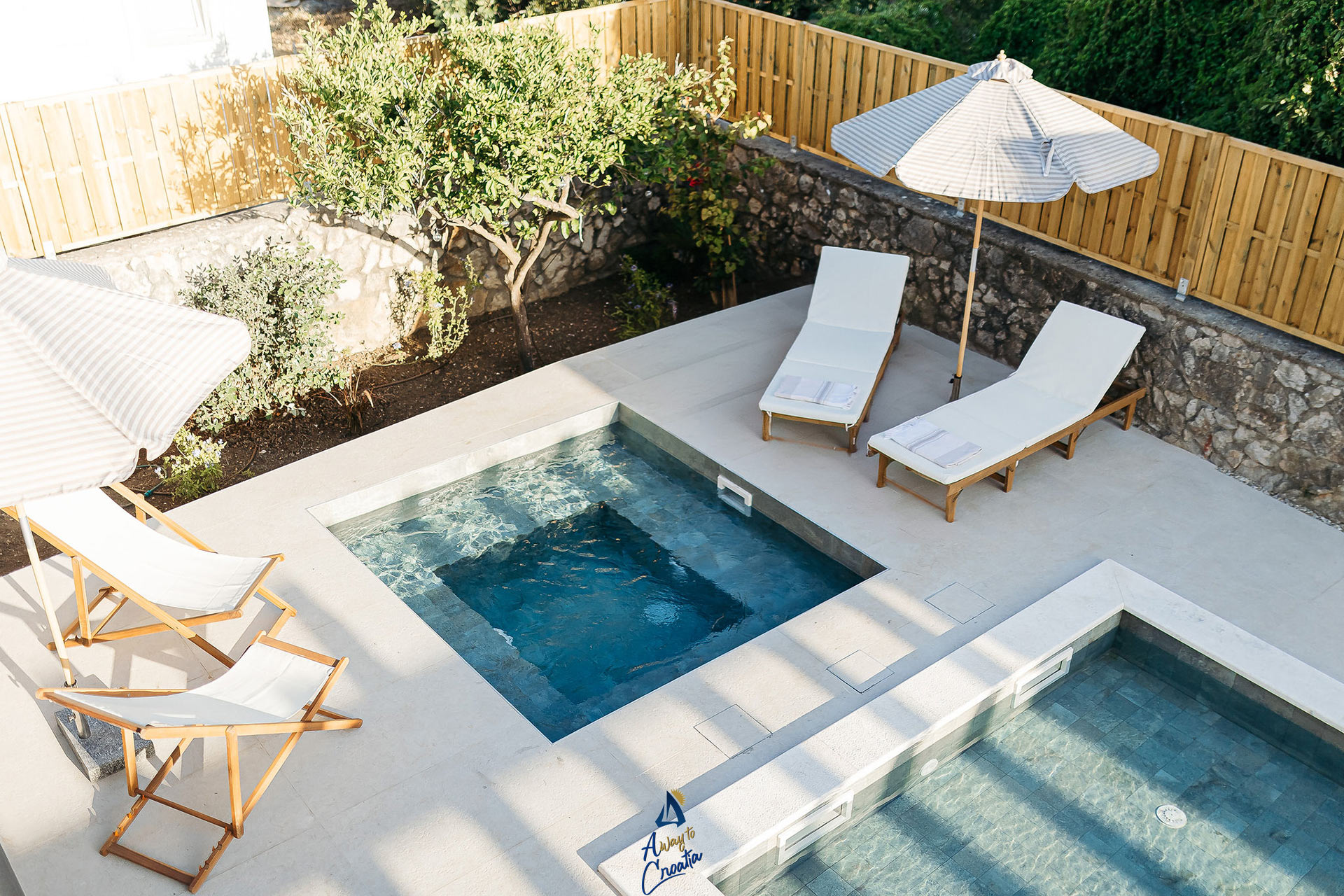 A stylish designer spa villa for up to 8 guests, featuring a private pool, jacuzzi and sauna, surrounded by a beautiful Mediterranean garden, just minutes from beaches, restaurants and charming seaside cafés.