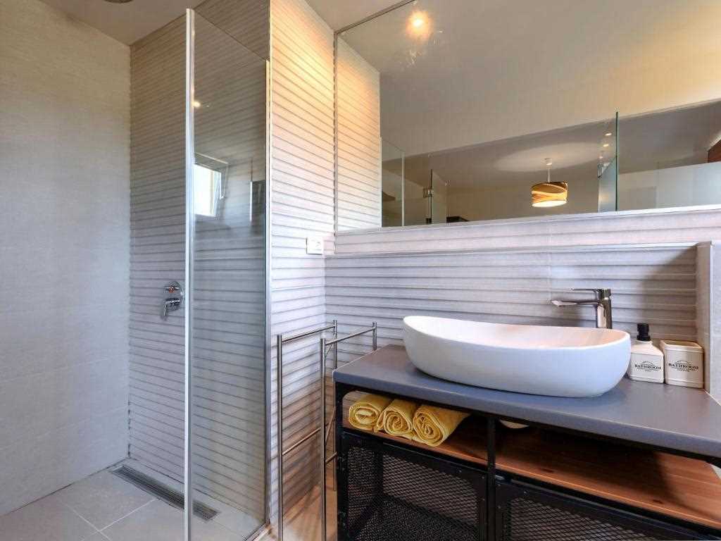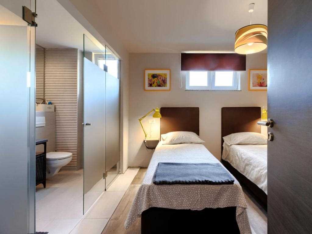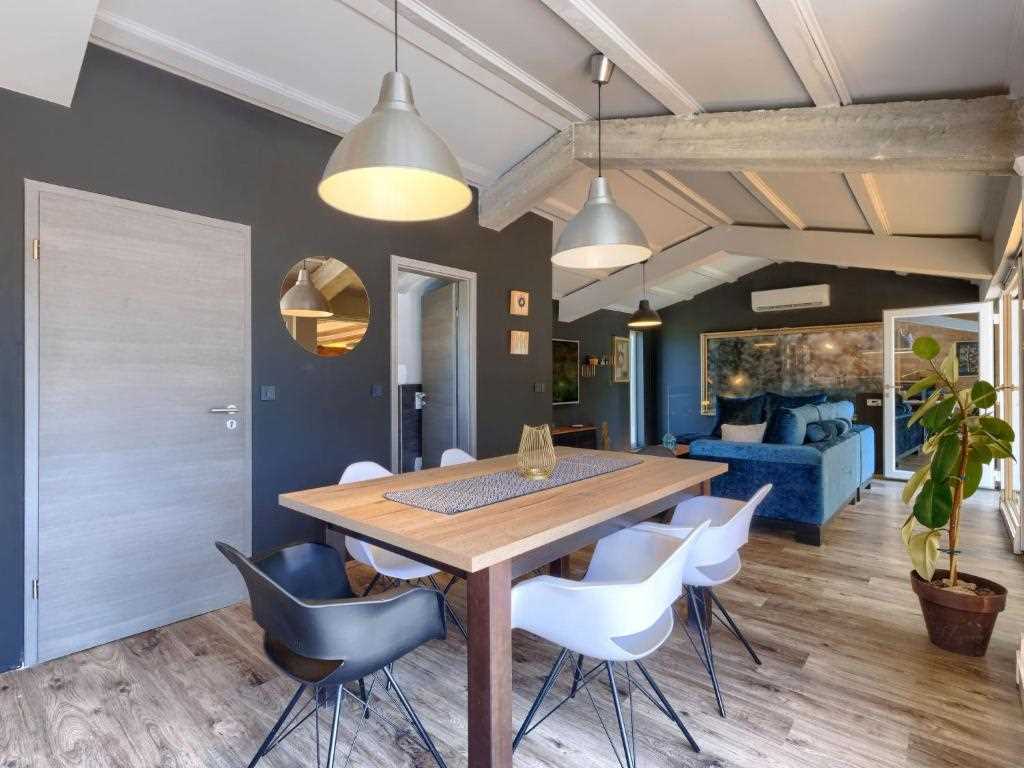 This elegant two-floor villa accommodates up to five guests in two bright bedrooms with two modern bathrooms, featuring top-of-the-line furnishings and refined, light-filled interiors. The spacious private garden is exclusively yours and includes a beautiful swimming pool with optional heating (€20 per day), a jacuzzi, sauna, training room, charcoal grill, and a shaded outdoor dining table ideal for relaxed summer evenings.