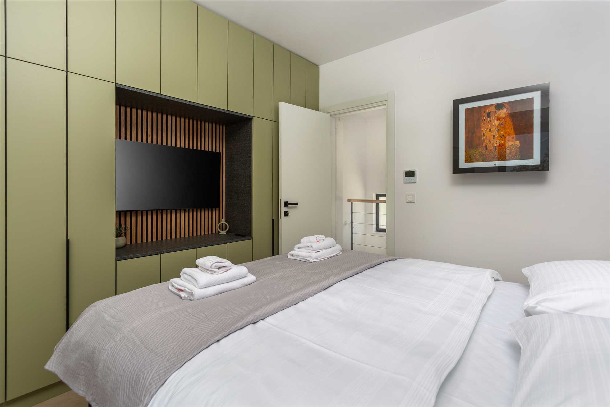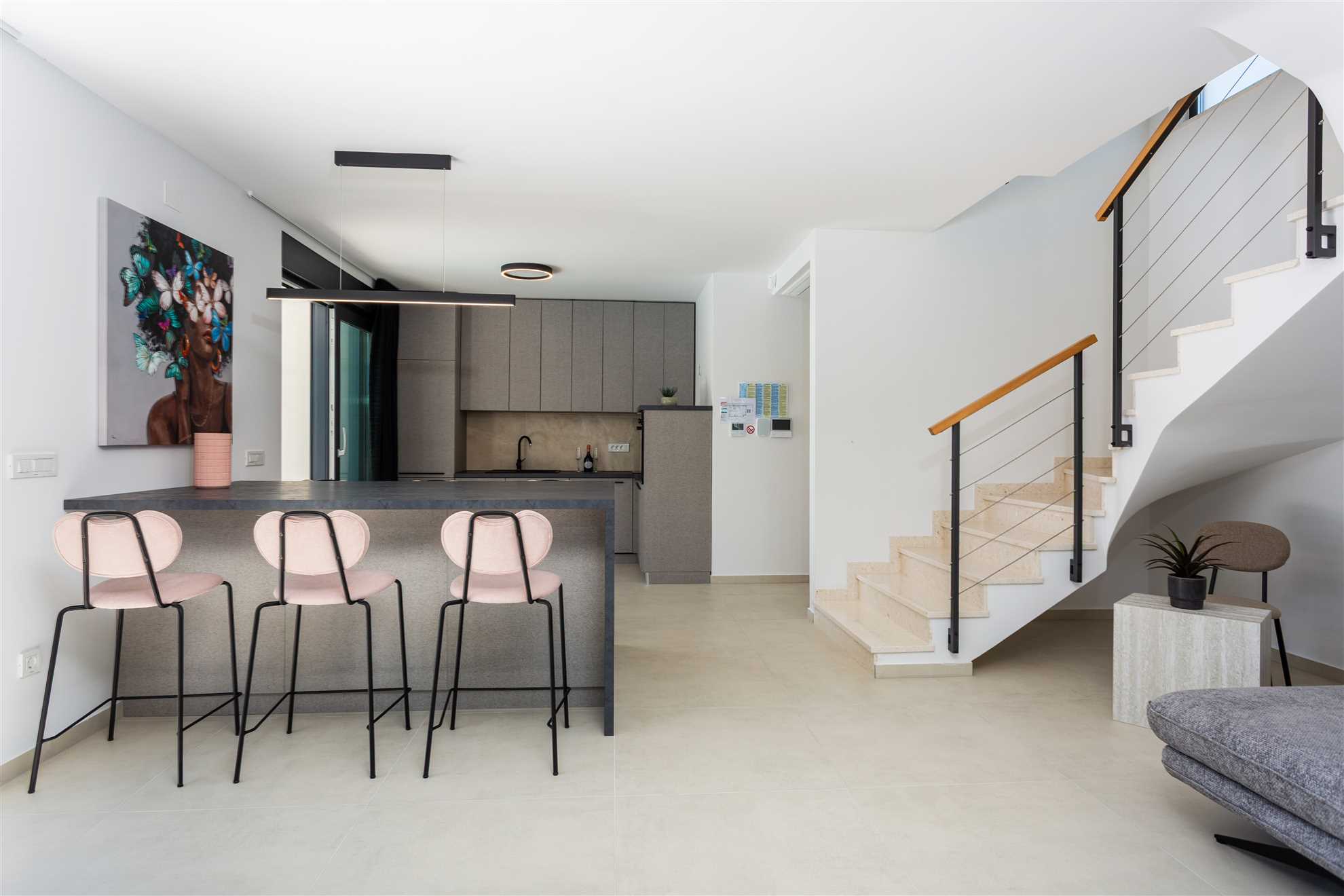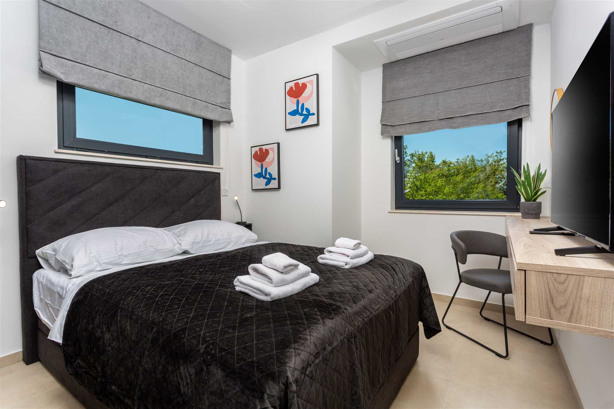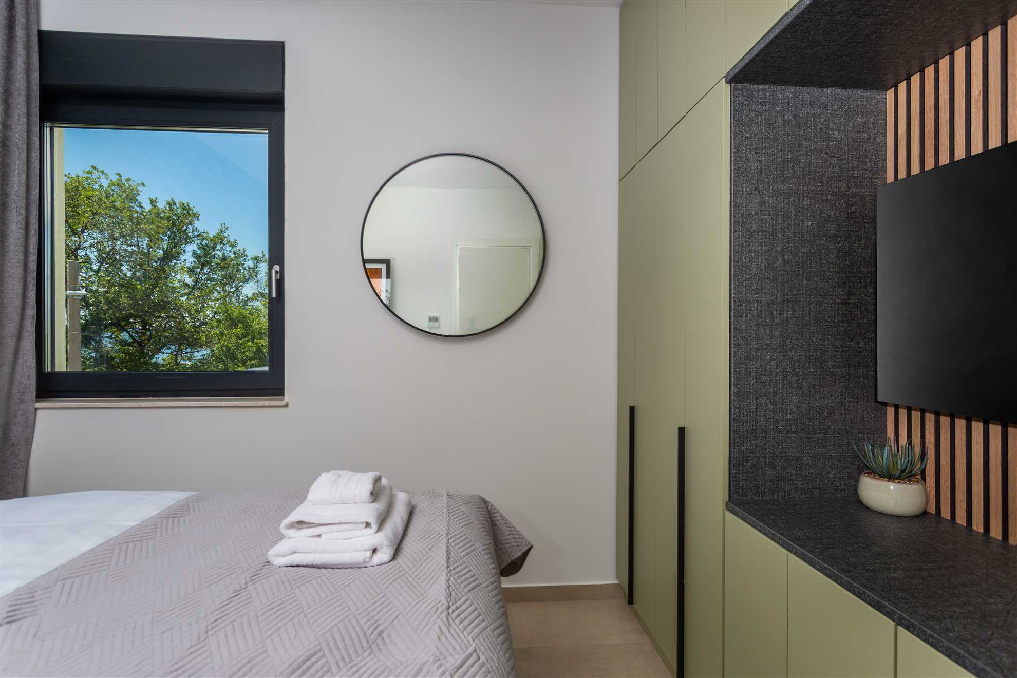 Unwind in style at Bella Vista Quarto, a modern villa on the Island of Krk created for easy, relaxed living. Its elegant interior blends comfort and contemporary design, while the outdoor areas invite you to make the most of sunny days — from the private pool and sun loungers to the shaded terrace with barbecue, a covered lounge corner, and an upper-floor balcony offering glimpses of the sea.