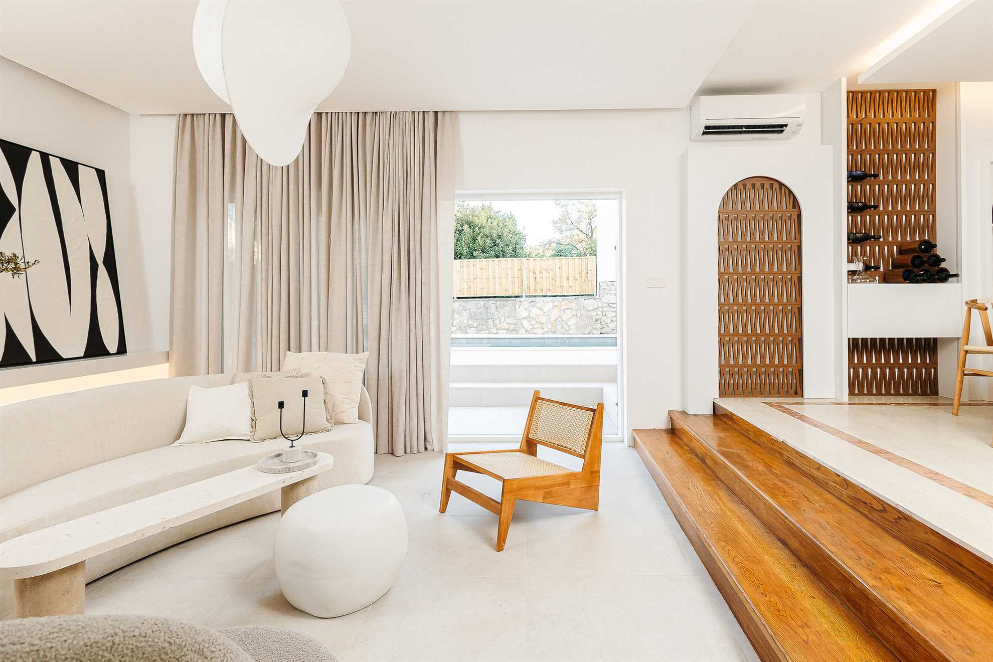 The villa was originally designed by Croatian architect Nikola Bašić and has been recently renovated. The design focuses on functional space, clear architectural lines, and a connection between indoor and outdoor areas. The property was built as a family home, offering solid construction quality and spacious interiors.
