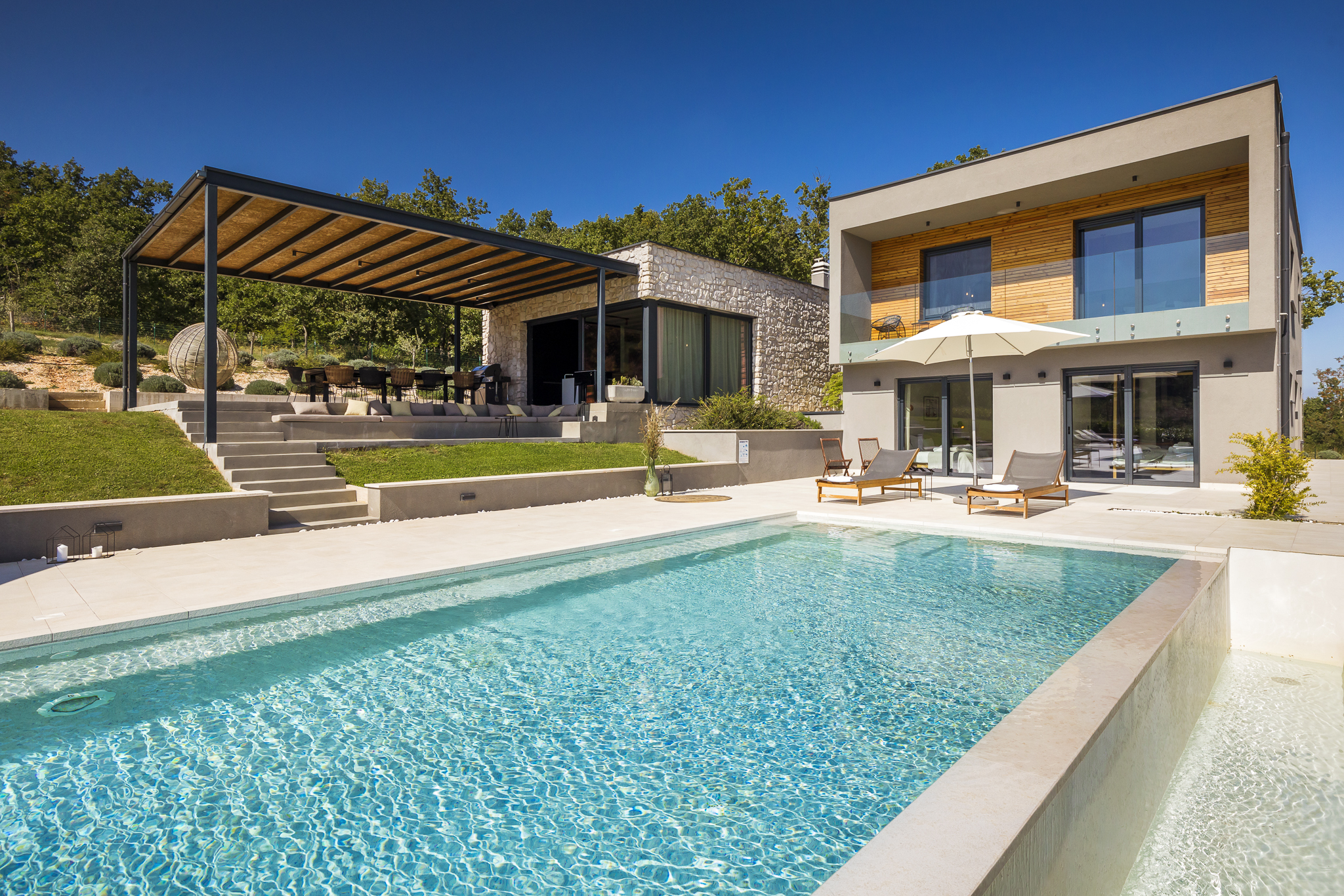 Villa Ox is a luxurious private retreat in the heart of Istria, created for guests who value elegance, comfort, and complete peace. Set in an exclusive and quiet location, the villa offers absolute privacy, surrounded by beautiful nature and the relaxing atmosphere of the Istrian countryside.