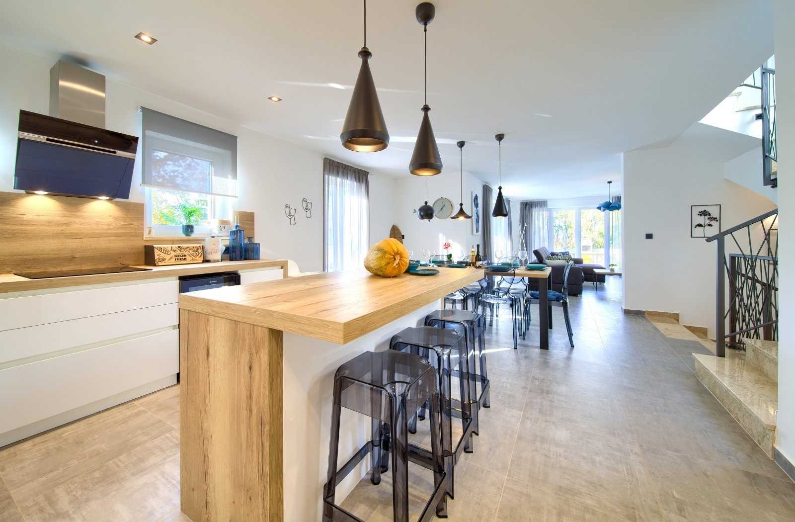 The exterior of the villa will impress you at first sight. The villa is located in a peaceful, green environment, surrounded by a well-maintained garden that ensures complete privacy, as the entire property is carefully fenced. The spacious outdoor terrace offers an ideal space for relaxing in the fresh air, whether enjoying a morning coffee or evening gatherings. The central feature of the exterior is a beautiful, crystal-clear pool, accompanied by comfortable loungers for carefree sunbathing. Next to the pool, there is also a covered terrace with a large dining table and a high-quality grill, where you can prepare delicious meals and enjoy warm summer evenings in a pleasant atmosphere. The surroundings are rich in greenery, creating a sense of peace, intimacy, and a perfect retreat from the everyday hustle.