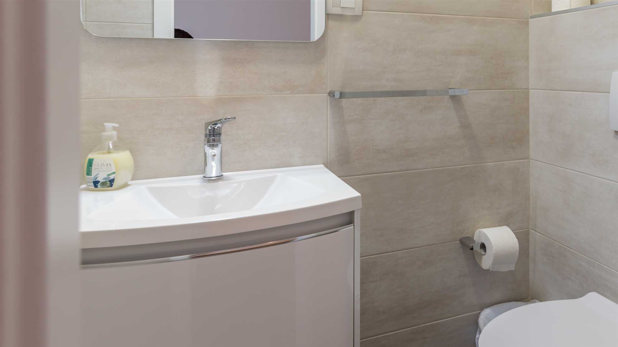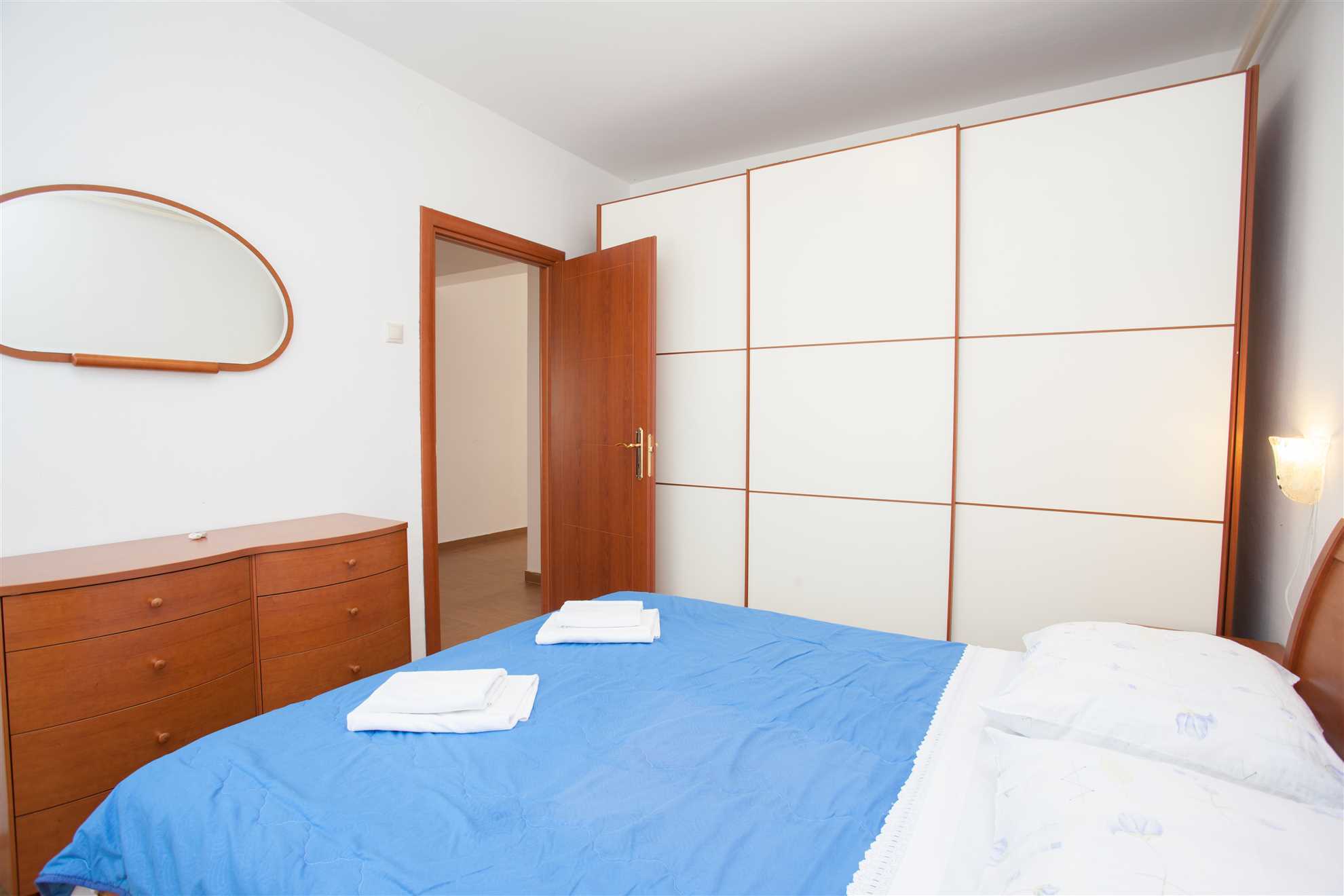 Apartment Dalibor A4 – Groundfloor is a spacious accommodation for 4 – 5 guests with approximately 60 m² of living space — perfect for a family or group getaway on the island of Krk. The apartment features two bedrooms (one with a double bed and an en‑suite bathroom, and another with a double bed), a fully equipped kitchen with dining area, and a comfortable living room with an extra bed. There are two bathrooms, one with a shower and one with a bathtub.