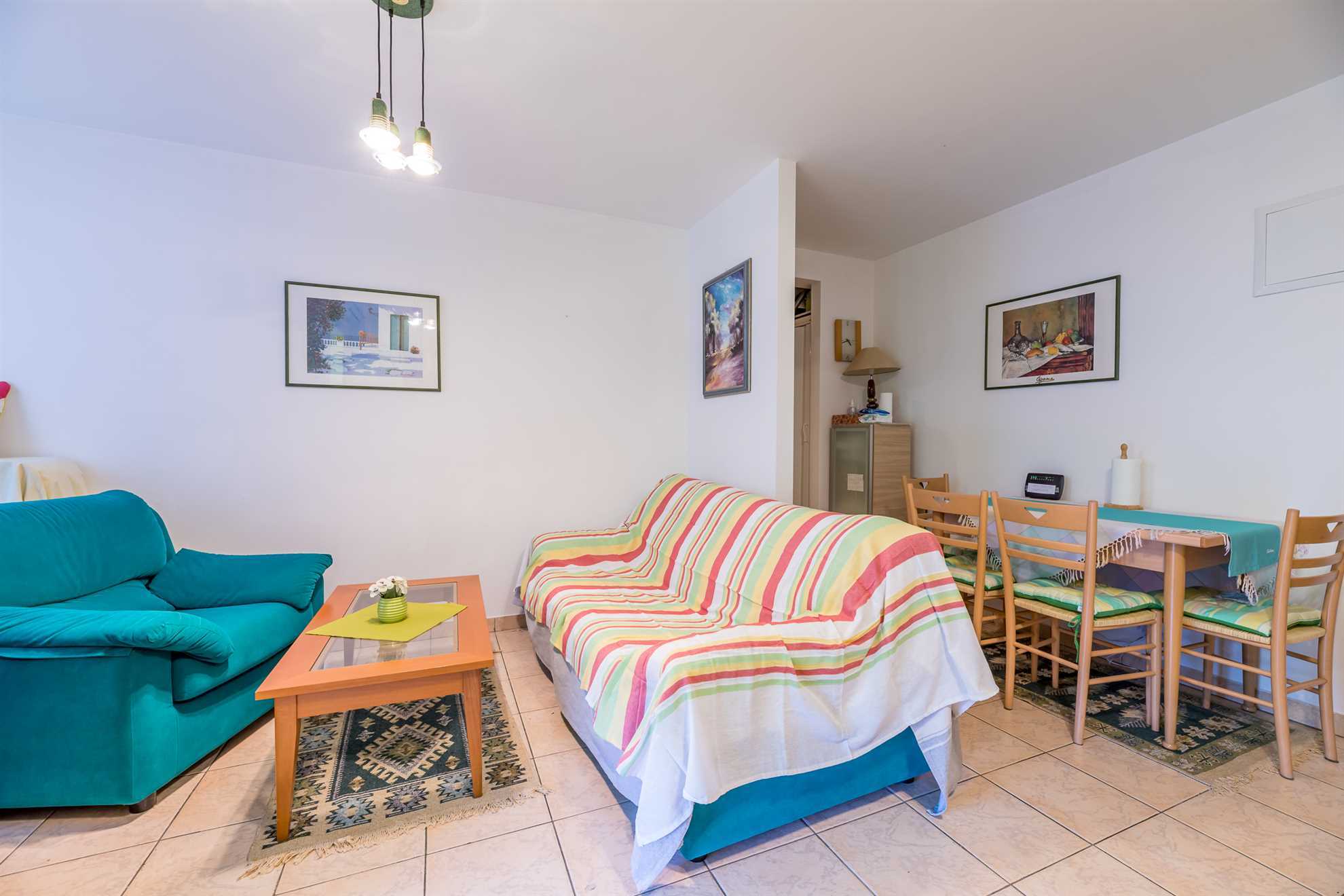 In the heart of the apartment, you will find a spacious living room, a cocoon of warmth and comfort, perfect for winding down after a day of exploring the beautiful sights of Baška. Here, you can sink into the comfortable couch, read an exciting book or marvel at the tranquil surrounds.