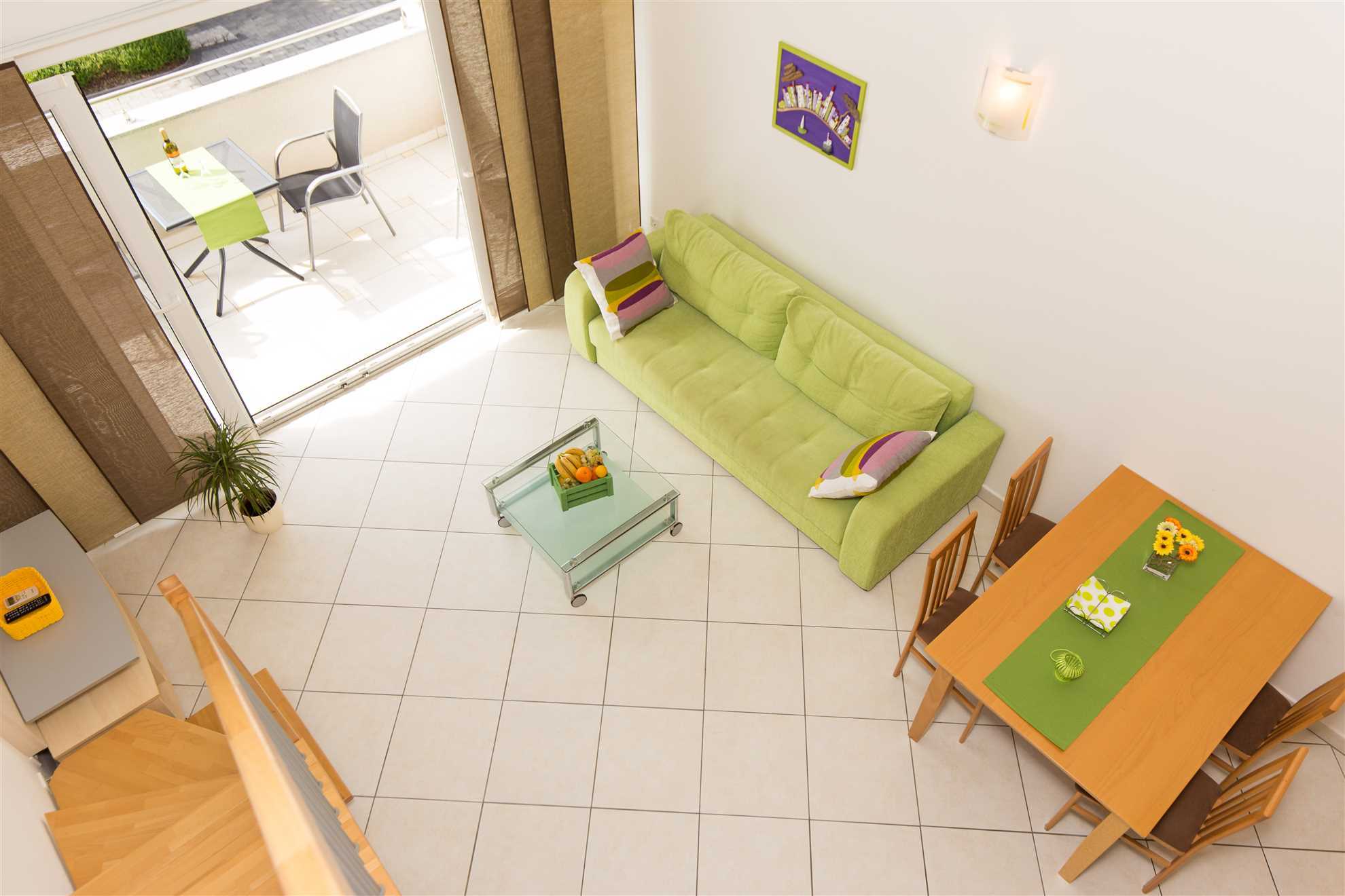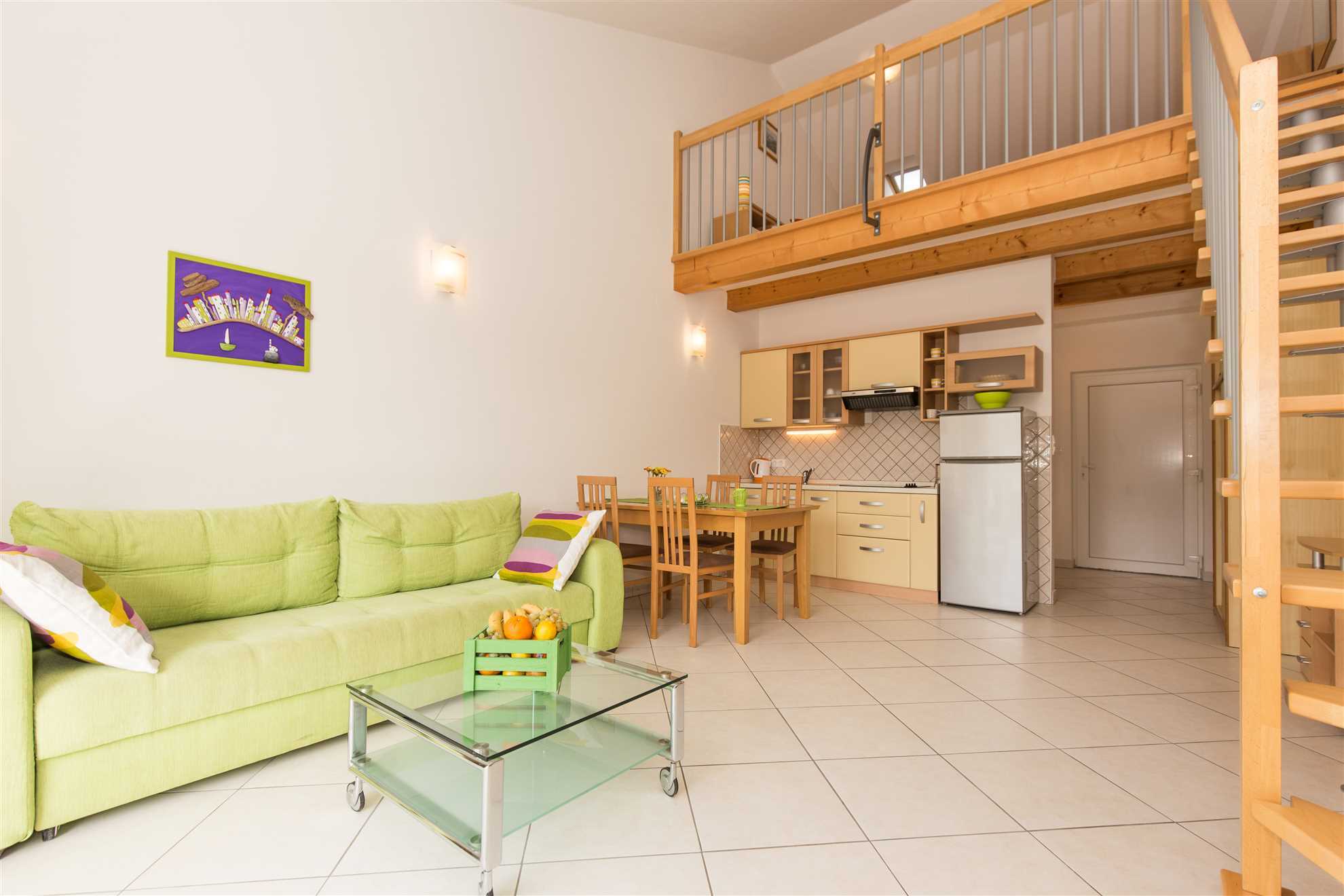 Step into Ines 5 and enjoy the minimalist, yet beautiful architecture. The apartment has a total of one bedroom that is tastefully decorated, reflecting elegance and comfort in every corner. The apartment is entered through the kitchen/living room and the bedroom is located on the attic gallery. A comfortable bed ensures a peaceful sleep, making you feel relaxed and full of energy.