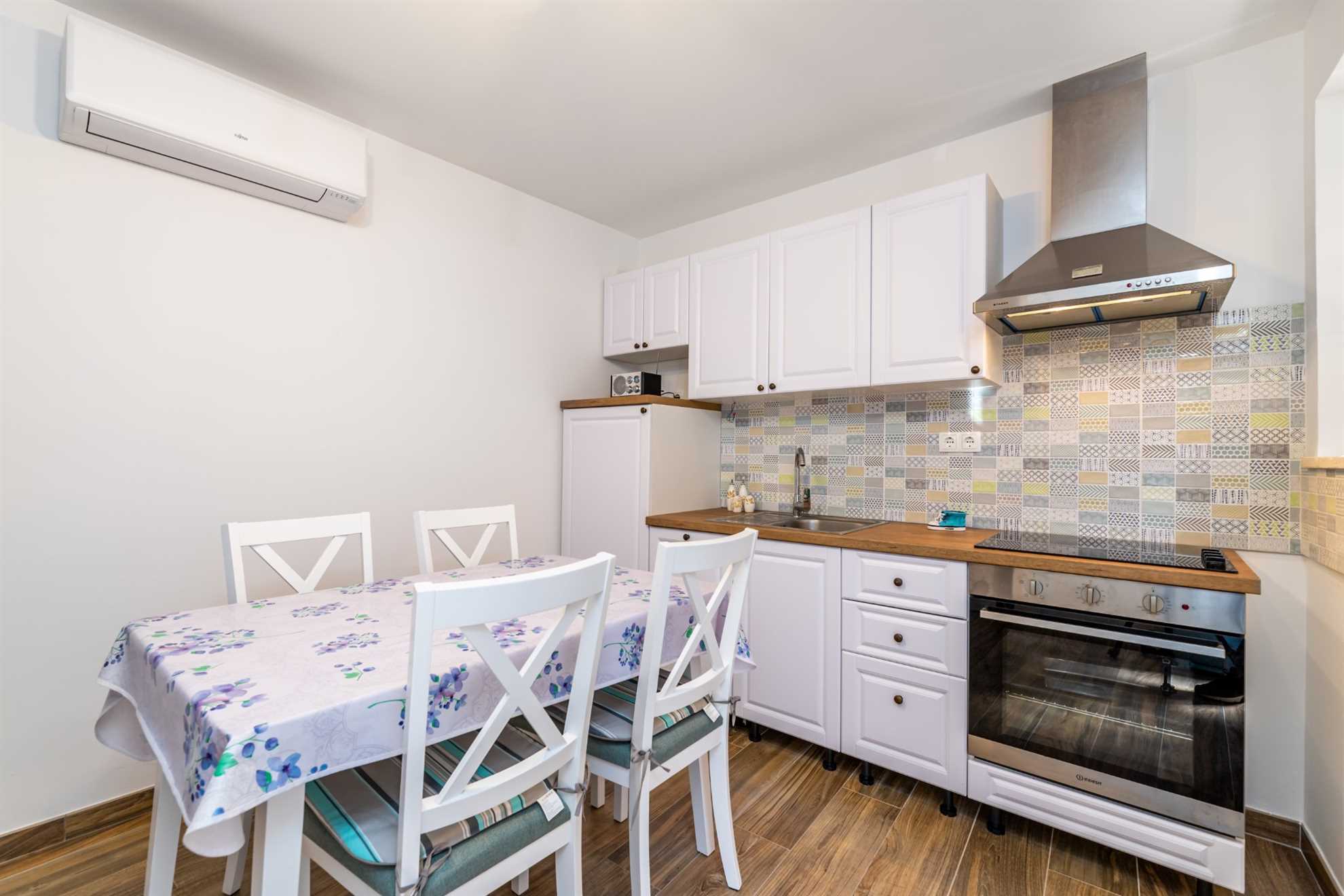 While the apartment doesn’t have a living room, the ample space provided in your bedroom allows for a leisurely and comfortable lounging area. Create cherished memories or relax with your favorite book after a day of Croatian exploration.