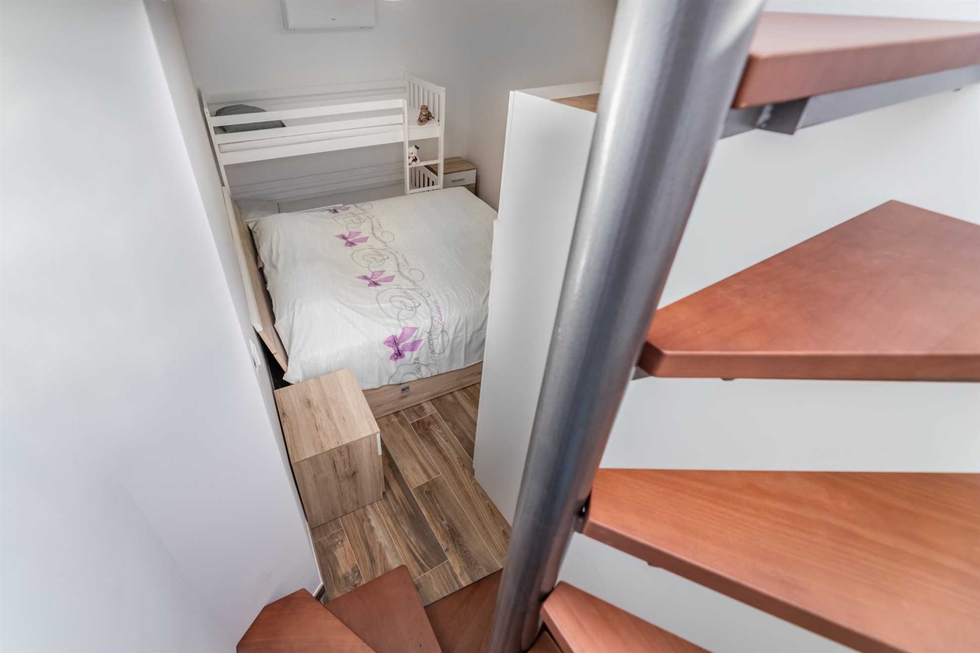 Apartment Evelin in Baška for 2 persons, with the possibility of an extra bed, is ideal for couples or families with a child. A child up to 8 years old can sleep on the extra bed (bunk bed).