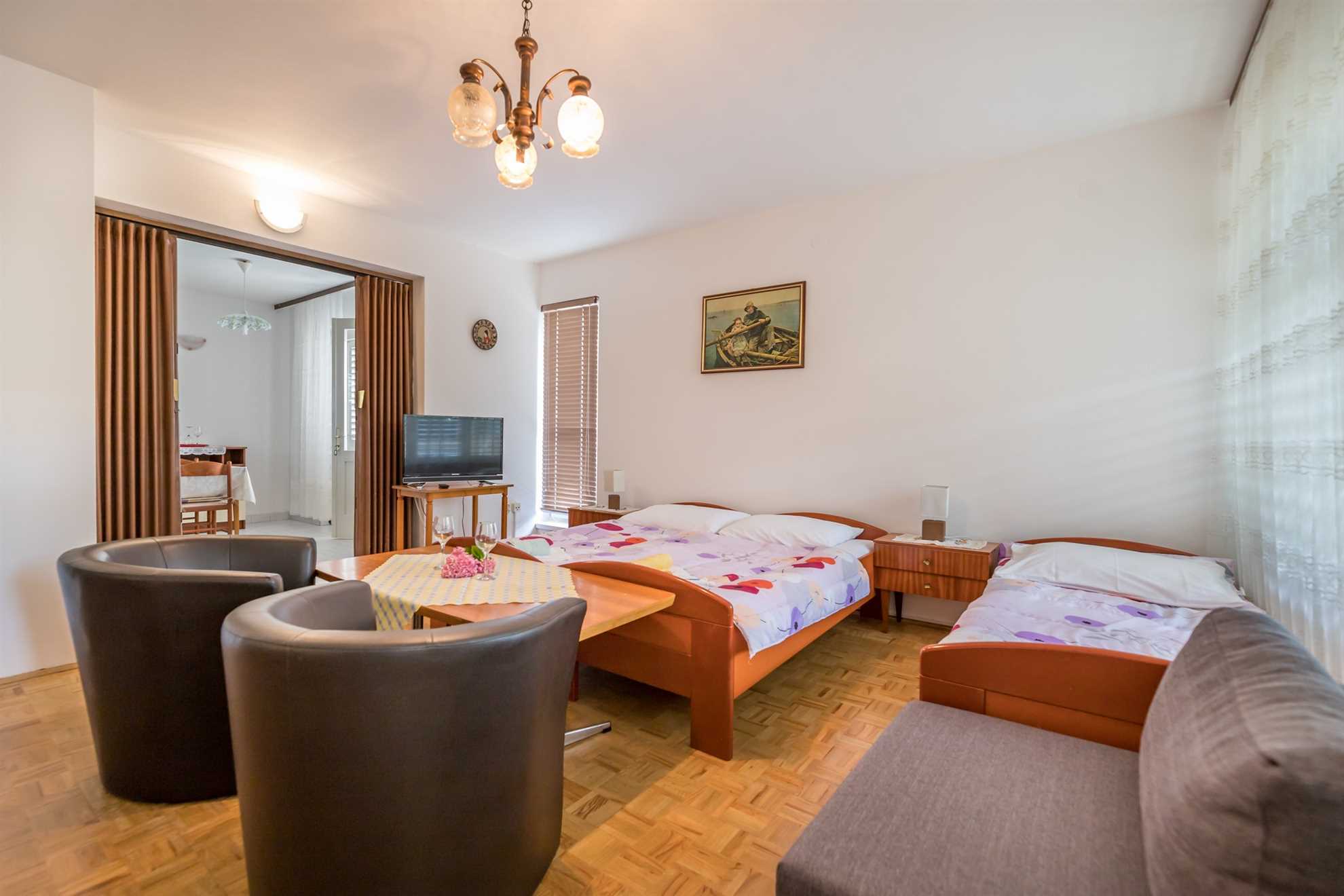 Antica Rapska App – Space and comfort in the very center of Baška Searching for the perfect apartment in Baška for a large family or group of friends? Antica Rapska App provides exactly what you need: generous space, modern amenities, and a prime location. This 75 m² ground-floor apartment offers easy access and a cool atmosphere during warm summer days on Krk Island.