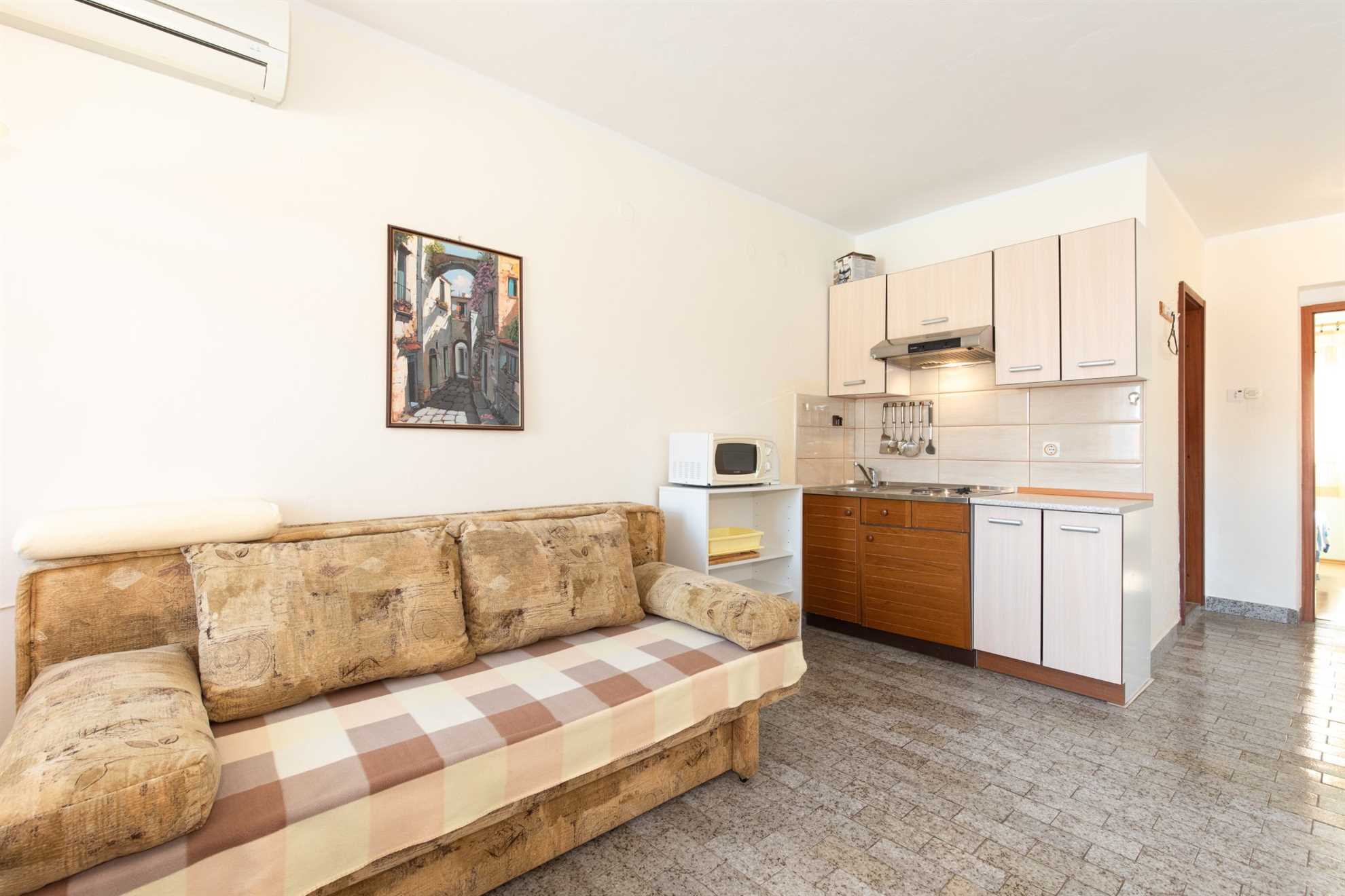 Functional Accommodation for Couples and Small Families The apartment is thoughtfully decorated to comfortably host 2 to 3 guests. It features a bedroom with a double bed and parquet flooring, while the living and dining area forms a shared air-conditioned space with an additional bed. The kitchen is practical and fully equipped, including a microwave, coffee machine, and kettle, allowing you total independence during your stay.